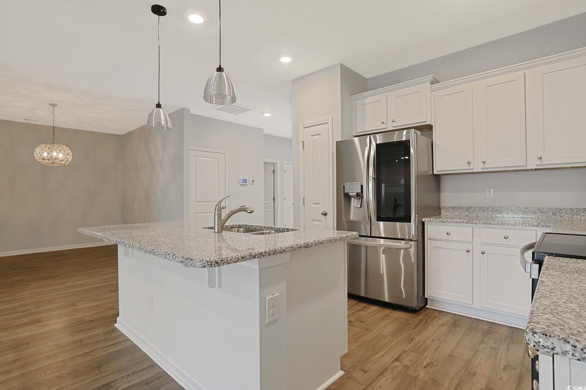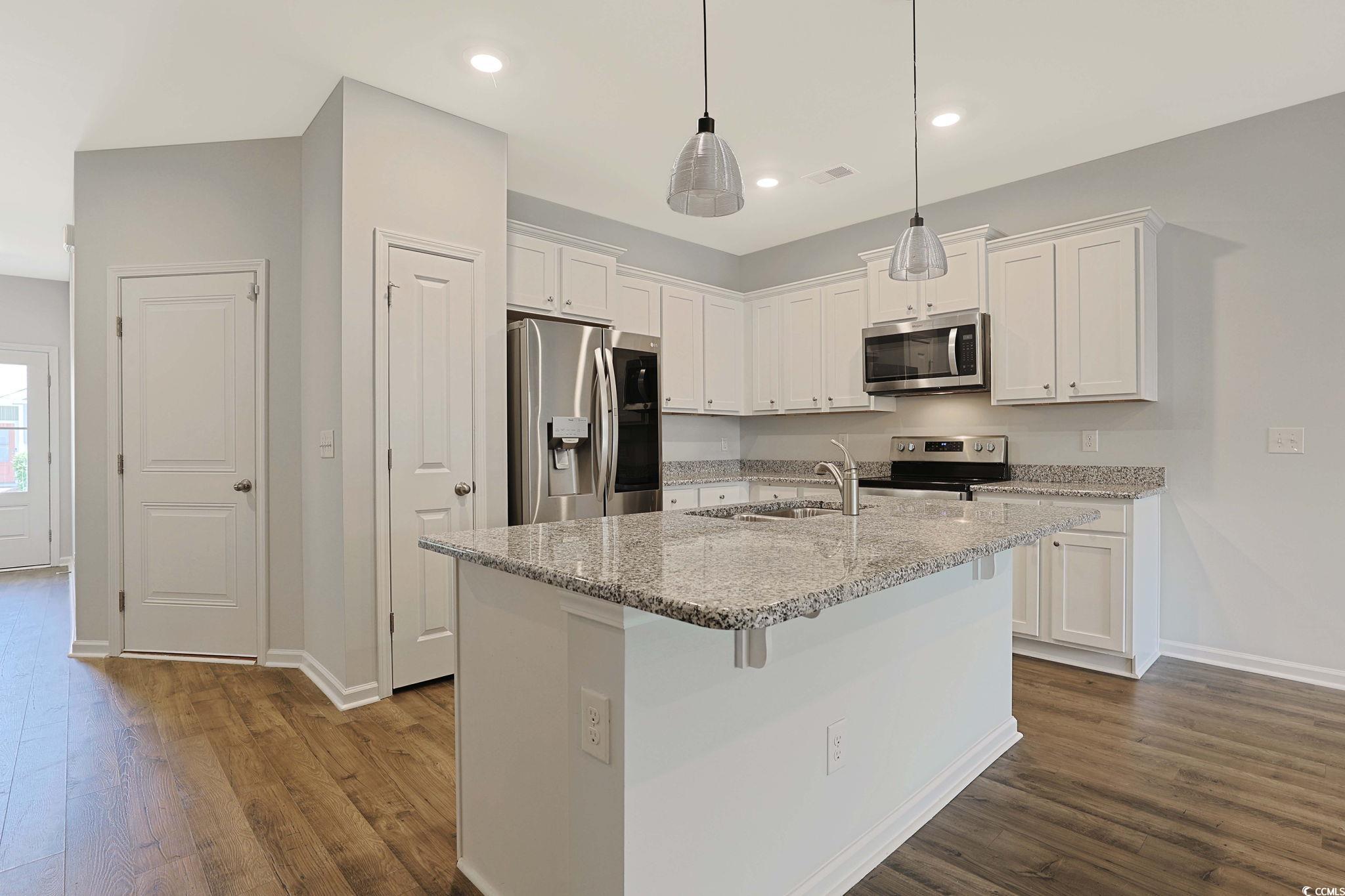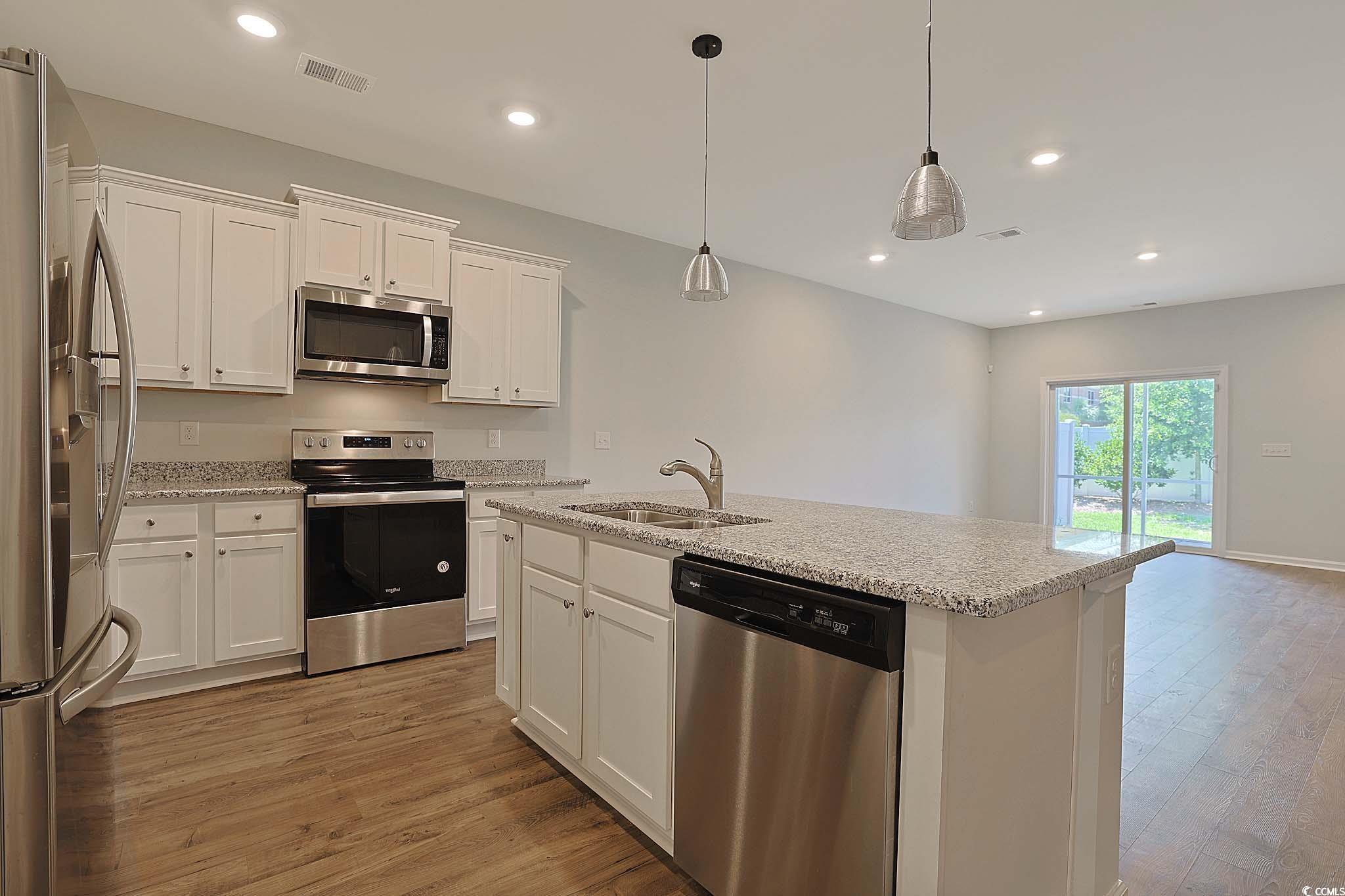 Introducing this exceptional, move-in ready, 2 bedroom 2 bath townhome located in the Inlet View community within walking distance of The Murrells Inlet Marsh Walk Restaurant/Shopping complex. This unit features new paint throughout, new carpeting, wood look LVP, tile & carpet flooring, smooth flat ceilings, recessed lighting, a formal dining area, a living room that showcases sliders that open up to the relaxing screened-in back patio. The family friendly kitchen is equipped with a stainless steel appliance package, granite counter tops, cabinets topped with crown moulding, a kitchen island with a delightful breakfast bar, and a practical pantry. The primary bedroom offers a single step tray ceiling with a fan, private access to the ensuite bath hosting a vanity with dual sinks, a comfort station, a deluxe step-in shower, and a large walk-in closet. This peaceful home is completed with an additional bedroom, a full guest bath with double sink, tub/tile, extra closet space, and a single car attached garage with an epoxied floor and a pull-down ladder for storage over the garage. This home affords you easy access to the beach and golfing along with all of the other activities and happenings in Myrtle Beach & Murrells Inlet including fun eateries, award winning off-Broadway shows, public fishing piers, Marsh Walk, and intriguing shopping adventures along the Grand Strand. Conveniently located to your everyday needs, including grocery stores, banks, post offices, medical centers, doctors offices, and pharmacies. Check out our state of the art 3-D Virtual Tour.