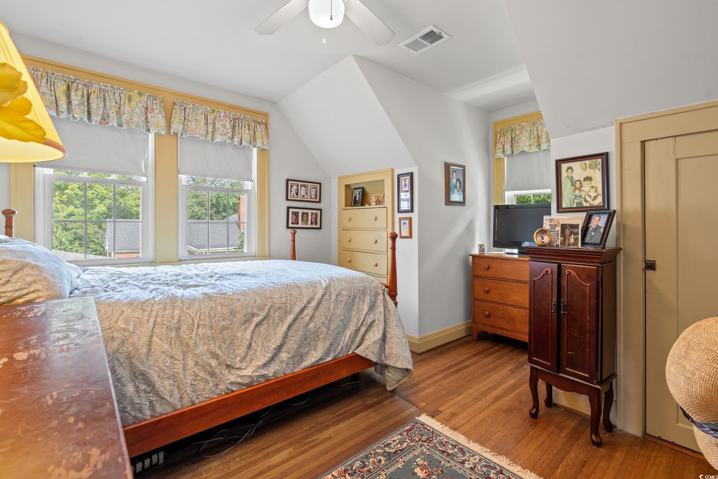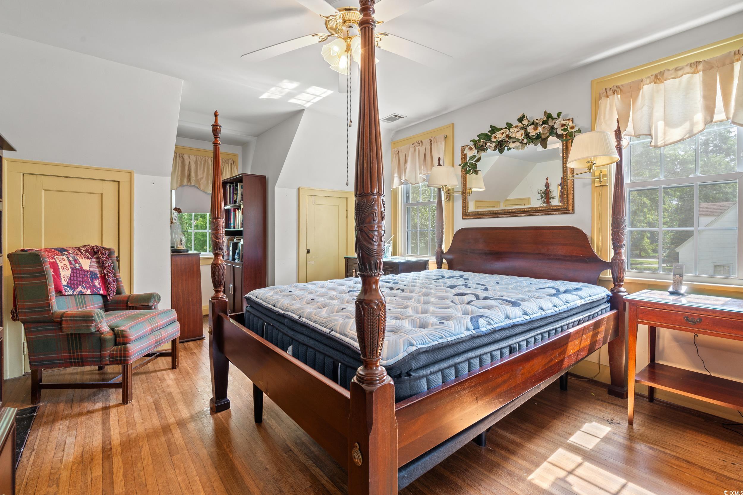 Welcome to this charming Cape Cod-style home nestled in an established neighborhood just a short walk from the historic downtown area. Offering 2,068 square feet of living space, this cozy residence features 4 bedrooms and 2.5 bathrooms, including a spacious master suite conveniently located on the main floor. Inside, youll find beautiful hardwood floors and a formal dining room perfect for gatherings. Enjoy views of the park located directly across the street from your screened front porch, an ideal spot to relax and unwind. Additional highlights include a walk-in attic for ample storage and a 12x24 insulated storage building. This home blends classic charm with modern conveniences in a highly desirable location.
