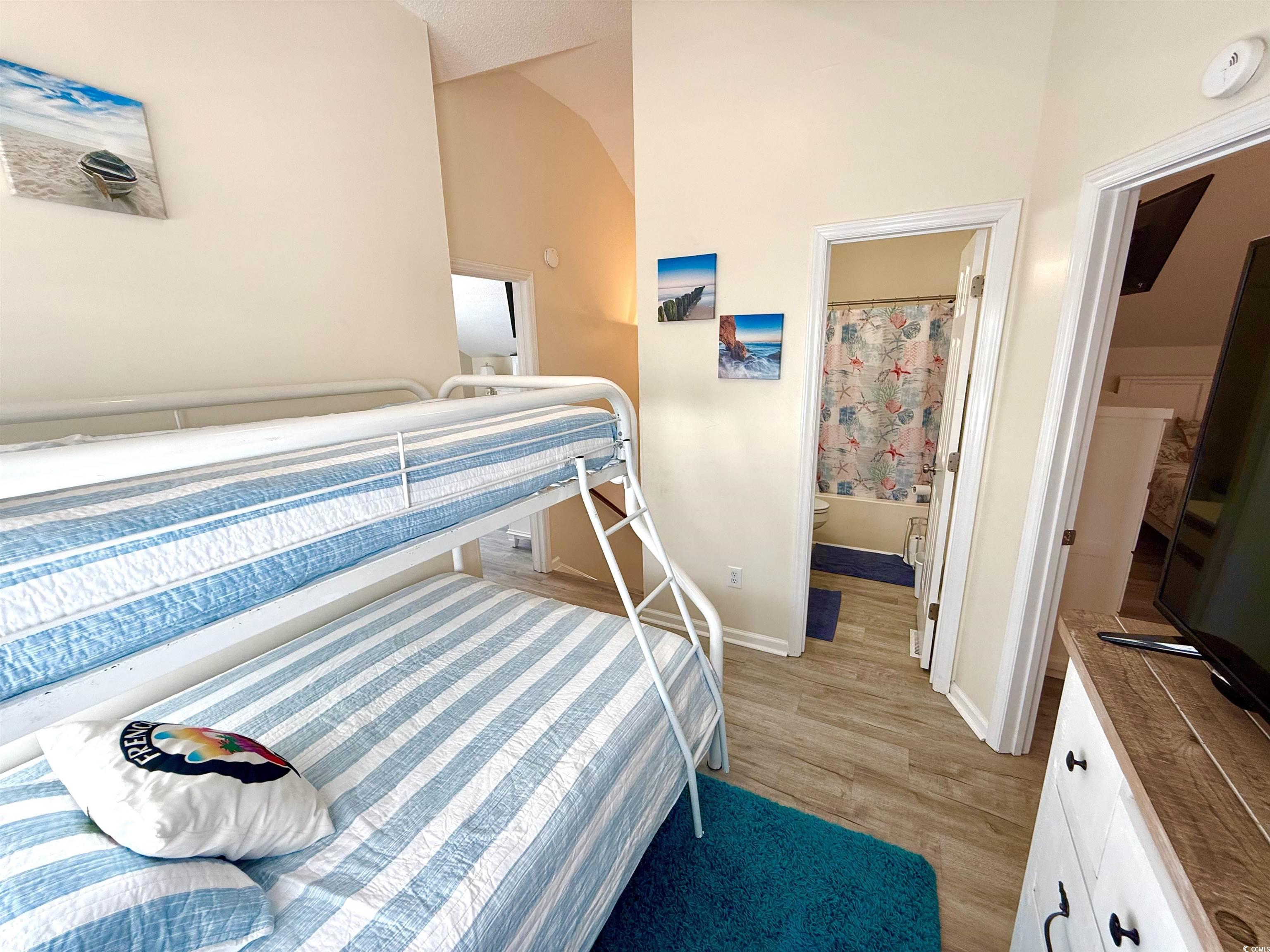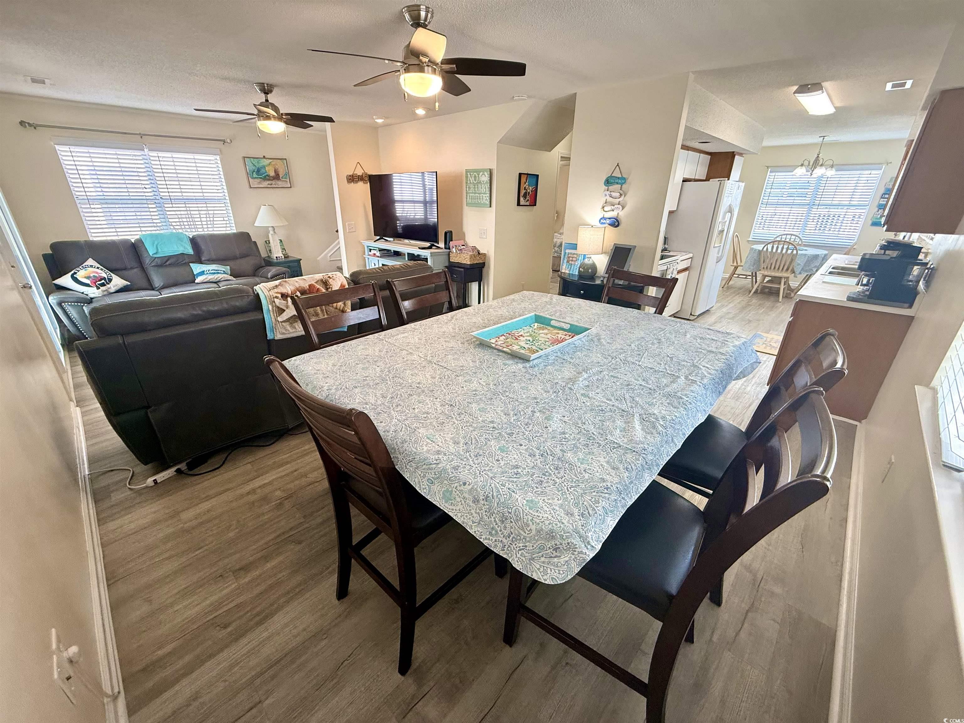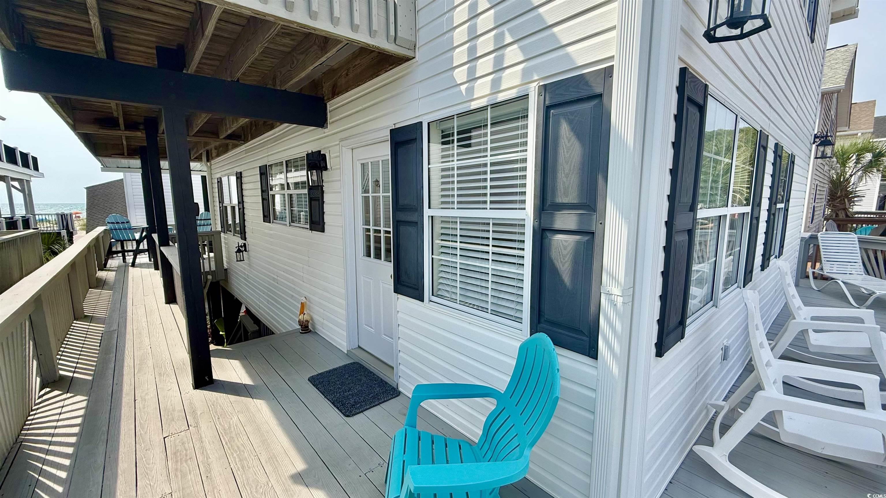 Amazing ocean views in desirable ocean front section of Ocean Lakes! This 2nd row ocean front section 2 story stilted beach home in Ocean Lakes has it all! 3 bedrooms and 3 full baths with additional sleeping accommodations in upper level flex space as well as a additional sleeping nook connected to primary suite. Home is sold fully furnished! 2 levels of decking to enjoy the incredible views! Great vacation rental property! Fully furnished main level boasts open floor plan, ceiling fans and stellar ocean views. Fully stocked kitchen with stove, microwave, and side by side refrigerator. Indoor dining options include dining space with 6 seat dining table as well as 4 seat table in eat in kitchen area. Family room boasts 2 large sofas with built in electric recliners and USB ports, electric fireplace, and smart tv. Main level furnished king sized bedroom with smart tv and ceiling fan. Large main level Jack and Jill full bathroom with access from hallway and bedroom and includes full size side by side washer and dryer in laundry closet. All appliances included. Huge main level wrap around ocean facing deck with amazing views with outdoor seating, uncovered space to enjoy the sun, dining and covered staircase from ground level to main level entry into home. Upper level has a huge fully furnished ocean view primary king sized bedroom with vaulted ceiling, ceiling fan, ocean views, smart tv, en-suite full bathroom, accessory sleeping nook with twin bed and smart TV, as well as direct access to wrap around upper level private deck with beautiful ocean views and outdoor seating. The second level also offers a guest bedroom with vaulted ceiling, 2 queen beds, dresser and smart TV. Second level flex space in the center of home features a twin over full bunk, dresser, smart TV, ceiling fan, and direct access to upper level wrap around deck with ocean views and another full bathroom. The huge ground level entertainment space features a bench swing, dining, seating, gas grill, private outdoor hot/cold shower, covered parking, storage and 100 square foot storage garage. The award winning gated community of Ocean Lakes Family Campground offering countless amenities including pristine beaches, a waterpark with indoor and outdoor pools, lazy river, water slides, splash zone, putt putt golf, arcade, recreation center, shopping, nature center, dog park, multiple lakes, golf cart rentals, 24 hour security, guest services, food service and more makes this home a fantastic get away for your personal use and/or vacation rental.