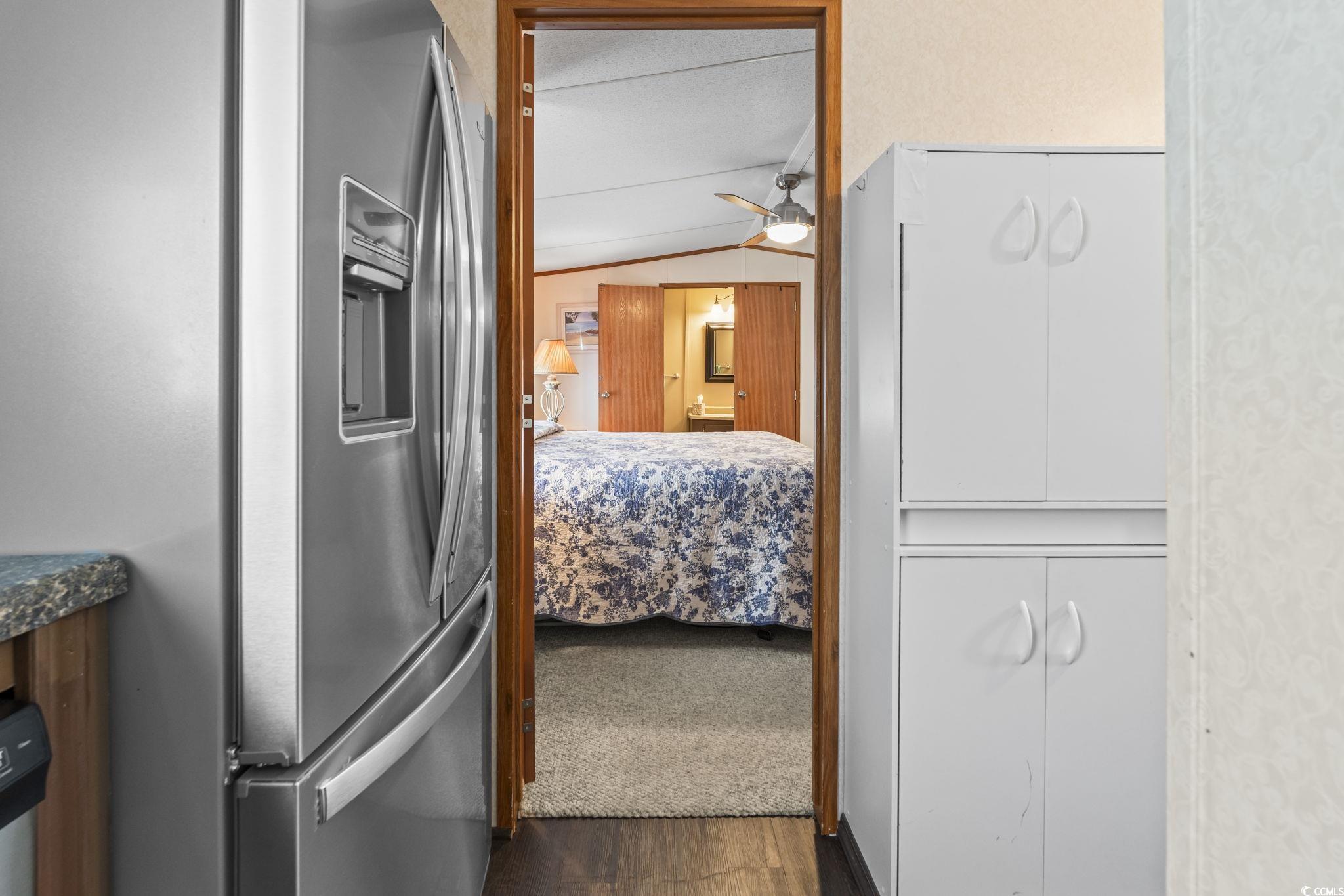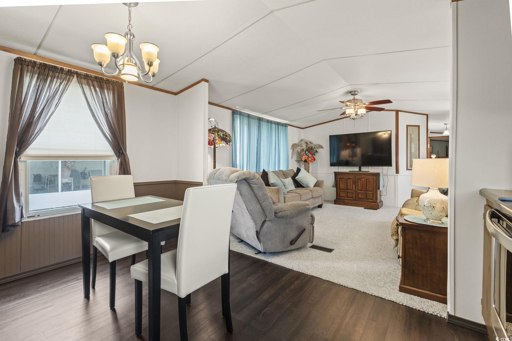 Step inside this beautifully maintained single-wide home, ideally located less than a mile from the beach in the heart of Myrtle Beach. This property is being sold fully furnished! Nestled within a gated community, this charming property offers both privacy and convenience, perfect for full-time living or a coastal getaway. As you enter through the spacious living room, you're welcomed by a bright, open layout that flows seamlessly into the dining area and updated kitchen. The kitchen features sleek stainless steel appliances and ample cabinet space, offering both style and function. Toward the front of the home, the primary bedroom is a relaxing retreat with a vaulted ceiling that enhances the open feel, a walk-in closet, and direct access through double doors to a large en suite bathroom with step in shower. Two additional bedrooms and a second full bath with tub/shower combo are located on the opposite end of the home, providing a comfortable and private layout for guests or family members. A detached storage building adds extra room for your beach gear, bikes, or seasonal items. This move-in-ready home offers beachside living at an affordable price - all within a secure and well-maintained community. Don't miss your chance to own a slice of the Grand Strand lifestyle!
