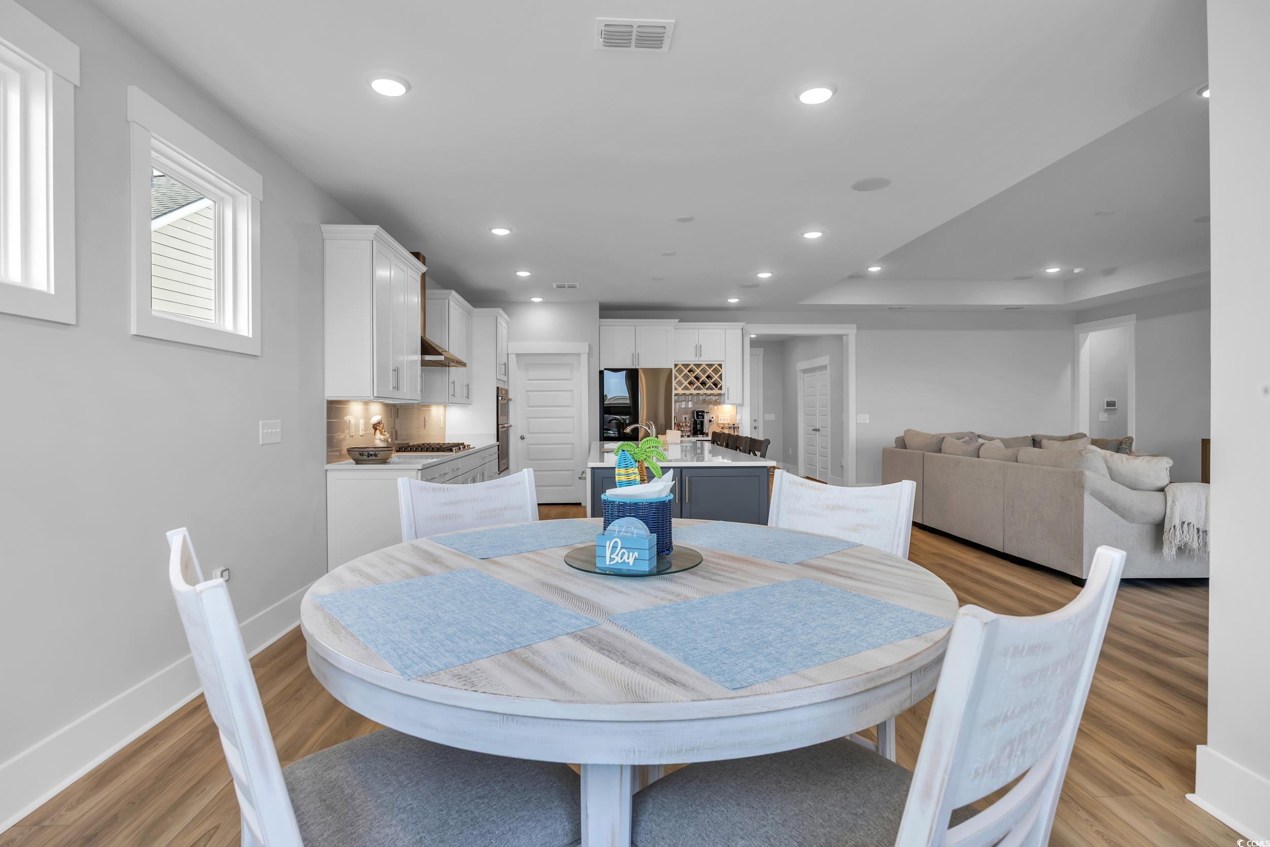 Make plans to join me for an exclusive open house event at a gorgeous, move-in-ready home within the highly desirable, 55+ Del Webb North Myrtle Beach community. This is your chance to embrace the resort-style living you've earned, complete with amenities and a low-maintenance lifestyle, all perfectly timed for you to be settled into your new life by Christmas! Mark your calendars for November 22nd from 12 PM to 2 PM and prepare to see how easy and inviting life by the South Carolina coast can be. This stunning, Waterview Lot, move-in-ready home is packed with high-end upgrades and located in the highly sought-after 55+ community where you can golf cart to the beach! Enjoy beautiful water views, top-tier finishes, and the unbeatable lifestyle you deservedont miss this incredible opportunity! Designed for both everyday comfort and easy entertaining, this open-concept layout seamlessly connects the upgraded kitchen, dining area, gathering room, and covered lanaioffering a warm, welcoming flow with a POND view! The kitchen features brand-new appliances and an oversized quartz island, perfect for meal prep and gatherings. Throughout the home, luxury vinyl plank flooring adds durability and style, while ceramic tile in the second bath provides a polished touch. The spacious owners suite offers a large walk-in closet and a peaceful retreat, while the flexible front room can be used as a home office, den, or non-conforming bedroom. Additional lighting has been installed in every room, including the garage, adding both function and ambiance. Entertainment and convenience continue with built-in speakers in the living room, lanai, and garage. The lanai is wired for a ceiling fan and enhanced with ample lightingideal for relaxing outdoors. A full security camera system around the home provides peace of mind. The oversized garage includes a 4-foot extension for extra storage or workspace and features a brand-new epoxy floor for a clean, finished look. To top it off, landscape treatment is already paid for through the end of the yearmaking this home move-in ready inside and out. As a Del Webb resident, youll enjoy world-class amenities: an indoor lap pool with locker rooms, an outdoor saltwater pool with two hot tubs, eight pickleball courts, bocce courts, a putting green, and a fully equipped fitness center. The community is designed with walkability in mind, featuring 5-foot sidewalks on both sides of every street. Location is everything, and this home delivers. Youre less than five minutes from the North Myrtle Beach Community Center, Sports Complex, Aquatics & Fitness Center, and public beach access at Crescent Beach. Within 15 minutes, youll find dog parks, marinas, RV storage, golf courses, dining, shopping, medical facilities, and more. Myrtle Beach International Airport is just 30 minutes away, making travel a breeze. This thoughtfully enhanced home offers the best of coastal living in one of the areas most vibrant and active adult communities. Dont miss your chance to own a home that combines smart upgrades, spacious design, and unbeatable locationall in one perfect package. Third Bedroom is non-conforming this is referring to the Flex Room! Schedule your showing today.