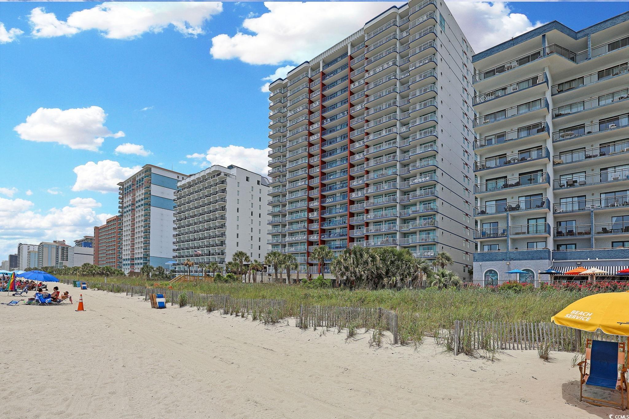 Enjoy a spectacular sunrise from your direct ocean front balcony in this stylish 1 bedroom 1 bath condo located in the prestigious Grand Atlantic complex. This piece of paradise begins with wood look LVP flooring, stylish furnishings, a classic living/dining room combo with a Murphy bed, and showcases a sliding glass door that opens up to the balcony over looking the sparkling Atlantic Ocean with its' white sandy beach. The fully equipped kitchen includes a stainless steel appliance package, a breakfast bar, and an abundance of counter & cabinet spaces. The bedroom offers a bi-fold door closet and a ceiling fan. The bathroom hosts a vanity with a single sink, a comfort station, and a timeless tub/shower combo. This delightful condo is completed with a laundry closet with a stackable washer/dryer. Outstanding amenities include a resort style outdoor pool & lazy river, a sunning deck, an indoor pool with a relaxing sitting area, and private beach access. This home affords you easy access to the beach and golfing along with all of the other activities and happenings in Myrtle Beach including fun eateries, award winning off-Broadway shows, public fishing piers, and intriguing shopping adventures along the Grand Strand. Conveniently located to your everyday needs, including grocery stores, banks, post offices, medical centers, doctors offices, and pharmacies. Check out our state of the art 3-D Virtual Tour.