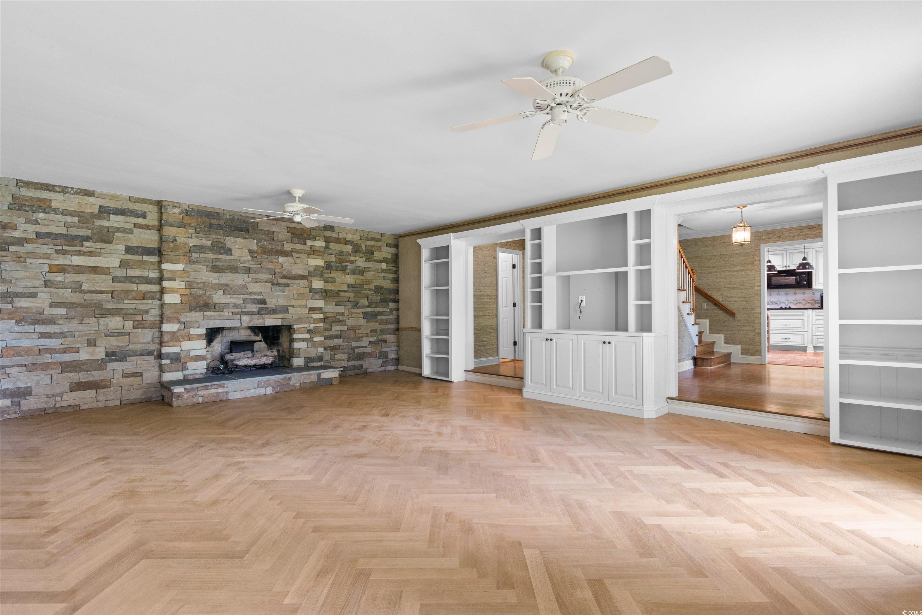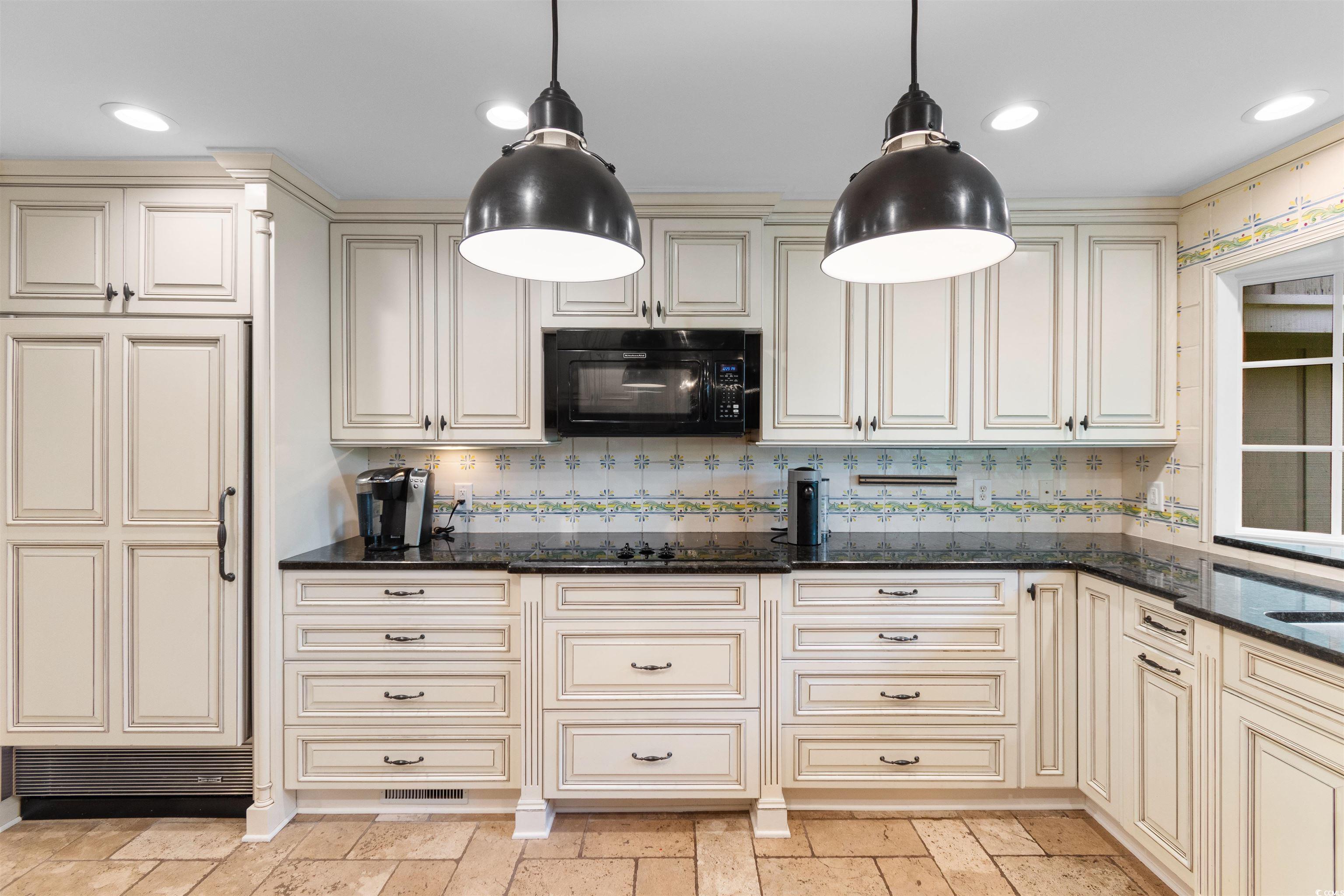 Custom Brick Home with Timeless Elegance and Thoughtful Upgrades This solidly built 4-bedroom, 2.5-bath brick home blends classic architecture with modern sophistication. A freshly painted interior and an attached 2-car garage make it truly move-in ready. At the heart of the home, the chefs kitchen impresses with travertine marble flooring, custom cabinetry, hand-painted tile backsplash, Sub-Zero refrigerator, and a true double ovenperfect for everyday cooking or hosting with ease. The open dining space, also finished in travertine, flows into the welcoming family room for effortless gatherings. The elegant living room is a showstopper, featuring a custom Russian Oak herringbone-patterned floor, a full stone veneer fireplace wall with hidden outlets, and a gas fireplace that can easily be converted back to wood-burning. Built-in furniture-quality cabinetry adds both beauty and functionality. For added versatility, the family room and Carolina room include mini-kitchenettes, ideal for entertaining guests. The spacious primary suite offers two custom walk-in closets and a spa-like bath with separate vanities, a new tiled shower, and a soaking tub. Outdoors, the lush gardens create a setting reminiscent of Brookgreen Gardens, offering peace, privacy, and year-round beauty. A hard-wired propane generator provides peace of mind, while a private well supplies water for the pond and irrigation systemkeeping the landscape vibrant and economical. This home is a rare find: thoughtfully updated, meticulously maintained, and designed for both comfortable living and elegant entertaining. * Measurements and square footage are approximate. The buyer/buyer's agent is responsible for verifying ALL information in the MLS including lot size, square footage, etc.