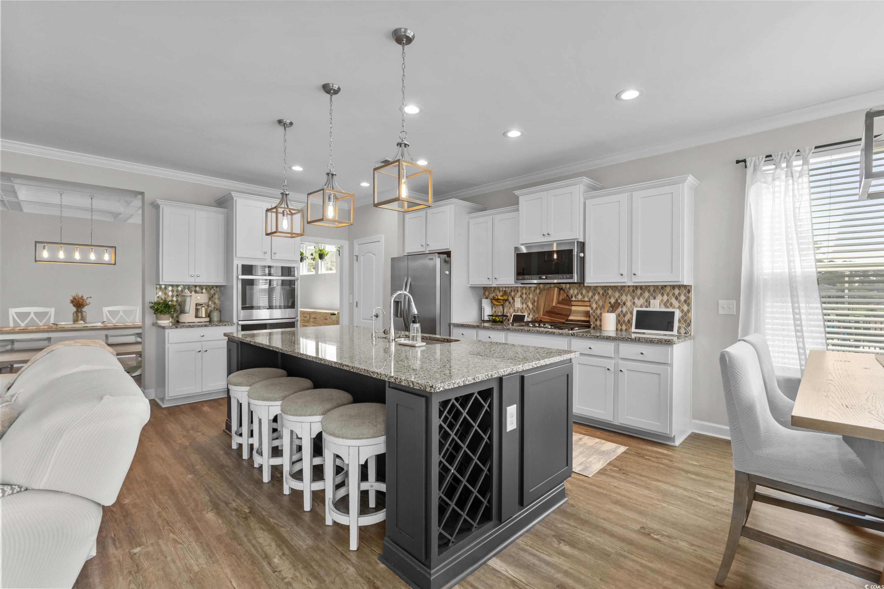 Welcome home to ""The Good Life"" in Bridgewater! The Boardwalk model features 4 Bedrooms / 3 Baths and a large loft / family room on the second level! This floor plan boasts many notable upgrades including: large front and rear covered porches, spacious foyer area, oversized dining area with coffered ceiling, dream kitchen with custom cabinets, stainless steel appliances including gas stove and double ovens, quartz countertops and large island! The floor plan makes living and entertaining simple! The living room boasts a custom electric fireplace with ship lap accents along with plenty of natural light. Enjoy the upgraded Luxury vinyl plank flooring on the main level living areas and owners suite. The owners suite on the main level offers trey ceiling, view of the back yard and an incredible full bath with custom tile shower and huge walk in closet! The second level boasts: a family room, bedroom and full bath so there is always room for guests! Enjoy grilling out and gardening or playing in the spacious back yard! This home also offers a whole house Water Filtration system + RO system and the HVAC Air Scrubber. Bridgewater Cottages is conveniently located near McLeod Health, Hwy 31, Schools, Shopping, Beach & More! Don't forget to check out the amenities this wonderful community offers and the social life with the monthly calendar of events to join. Bridgewater Cottages is just over the ICW bridge in North Myrtle Beach into Little River and close to Cherry Grove Beach and Sunset Beach, NC. Call today to schedule your private showing!