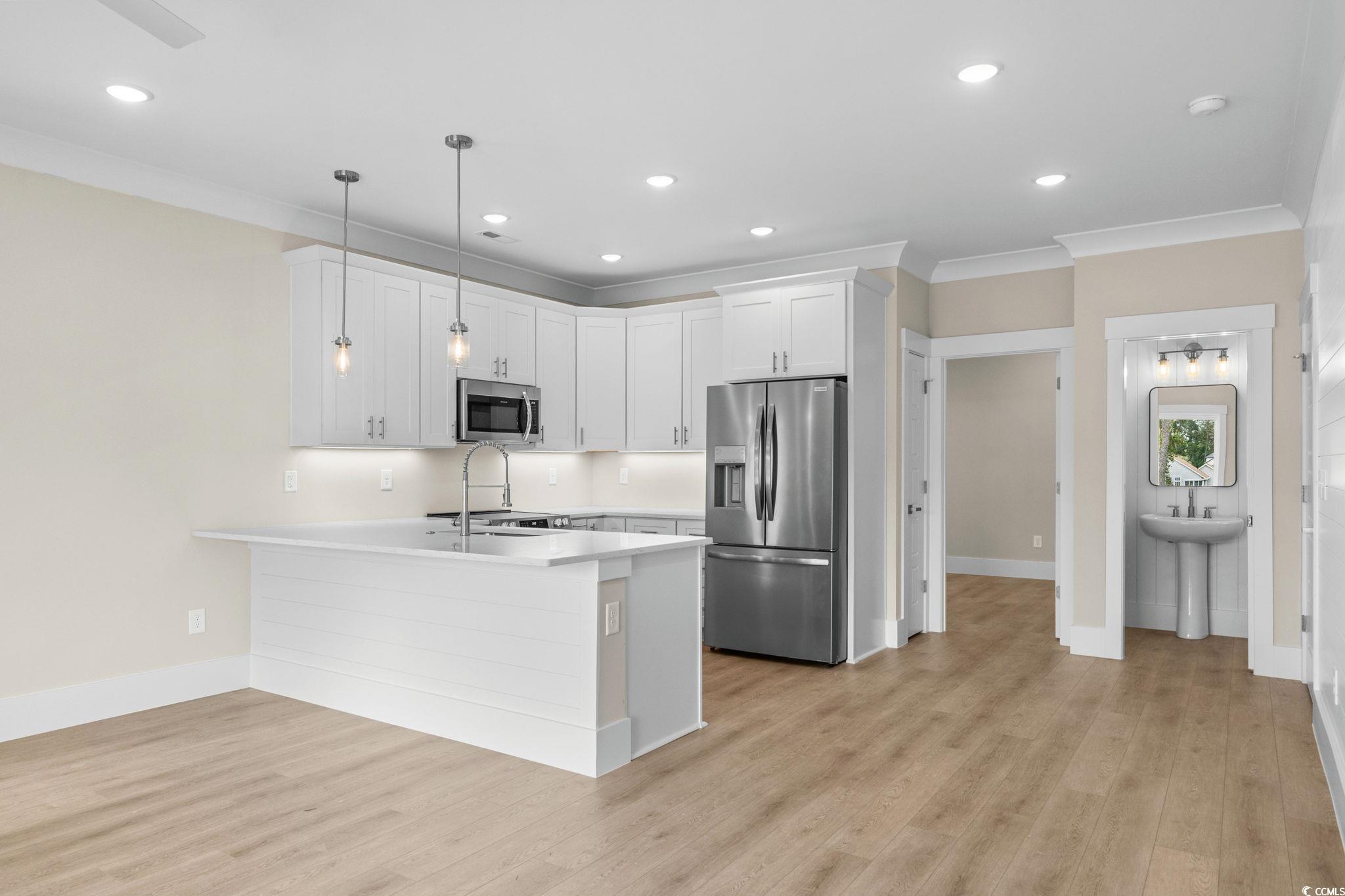 Check out this move-in-ready raise beach house featuring 4 bedrooms, 3.5 bathrooms, a loft, and two primary suites that can sleep over 15 guests. Part of Seabreeze IIa collection of 15 luxury, high-end finished beach houses located east of Highway 17 that allow short-term rentalsthis cottage is within walking distance of the beautiful Atlantic Ocean and boasts a modern beach vibe that needs no upgrades. The exterior features a durable Hardie board finish with a distinctive two-tone cottage color scheme, while the ground floor offers underneath parking, an outdoor shower, and an insulated one-car garage ideal for golf cart storage or as a flexible entertainment space. Upon entering via an enclosed staircase, you step into an open-concept living room and kitchen equipped with stainless steel appliances, quartz countertops, soft-close cabinets, and a breakfast bar. The main floor also includes a powder room and a walkout-covered balcony perfect for enjoying morning coffee or ocean sunsets, along with a primary suite featuring a fully tiled glass-enclosed shower and dual vanities. The third floor features a loft/flex office space, three additional bedrooms, and two full bathrooms with dual vanities. Conveniently located within golf cart distance to Myrtle Beach International Airport, Market Commons shopping and dining, the famous Myrtle Beach State Park, and the Spring maid Pier for fishing enthusiasts, Seabreeze II will also feature a privacy fence around the entire community. Whether youre looking for a primary residence, a second beach house, or an income-producing rental property, this opportunity is not to be missedcontact us today for a digital brochure with additional information, neighborhood layout, and a location map. --- Ask about our price Options packages, Bronze, Silver, Gold and Platinum where you can have a fully furnished unit include all linens, dishes, washer and dryer ready for your second home enjoyment or rental machine ! Builder offers 2 year Warranty !!