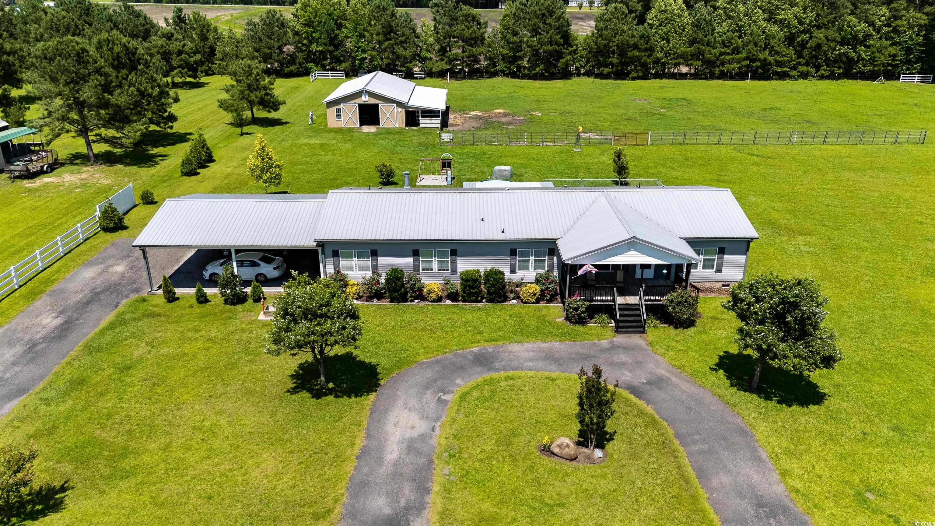 This dream property has everything youve been looking for. Featuring 4 bedrooms and 3 bathrooms, this home offers both space and comfort. The fully upgraded kitchen includes new flooring and appliances, perfect for anyone who loves to cook and entertain. The master bathroom is a true oasis, complete with a large soaking tub, his and hers vanities, and a spacious shower. Bedrooms 2 and 3 are connected by a convenient Jack and Jill bathroom. Enjoy your mornings and evenings on the covered front or rear porches, ideal for relaxing or sipping coffee. The property also includes a carport, barn, shed, horse corral, above-ground pool, and a horse stable. A scenic pond with a bridge to the center island adds a peaceful, picturesque touch. Located just minutes from both Conway and the beach, this home perfectly blends country charm with coastal convenience.