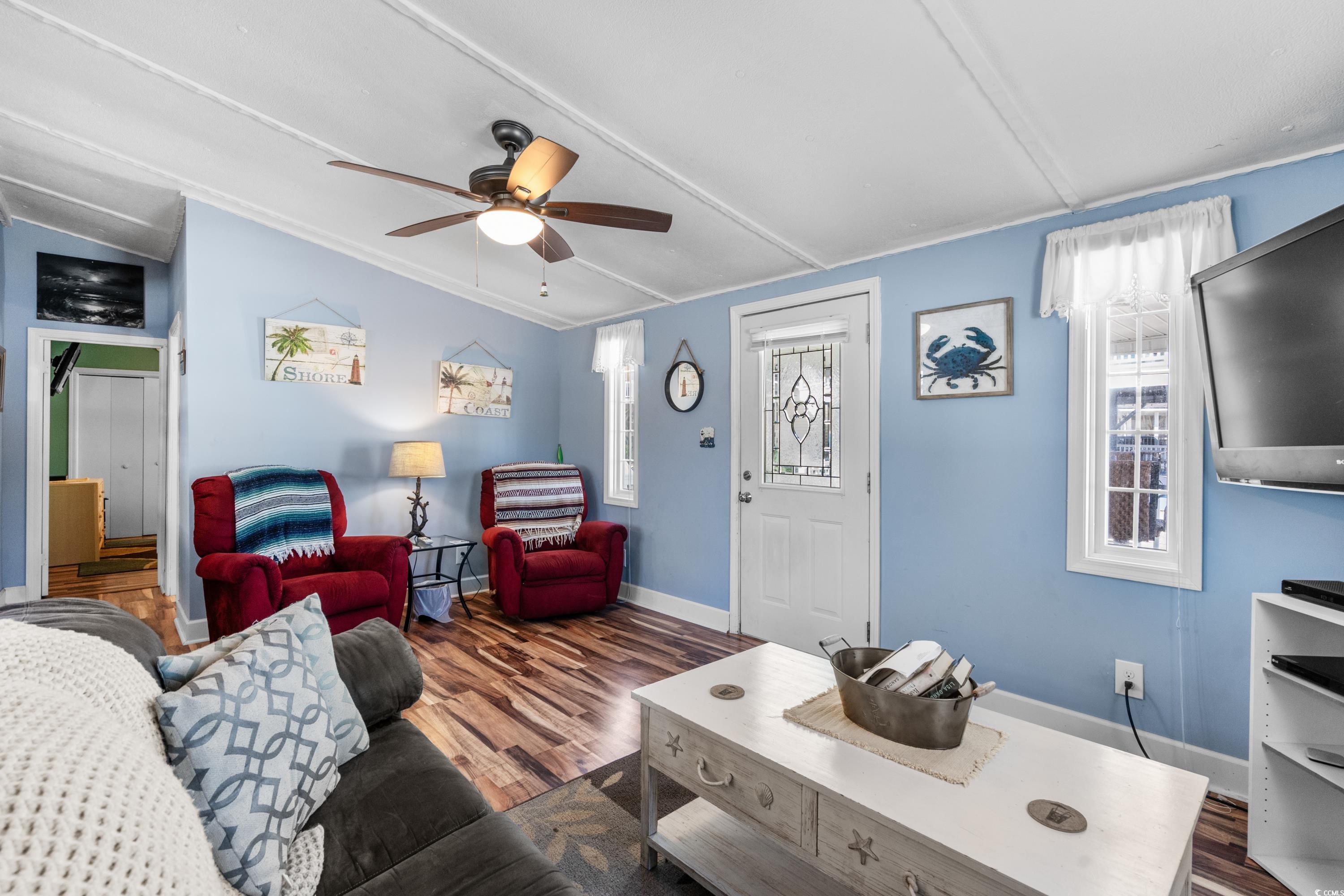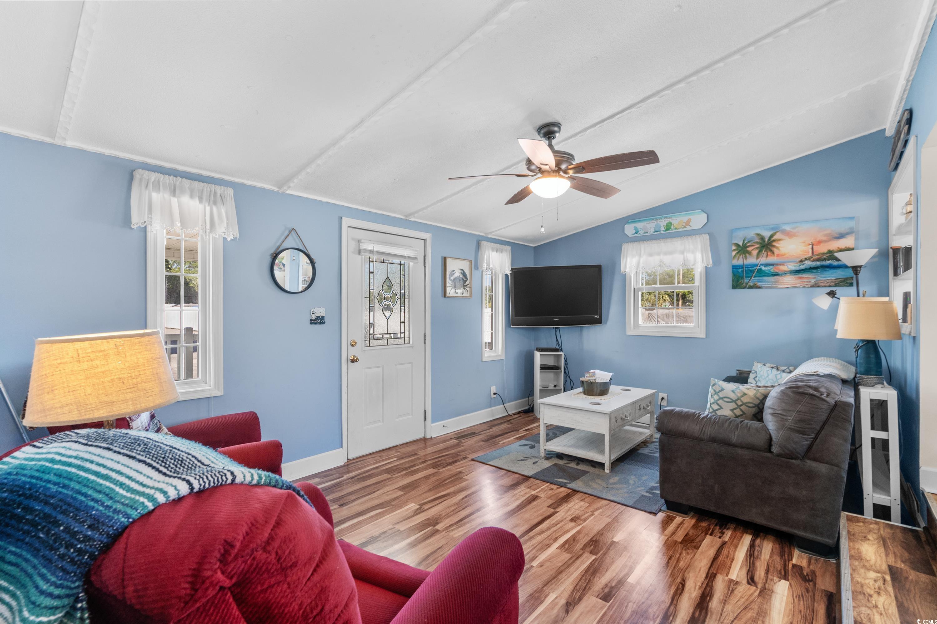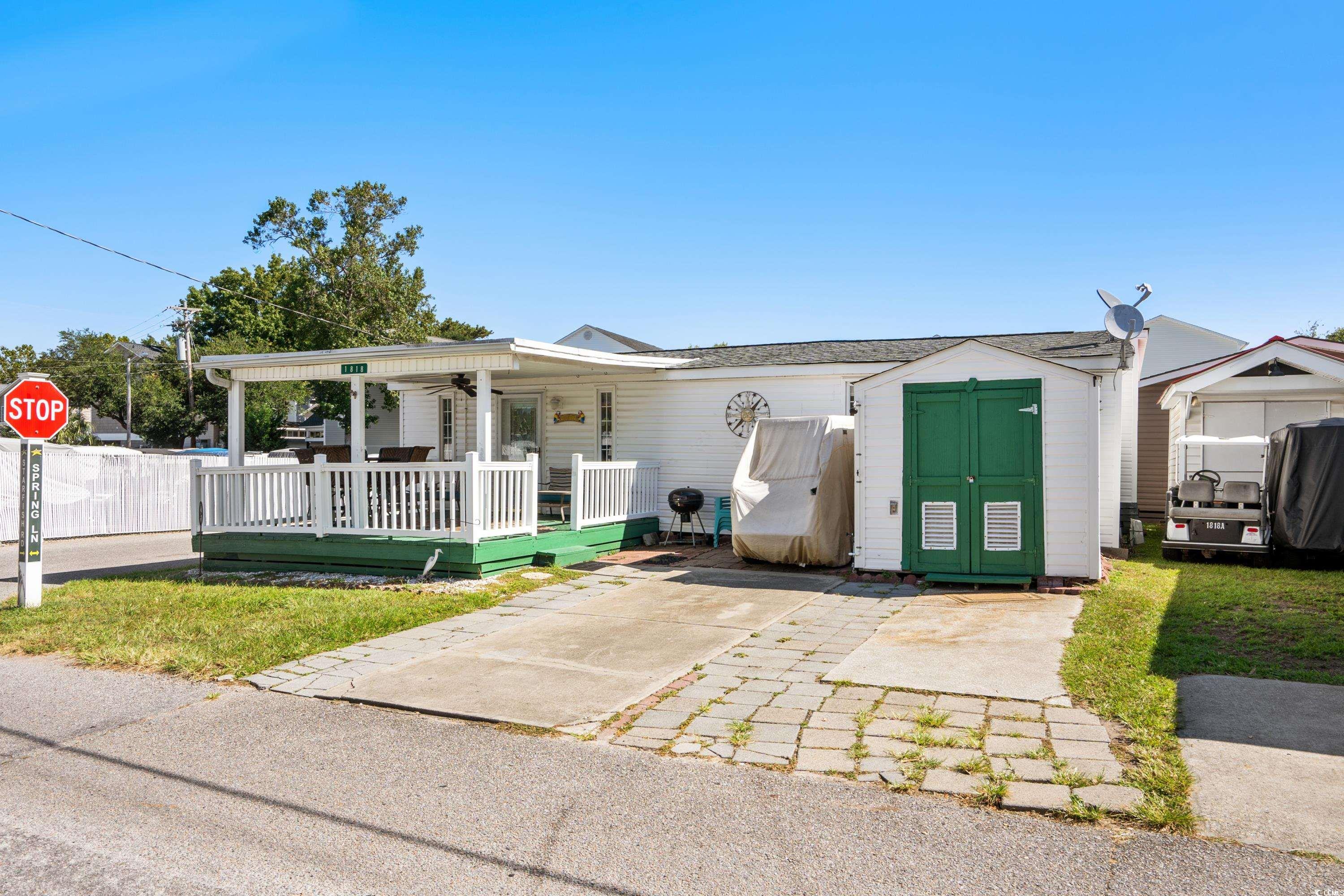 Welcome to this charming 2-bedroom, 2-bath beach house perfectly situated on a prime corner lot within the award-winning Ocean Lakes Family Campground in Myrtle Beach, SC. This beautifully maintained home offers a bright and open-concept layout, with a spacious living and dining area ideal for entertaining or relaxing after a day at the beach. The fully equipped kitchen provides plenty of cabinet space and functionality for everyday living. Outside, you'll enjoy a covered porch and generous outdoor space, perfect for enjoying coastal breezes and summer evenings. The property also includes a large driveway with room for multiple vehicles or golf carts. Located in a golf cart-friendly, gated community with 24/7 security, this home is just steps from some of the best resort-style amenities available on the Grand Strand. Ocean Lakes offers private beach access, indoor and outdoor pools, a full water park with a lazy river and slides, basketball courts, mini golf, an arcade, multiple playgrounds, and on-site dining and shopping. Whether you're looking for a permanent residence, a vacation retreat, or a high-demand rental property, this move-in-ready beach house offers the perfect blend of comfort, convenience, and fun. Dont miss your chance to own a slice of paradise in one of the most sought-after beachfront communities in the Southeast.