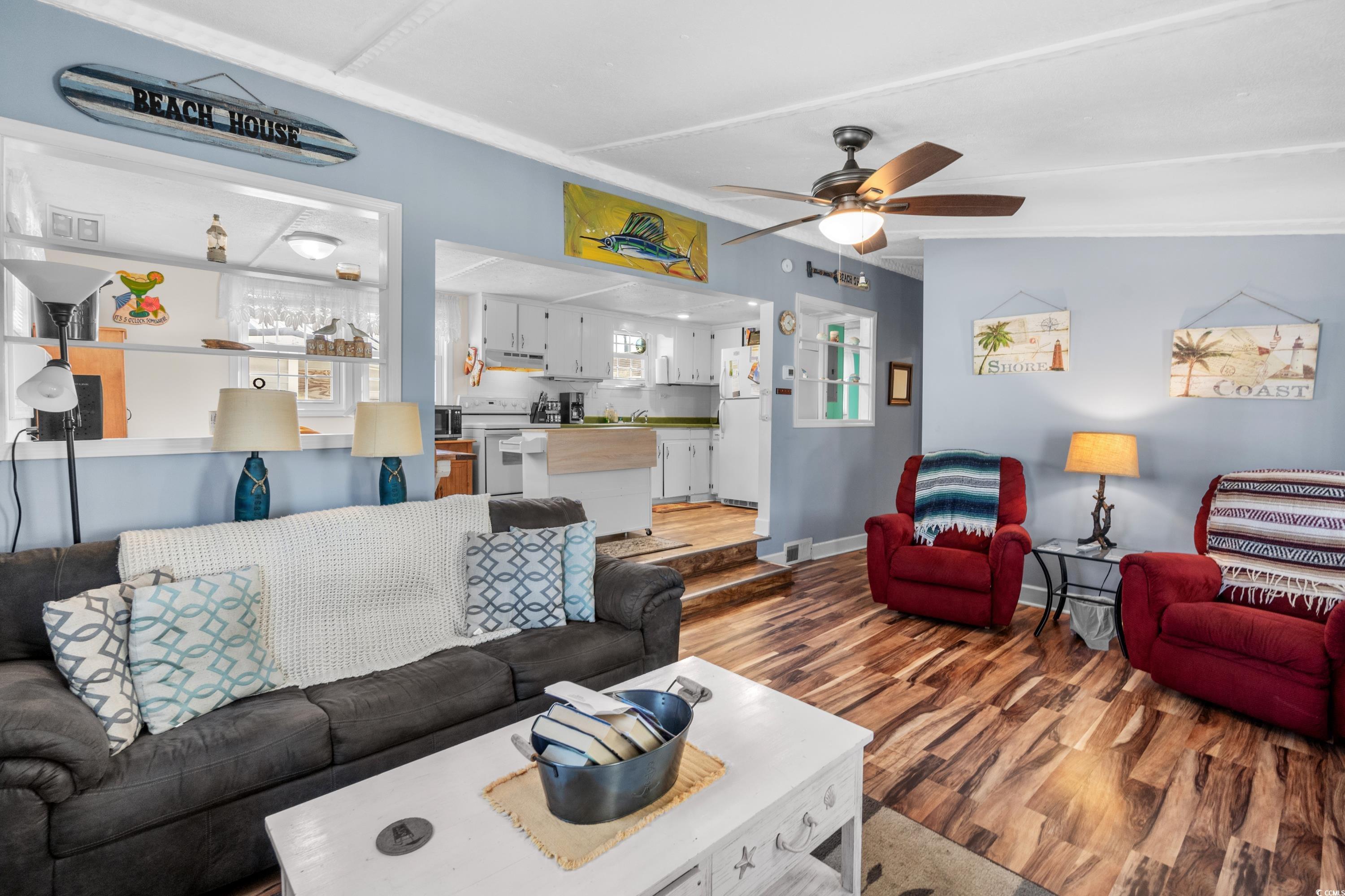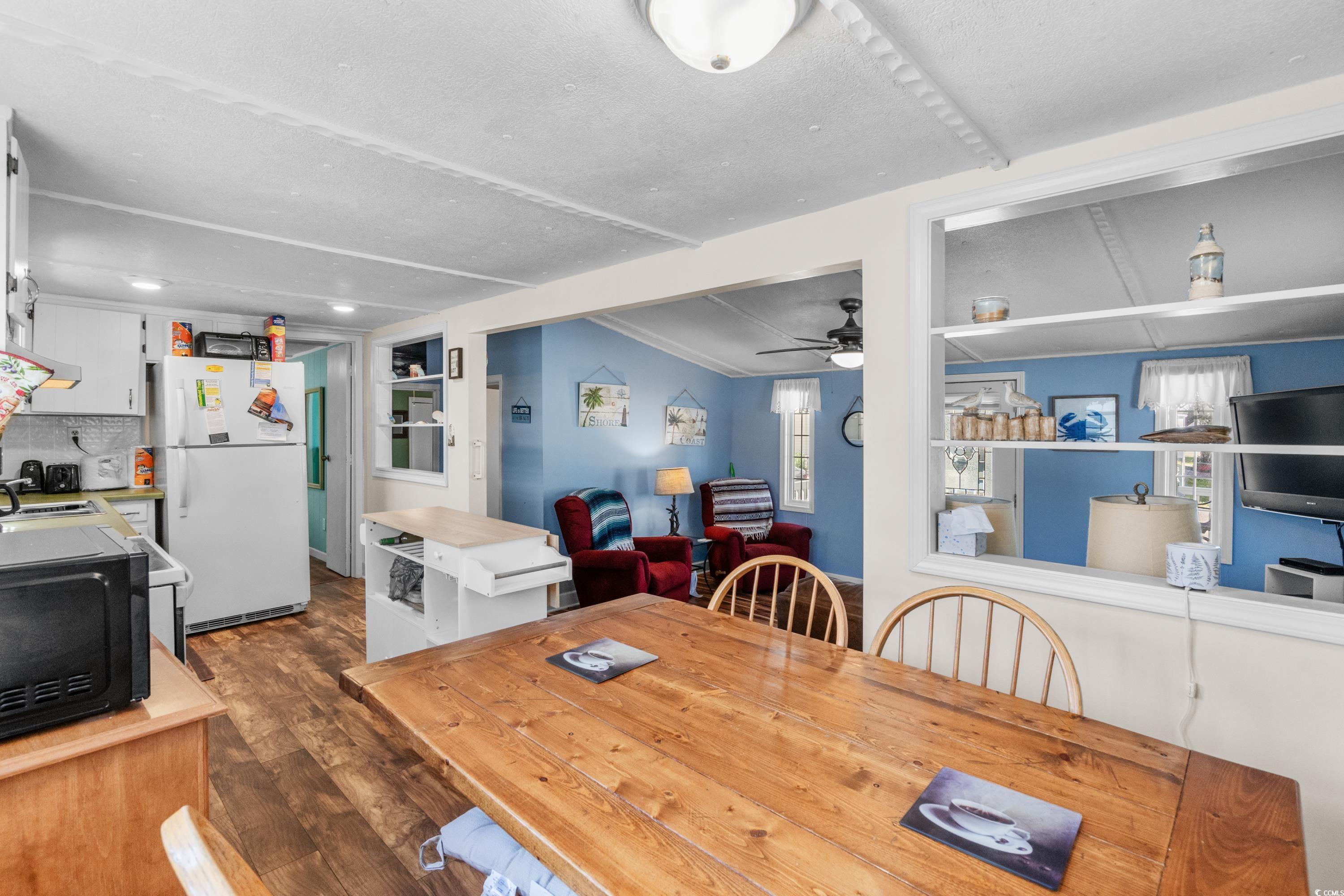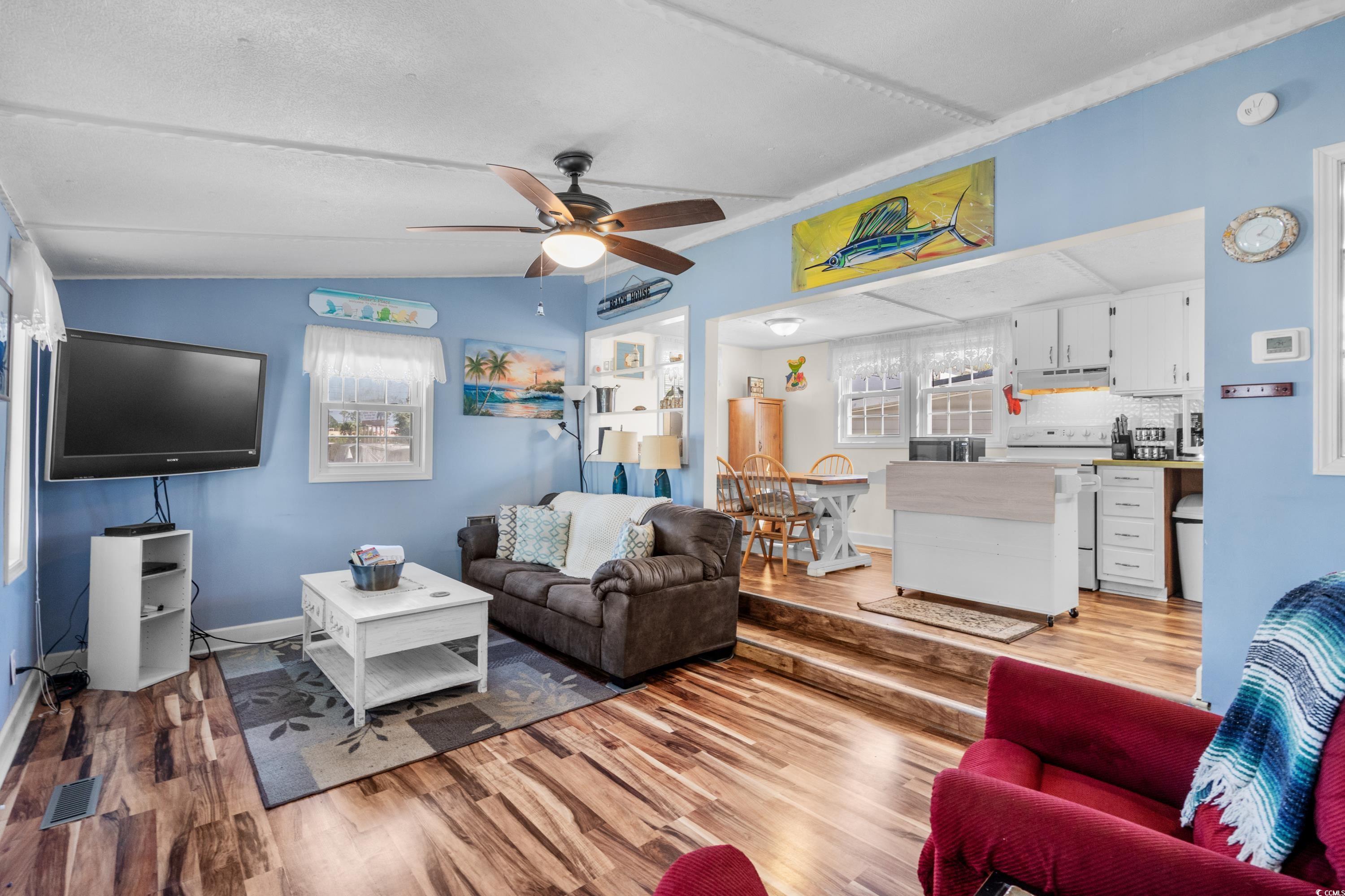 Welcome to this charming 2-bedroom, 2-bath beach house perfectly situated on a prime corner lot within the award-winning Ocean Lakes Family Campground in Myrtle Beach, SC. This beautifully maintained home offers a bright and open-concept layout, with a spacious living and dining area ideal for entertaining or relaxing after a day at the beach. The fully equipped kitchen provides plenty of cabinet space and functionality for everyday living. Outside, you'll enjoy a covered porch and generous outdoor space, perfect for enjoying coastal breezes and summer evenings. The property also includes a large driveway with room for multiple vehicles or golf carts. Located in a golf cart-friendly, gated community with 24/7 security, this home is just steps from some of the best resort-style amenities available on the Grand Strand. Ocean Lakes offers private beach access, indoor and outdoor pools, a full water park with a lazy river and slides, basketball courts, mini golf, an arcade, multiple playgrounds, and on-site dining and shopping. Whether you're looking for a permanent residence, a vacation retreat, or a high-demand rental property, this move-in-ready beach house offers the perfect blend of comfort, convenience, and fun. Dont miss your chance to own a slice of paradise in one of the most sought-after beachfront communities in the Southeast.