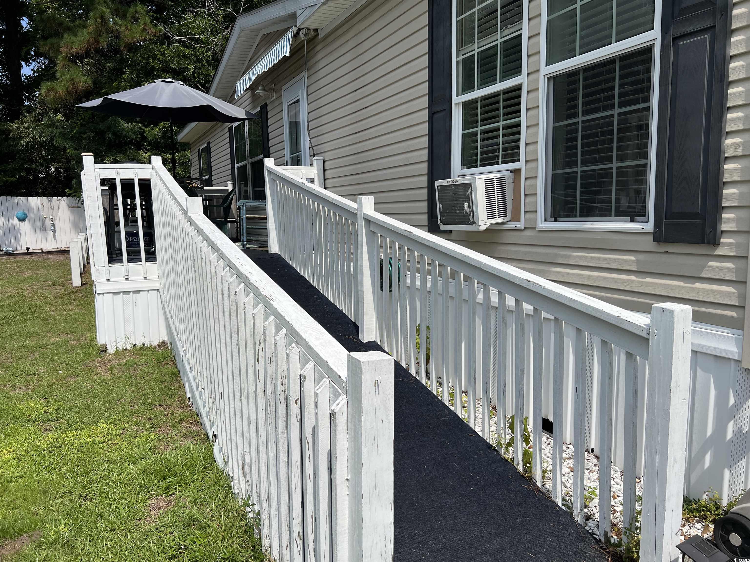 Beach Living in Windjammer Village- a Beach/ Lake Community which offers a pool, clubhouse, and basketball court. Beautiful 3 Bed/ 2 Bath with A large Front Deck and Handicap Ramp in the Heart of Garden City Beach- Golf Cart ride to the Ocean, Inlet Square Mall, Grocery Shopping, Walmart, and plenty of Yummy Restaurants. Pet friendly and motorcycle ok. Shingled Roof. Large Split Floor Plan. Large Living room. Laminate flooring. Ceiling fans throughout. Vaulted ceilings. Large Designer Kitchen with Large Island, Dining Area, Newer appliances- New Stainless Steel Refrigerator, range, and New Dishwasher. Designer Kitchen cabinets with plenty of storage. Master Bath with Large Garden, Seperate shower, and double sink vanity. Second Bath with tub/ shower and vanity. Sit back and enjoy the Large Front Deck. Landscaped yard with palms, shade trees with plenty of room for flower beds and a garden. Detached shed. Room to add-on. Call your Agent Today to Schedule a Showing! Must Come Visit!