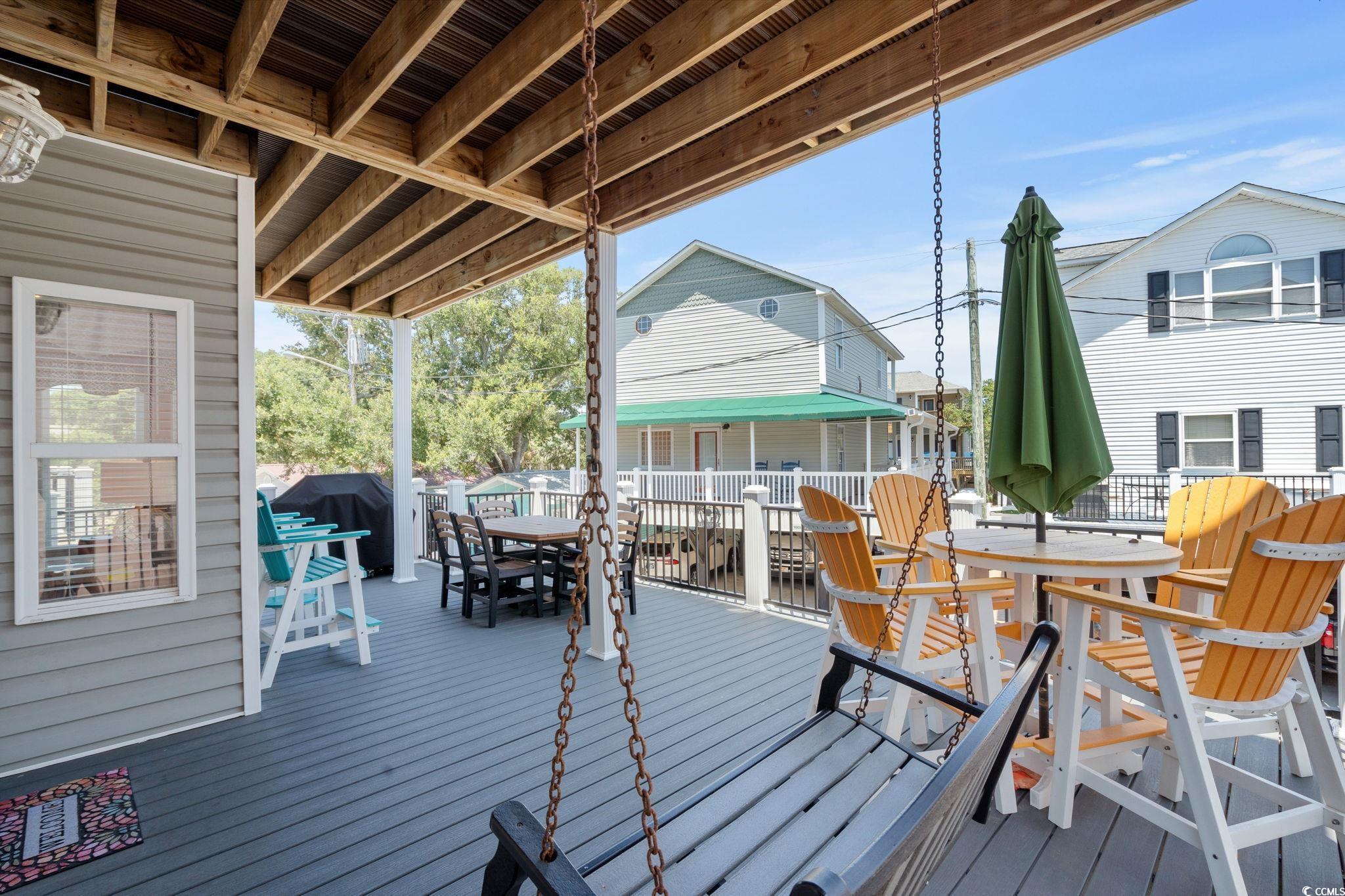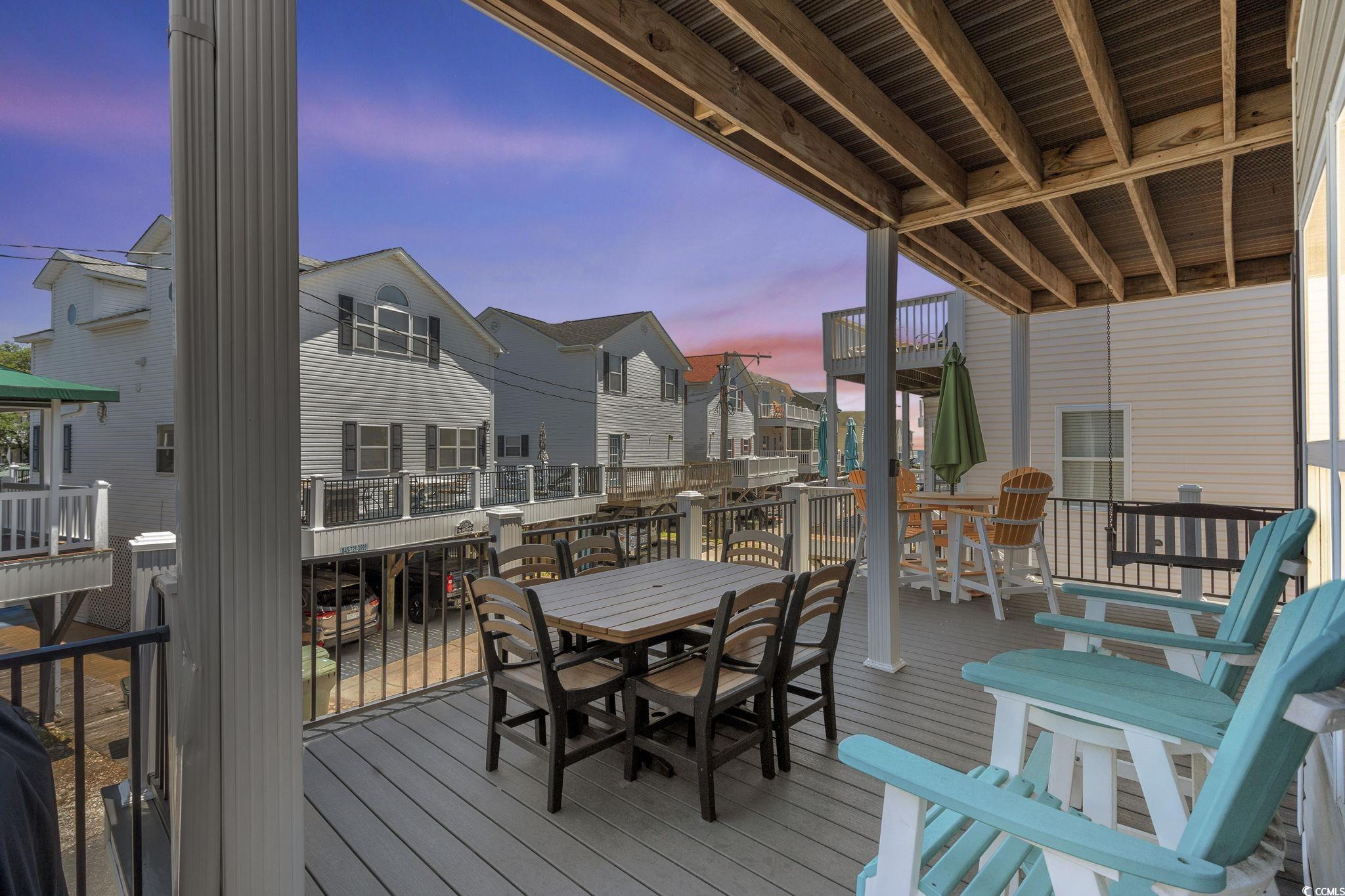 Discover coastal living at its finest with this beautiful 5-bedroom, 3.5-bathroom raised beach house located in the prestigious, amenity-rich Ocean Lakes Family Campground. Boasting partial ocean views and just a short walk to the sand, this spacious home offers the perfect blend of beachside charm and modern comfort. The open-concept living area flows effortlessly into a fully equipped kitchen and modern appliances, making it ideal for family gatherings or group getaways. Step outside to enjoy the sea breeze on expansive composite decking, built for low maintenance and durabilityperfect for outdoor dining, sunbathing, or sunset relaxation. Inside, youll find five generously sized bedrooms (including a private primary suite) and 3.5 well-appointed bathrooms, offering plenty of space for guests. Raised construction allows for ample covered parking, secure storage, and an outdoor shower for sandy feet. This home offers a fantastic short-term rental opportunity, with the ability to accommodate large families or multiple guestshighly sought after in this popular resort area. Ocean Lakes' world-class amenities attract vacationers year-round, featuring a private beach, indoor and outdoor pools, a full water park with slides and a lazy river, playgrounds, basketball courts, mini golf, 24/7 gated security, and golf cart access throughout the community. Whether you're looking for second home or a high-income generating investment, this turn-key property delivers exceptional value, location, and rental potential in one of Myrtle Beachs most desirable beachfront communities.
