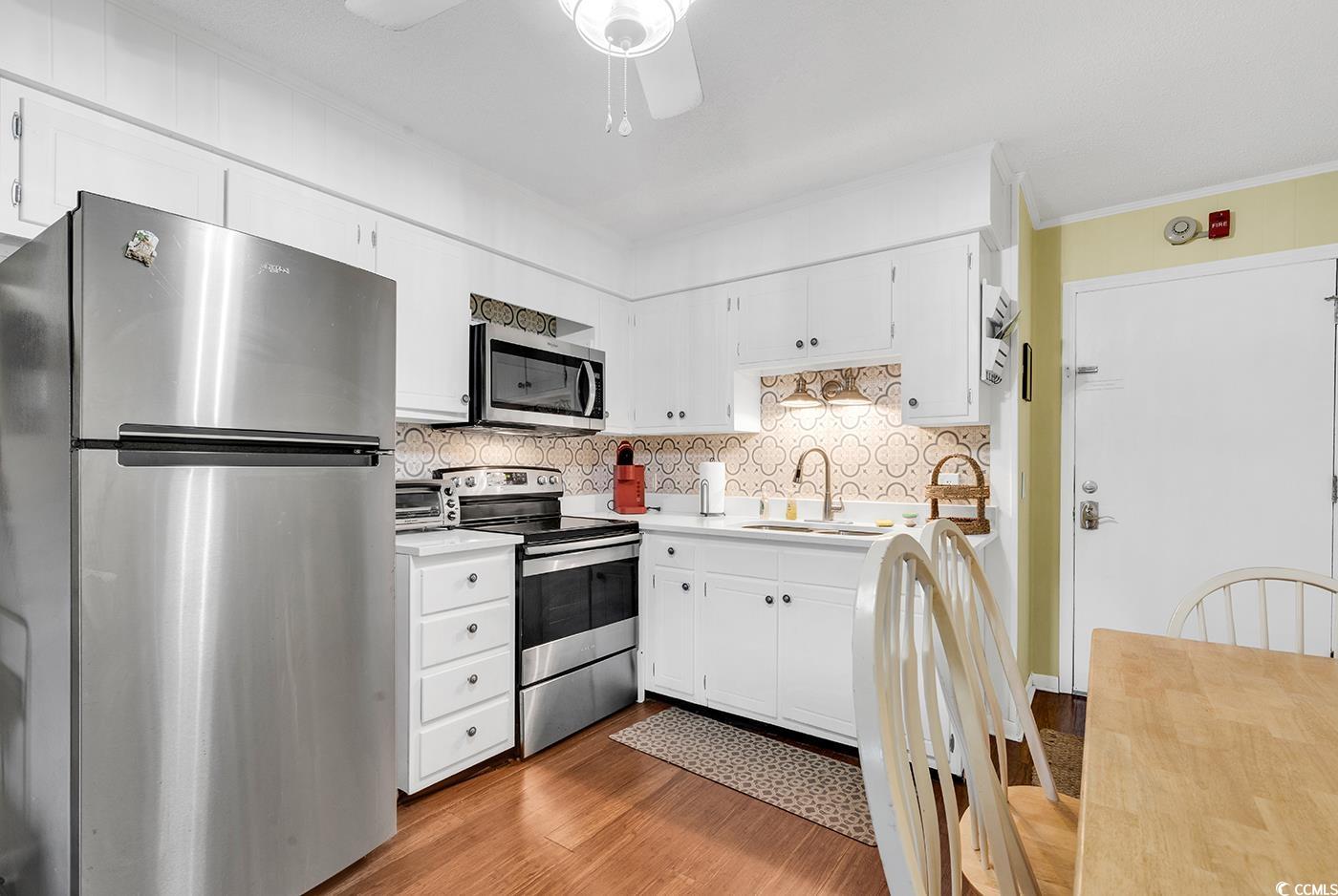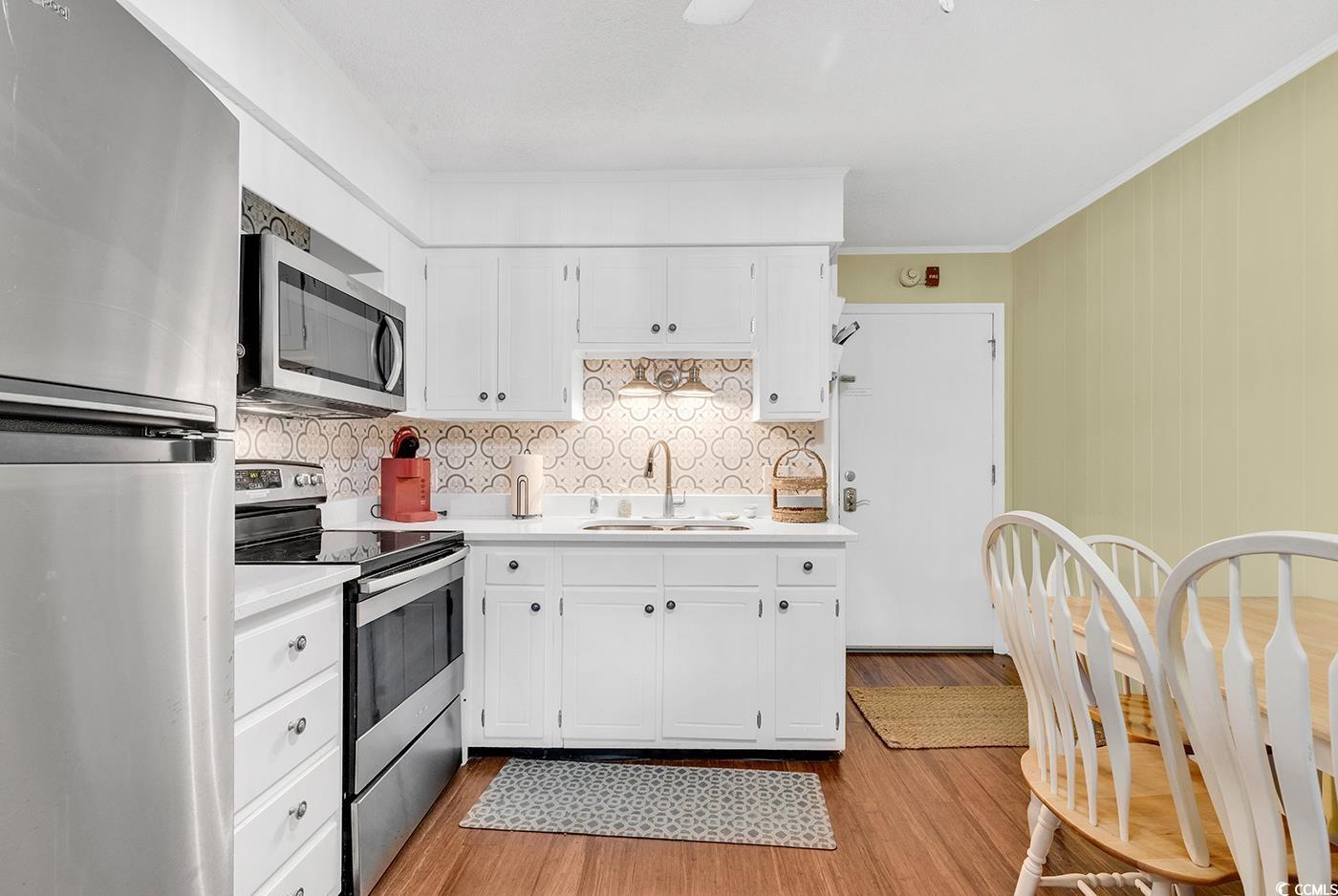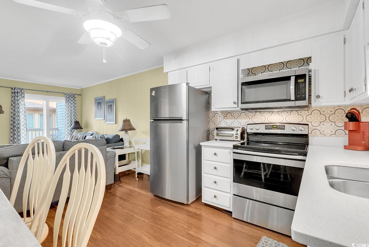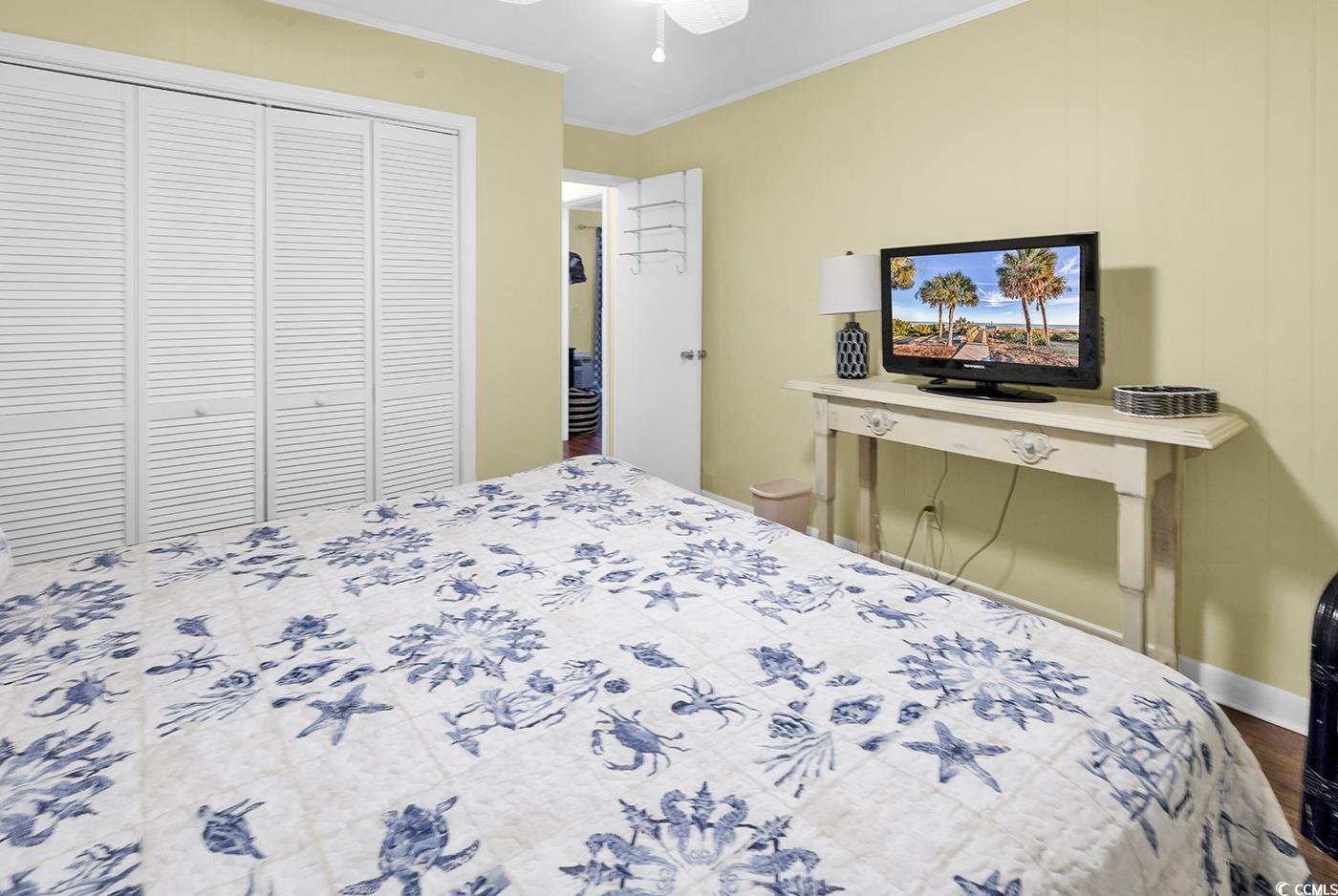 Beautiful two-bedroom furnished condo with short one-block stroll to the beach in North Myrtle Beach. This condo can be easily modified to add a master bathroom to make it two full bathrooms (reach out to listing agent for details/quote). This unit has all the bells and whistles including upgraded laminate flooring, quartz countertops in the kitchen, granite countertops in the bathroom, and stainless-steel appliances. This unit is located on the second floor and has balcony doors that were replaced in 2020. Whether you are looking for your forever home, a vacation getaway, or a property with strong rental history, you will not want to miss this one! All local attractions, restaurants, shopping, golf courses, and historic Main Street are in close proximity. Come by and see this condo today!