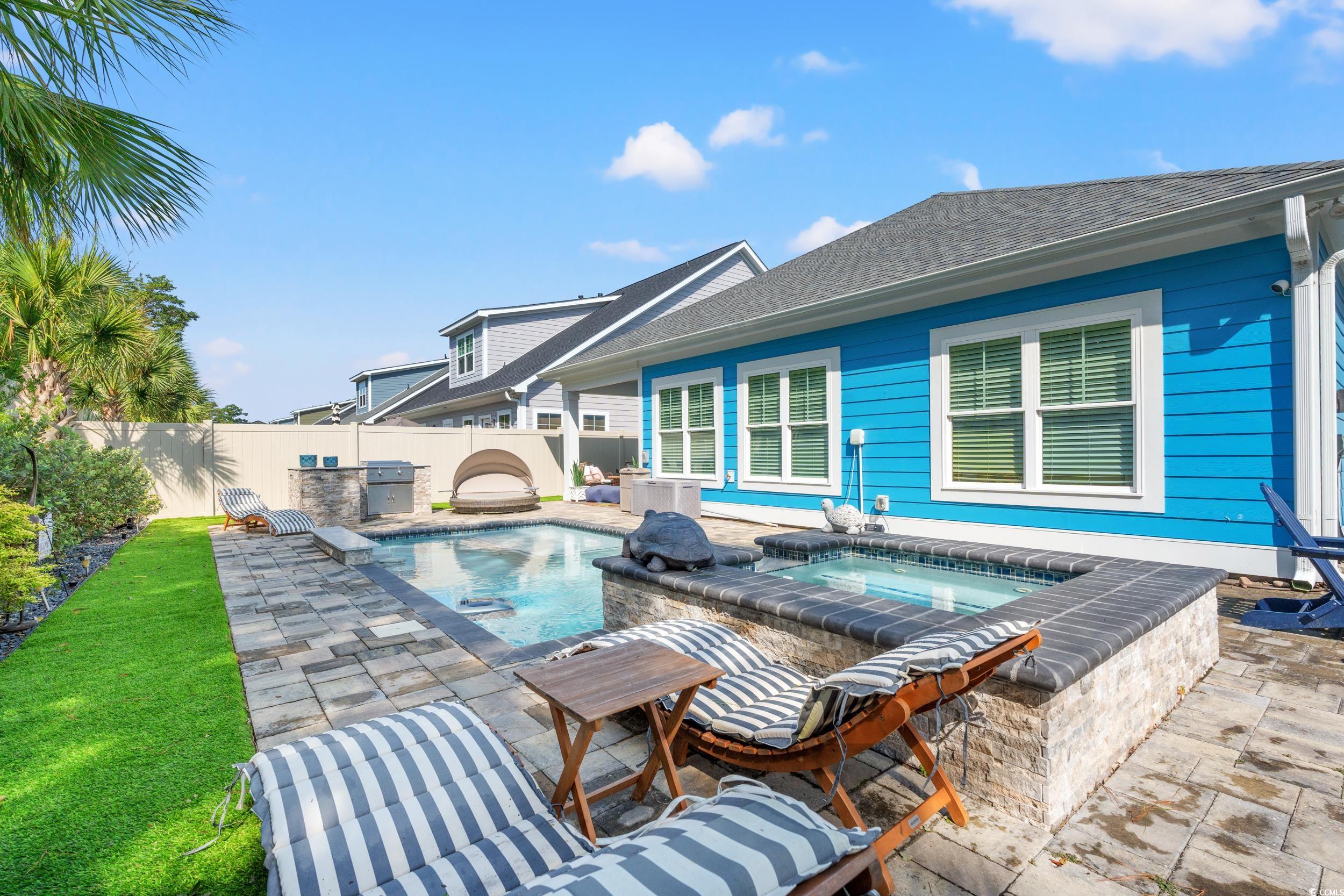 Your dream coastal retreat awaits you! This beautiful 5 bedroom, 3 bath FURNISHED home welcomes you with spacious, light-filled living areas featuring tile flooring and LVP throughout the main spaces. Enjoy the gourmet kitchen with a gas cooktop, sleek tile backsplash, granite countertops, and stainless steel appliances. Added details like crown molding, custom trim, ceiling fans, and custom blinds make this home stand out. The laundry room is thoughtfully designed with extra cabinetry, granite countertops, and includes the washer and dryer. A spacious three-car garage provides ample storage and convenience, and a whole house generator adds peace of mind during any season. Outside you will discover your own private backyard oasis. Unwind in the heated saltwater pool or hot tub, grill in the fully equipped outdoor kitchen with a gas line, or gather around the cozy natural gas fire pit. The expansive patio with pavers, maintenance-free turf, tropical palm trees, and river rock accents create a serene, resort-like escape. A privacy fence ensures complete tranquility. Beautiful home with golf cart included, perfect for quick trips to the beach or amenities. The golf cart is a 2023 EZ Go L6 Gas. This exceptional residence is in a prime location making it easy for trips to the beach, shopping, dining, golf, entertainment, and more. All just minutes away. Experience the perfect blend of luxury, comfort, and coastal living!