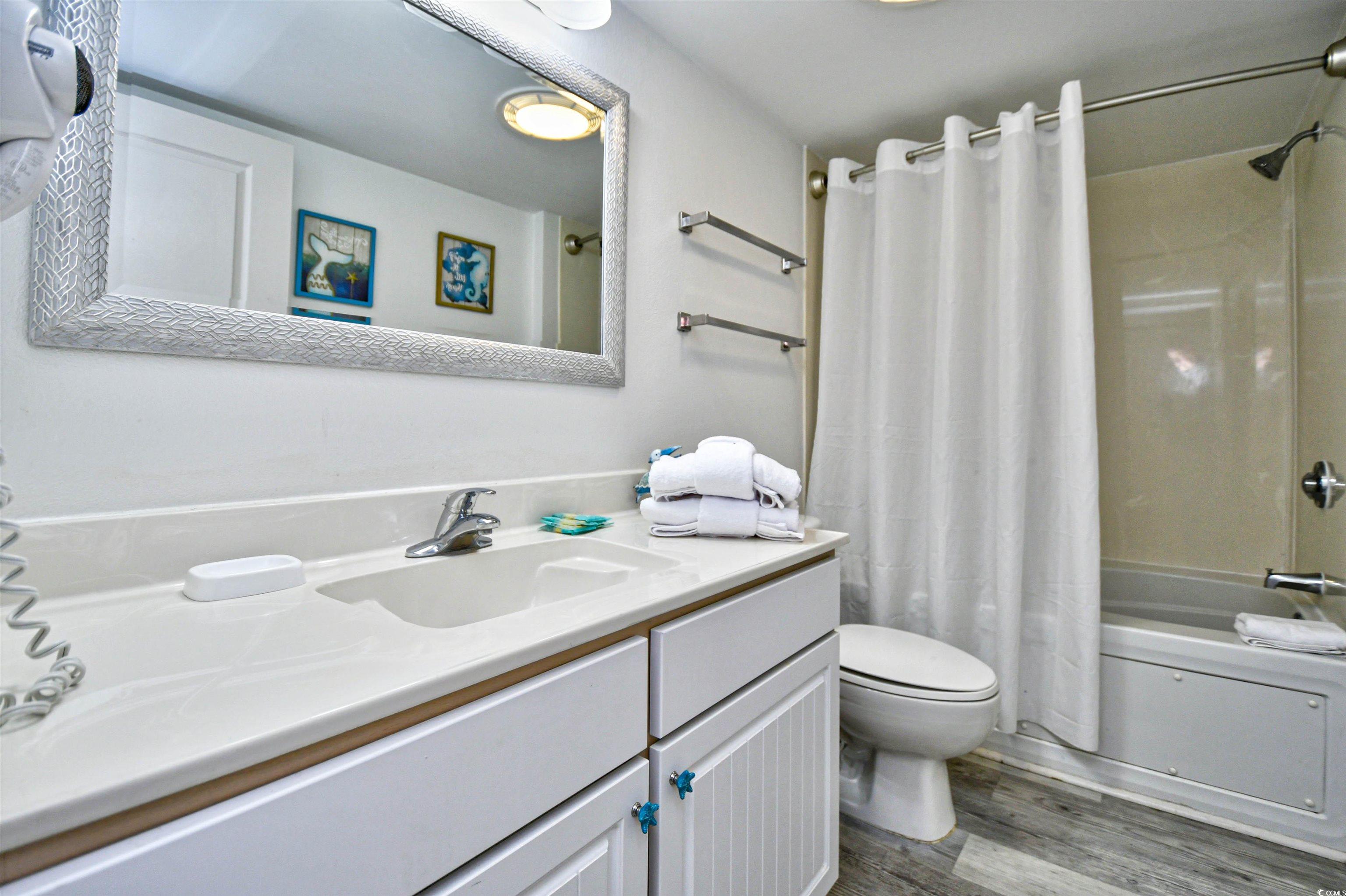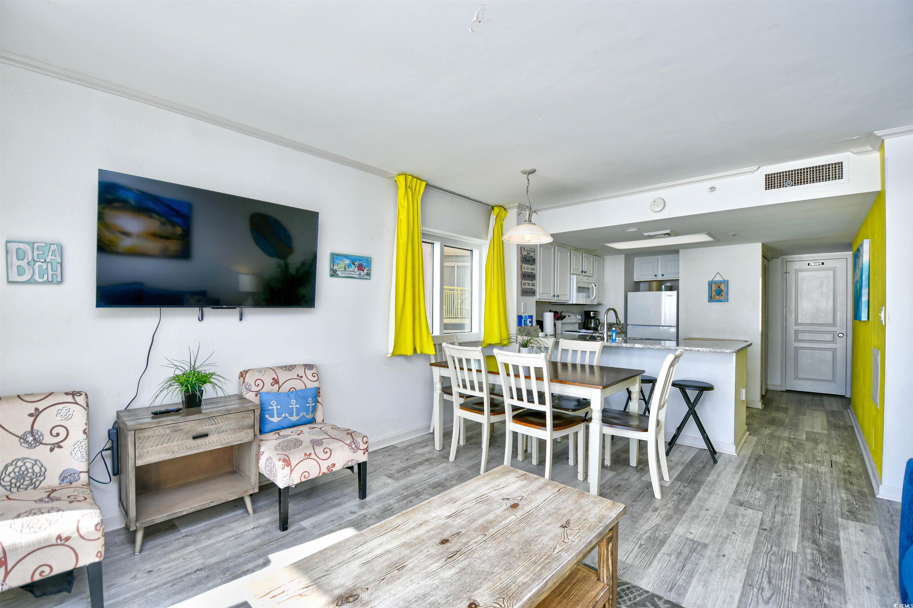 Enjoy breathtaking views and miles of beach from your very own balcony of this 15th floor end unit condo! This oceanfront condo has 2 bedrooms, 2 baths, and sleeps 10 so families can experience wonderful vacations together. A home away from home that comes fully- furnished and includes a full-equipped updated kitchen w/quartz countertops, LVP throughout, newer paint, newer coastal furnishings and washer/dryer. Amenities at Baywatch include lazy rivers, pools, Jacuzzis, restaurant, tiki bar, and fitness center all within the resort so pack your bags and experience oceanfront living. HOA includes all utilities, cable and internet. Bay Watch is a desired oceanfront resort in North Myrtle Beach, close to Barefoot landing and all that North Myrtle Beach has to offer!