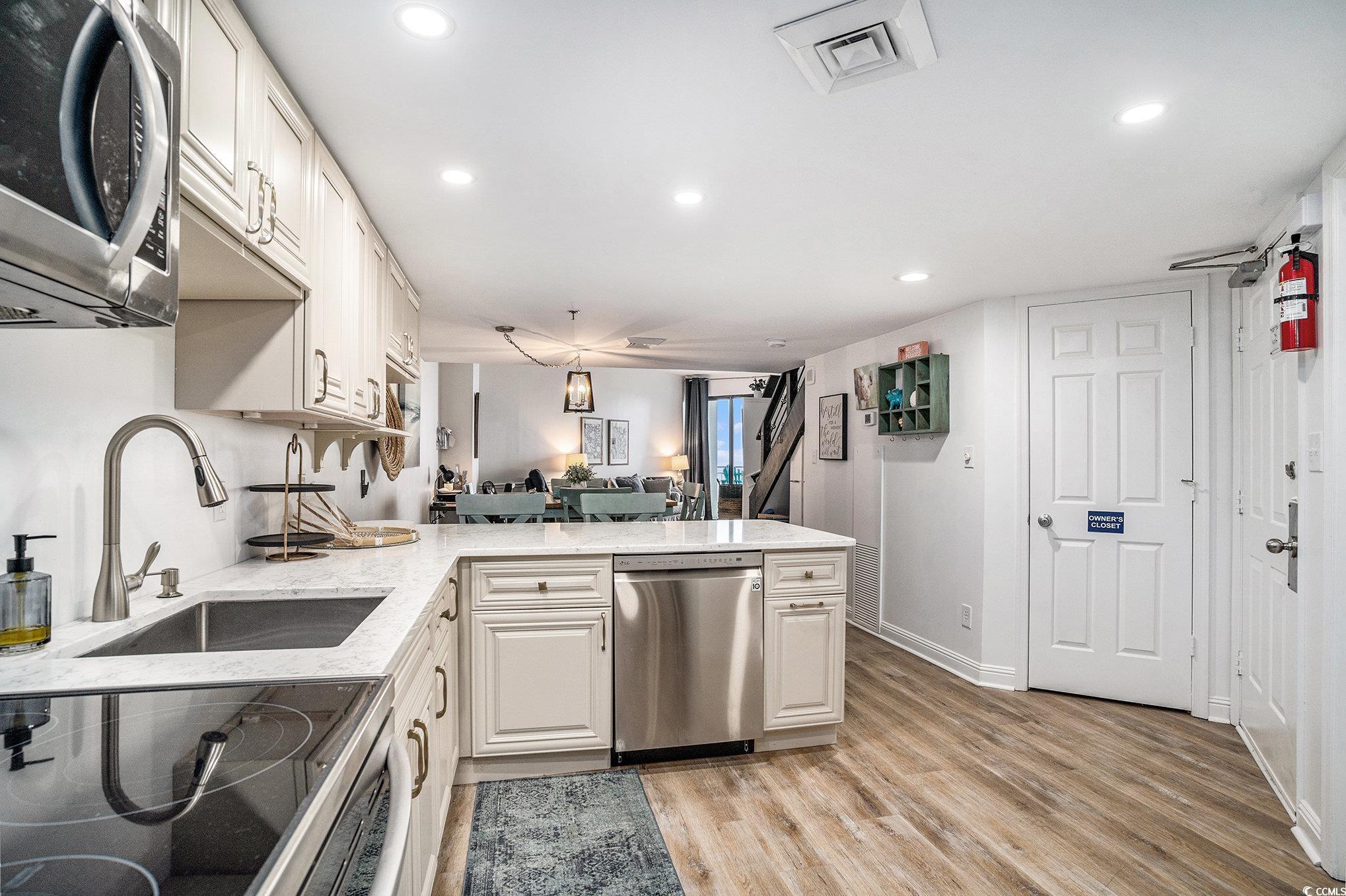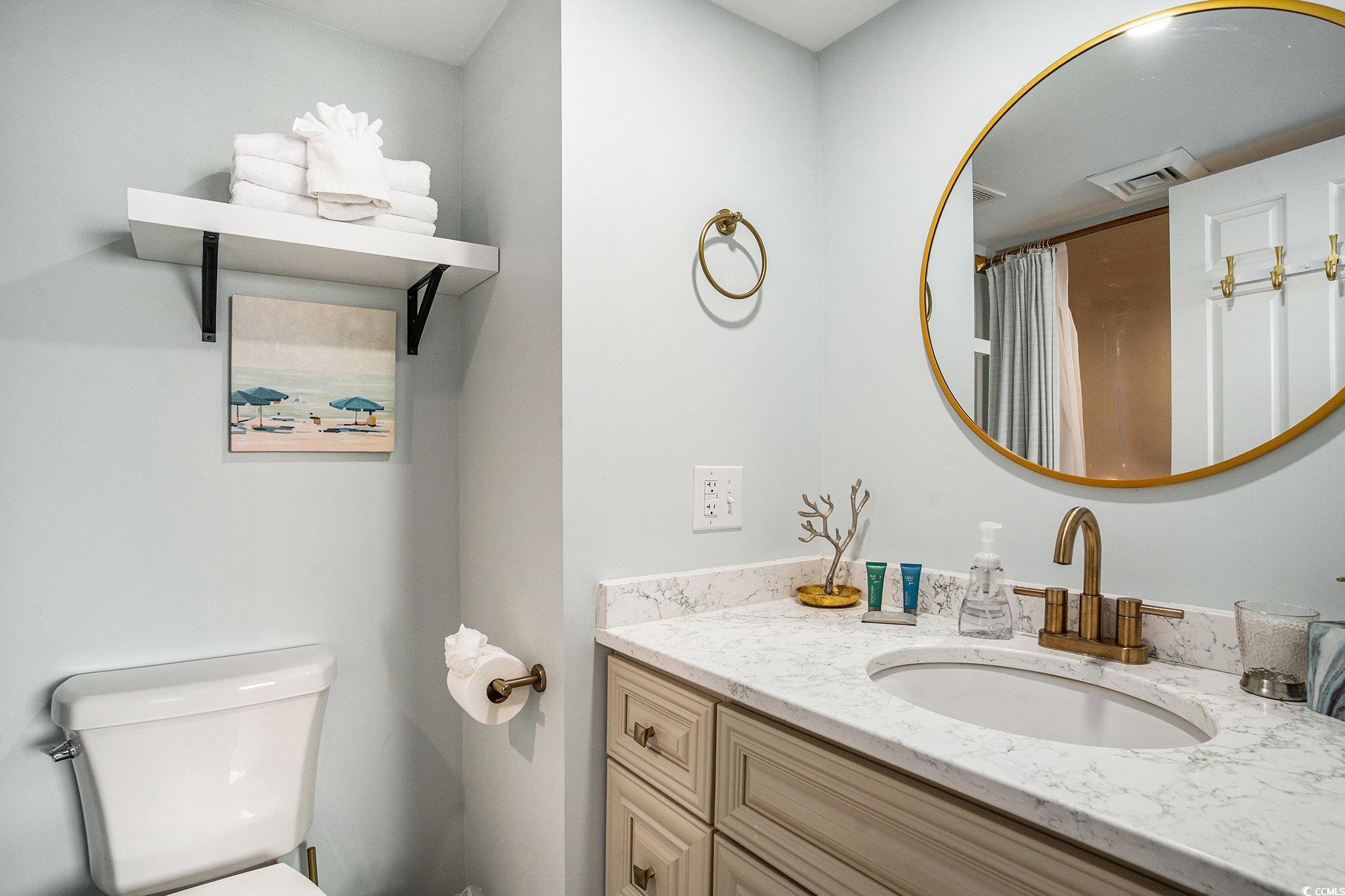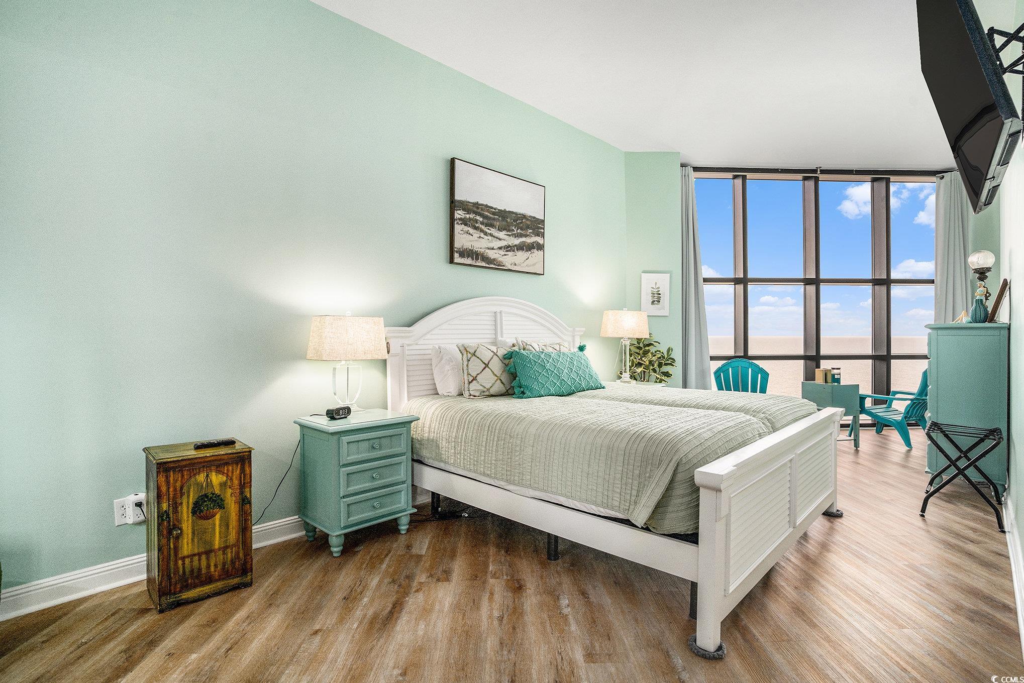 Experience the height of coastal luxury in this beautifully renovated 2-bedroom, 2.5-bath, two-story penthousea RARE opportunity in the prestigious Ocean Forest Plaza, ideally located along Myrtle Beachs highly desirable Golden Mile and Cabana Section. Situated on the 22nd floor, this elegant residence offers sweeping ocean views from several rooms. The main level features an open-concept design with a modern kitchen showcasing quartz countertops, stainless steel appliances, and a spacious dining areaperfect for entertaining. The bright and airy living room opens to a private balcony, where youll enjoy serene views of the shoreline and Atlantic horizon. A custom-designed staircase leads to the upper level, where two generously sized bedrooms each have their own private bath. The primary suite is a tranquil retreat, featuring floor-to-ceiling windows that capture some of the most captivating views along the Grand Strand. The ensuite bath includes a beautifully tiled shower and an additional vanity, offering extra space for convenience and comfort. Ocean Forest Plaza offers an impressive array of resort-style amenities, including indoor and outdoor pools, a hot tub, sauna, owners lounge, fitness center, laundry facilities, and access to an oceanfront walking trail and linear exercise park just steps away. HOA fees conveniently include interior electric, water/sewer, cable, and internet. Pet-friendly for owners. Whether youre seeking a full-time residence, vacation escape, or income-producing investment, this ocean view penthouse delivers the perfect combination of comfort, location, and lifestyle. Dont miss this rare chance to own your slice of paradiseschedule your private showing today!