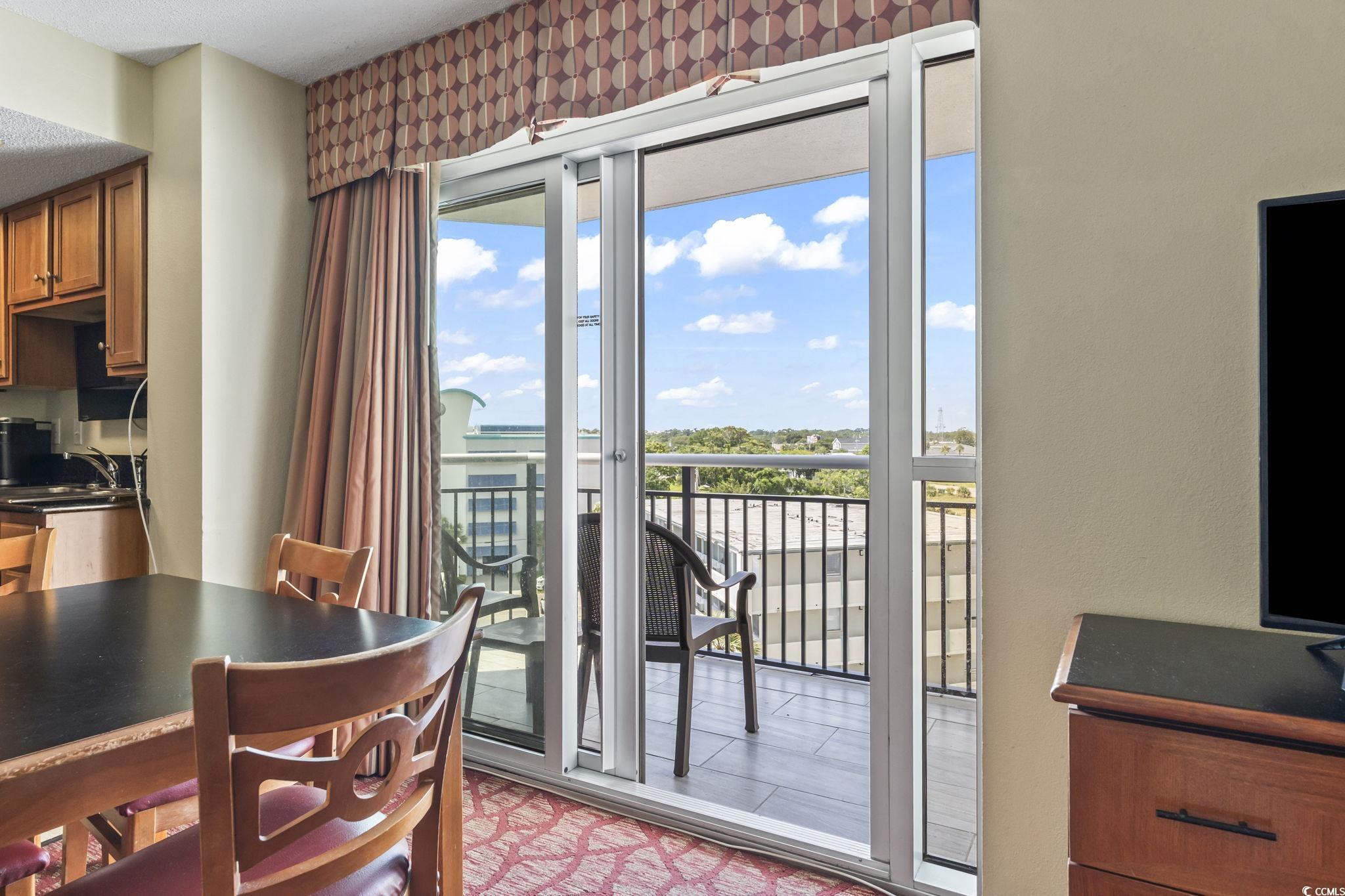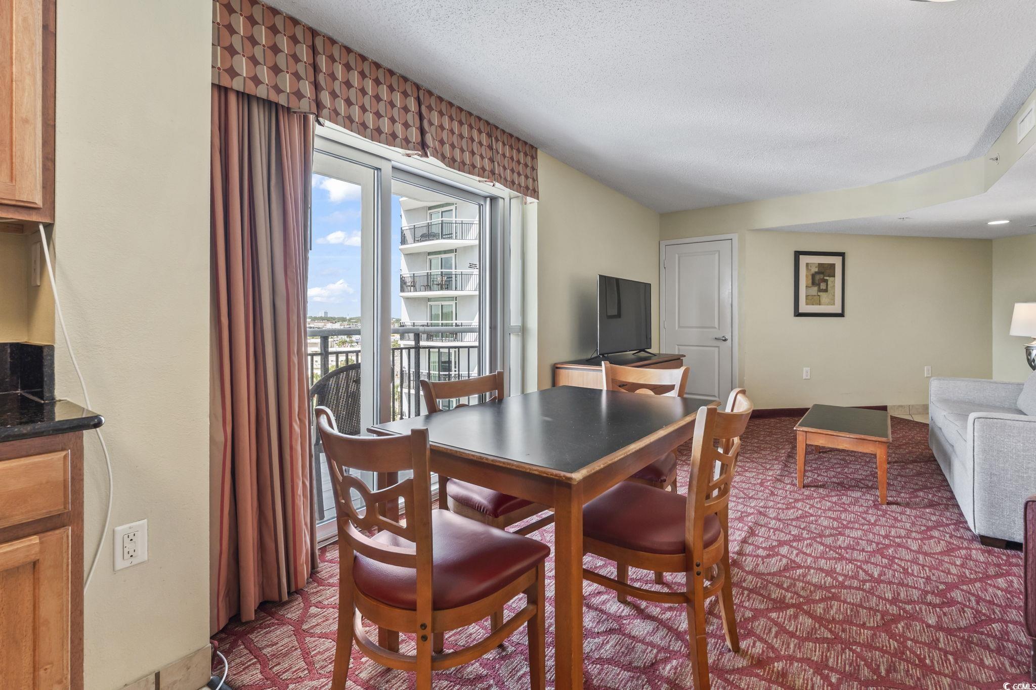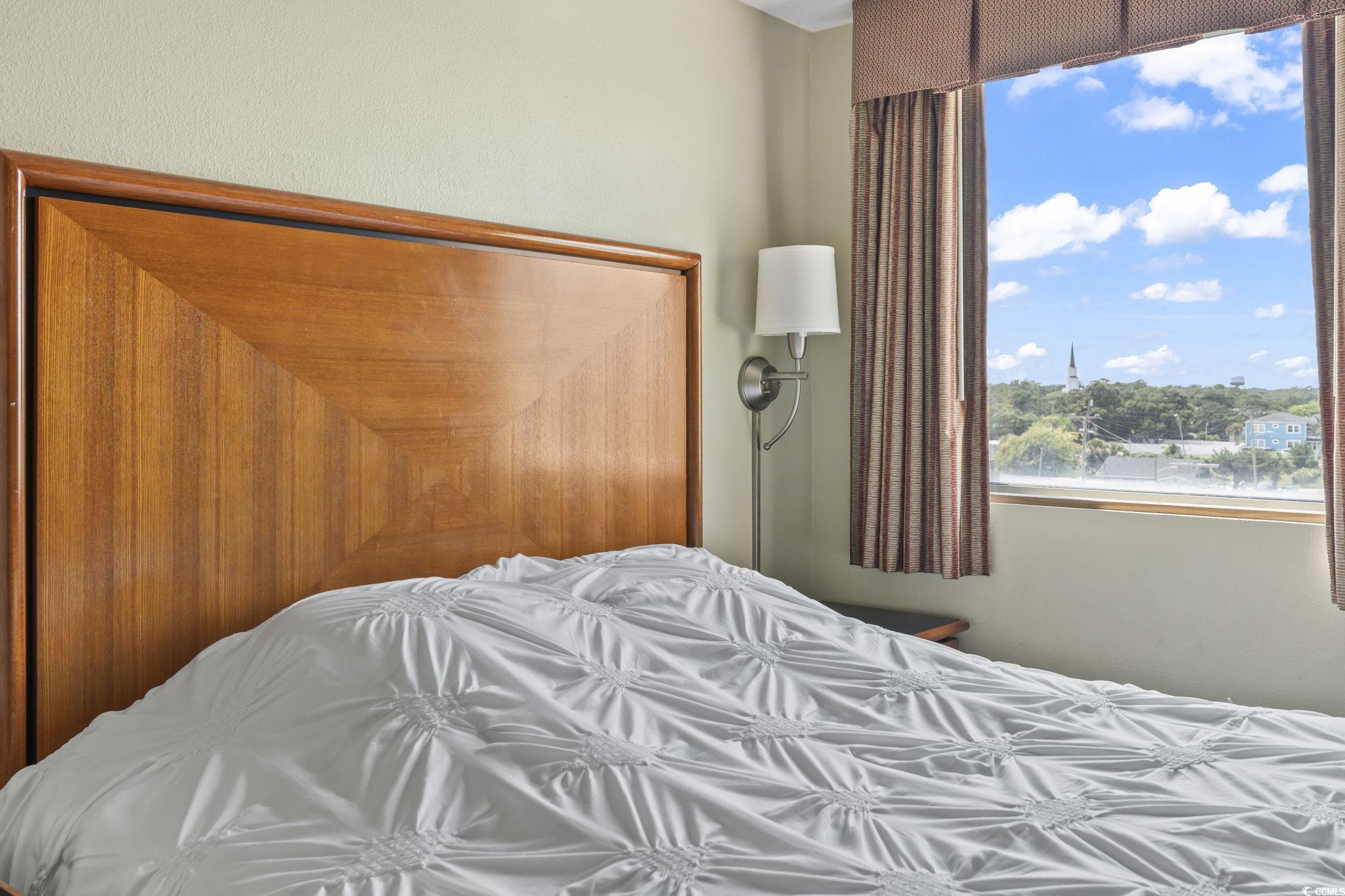 This fully furnished 1-bedroom condo on the 6th floor offers stunning views and a rare true one-bedroom layout, providing a private sleeping space separate from the living area. Stylish updates include flooring, Kitchen appliances, solid surface countertops, and modern appliances. The spacious living room opens to a private balcony with panoramic city and ocean views, perfect for enjoying evening sunsets. Whether you're seeking a personal beach getaway or a high-performing short-term rental, this turnkey unit is ready to go. Bay View Resort is located directly on the famous Myrtle Beach Boardwalk and features premium amenities such as an indoor pool, lazy river, hot tubs, fitness center, and an on-site Starbucks. Walk to attractions like the 2nd Avenue Pier, restaurants, shops, and summer festivals. Excellent rental income potential! Don't miss your chance to own in one of Myrtle Beach's most vibrant and walkable oceanfront locations!