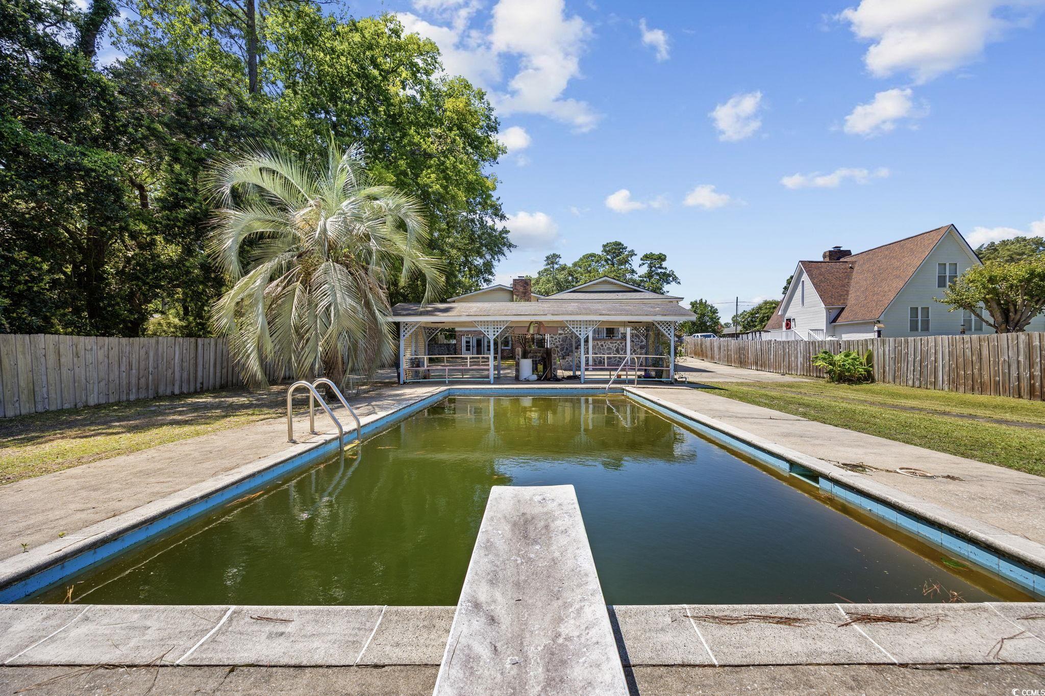 Welcome to a rare find in a quiet, non-HOA neighborhood less than a mile from the beach and just a short stroll (under 1/4 mile!) to Withers Swash Park. Tucked away on a spacious .39-acre lot surrounded by mature, established homes, this unique property offers over 3,000 square feet of living space PLUS a separate pool house with its own kitchen area and full bathroom. Whether you're cruising to the beach, shops, restaurants, or local grocery stores, this golf cart-friendly area makes coastal living feel effortless and fun. Inside the main home, you'll find 3 bedrooms and 3 bathrooms, including a large living room featuring a wood-burning stove that's never been used. Step outside to a large courtyard ideal for entertaining, complete with an area that once served as an outdoor kitchen, and a spacious in-ground pool (in need of TLC) waiting to be brought back to life. The pool house creates even more opportunity; perfect for guests, in-laws, or a potential income suite. This property is being sold as-is and presents a fantastic canvas for buyers ready to modernize and personalize a home in an unbeatable location. This is your chance to create a true coastal retreat with space to grow and entertain. Homes like this rarely hit the market, don't miss your opportunity!