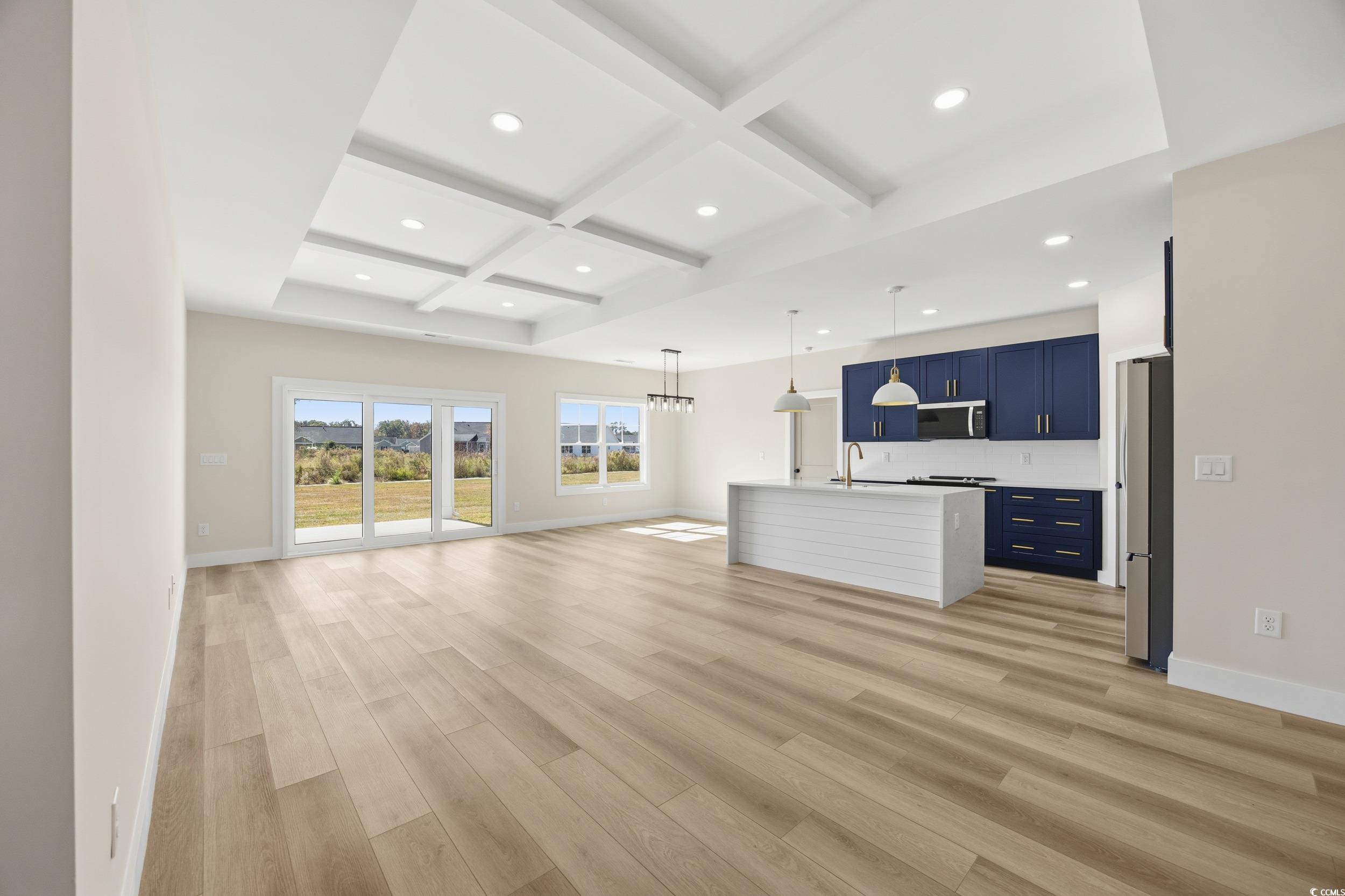 Brand new construction, move-in ready. This beautifully designed 4 bedroom, 3 bath home sits on a spacious 0.54 acre lot, offering comfort, privacy, and modern living just minutes from downtown Conway and less than 20 miles from Myrtle Beach. Featuring luxury vinyl plank flooring and 9-foot ceilings throughout, the open concept layout fills the home with natural light. The living room highlights elegant coffered ceilings and oversized sliding doors that open to a covered back porch, perfect for entertaining or relaxing outdoors. The kitchen showcases quartz countertops, shaker-style cabinets, and a stunning waterfall island. The private primary suite includes tray ceilings, a large walk-in closet, and a spa-style bathroom with a seamless walk-in shower and dual vanity. A secondary suite with its own bathroom is ideal for guests or extended family, plus two additional bedrooms and another full bath. Additional features include an attached two-car garage, dedicated laundry room, and no HOA. Enjoy the perfect combination of space, design, and convenience in a quiet residential setting. Schedule your private showing today and discover the best of new construction in Conway.