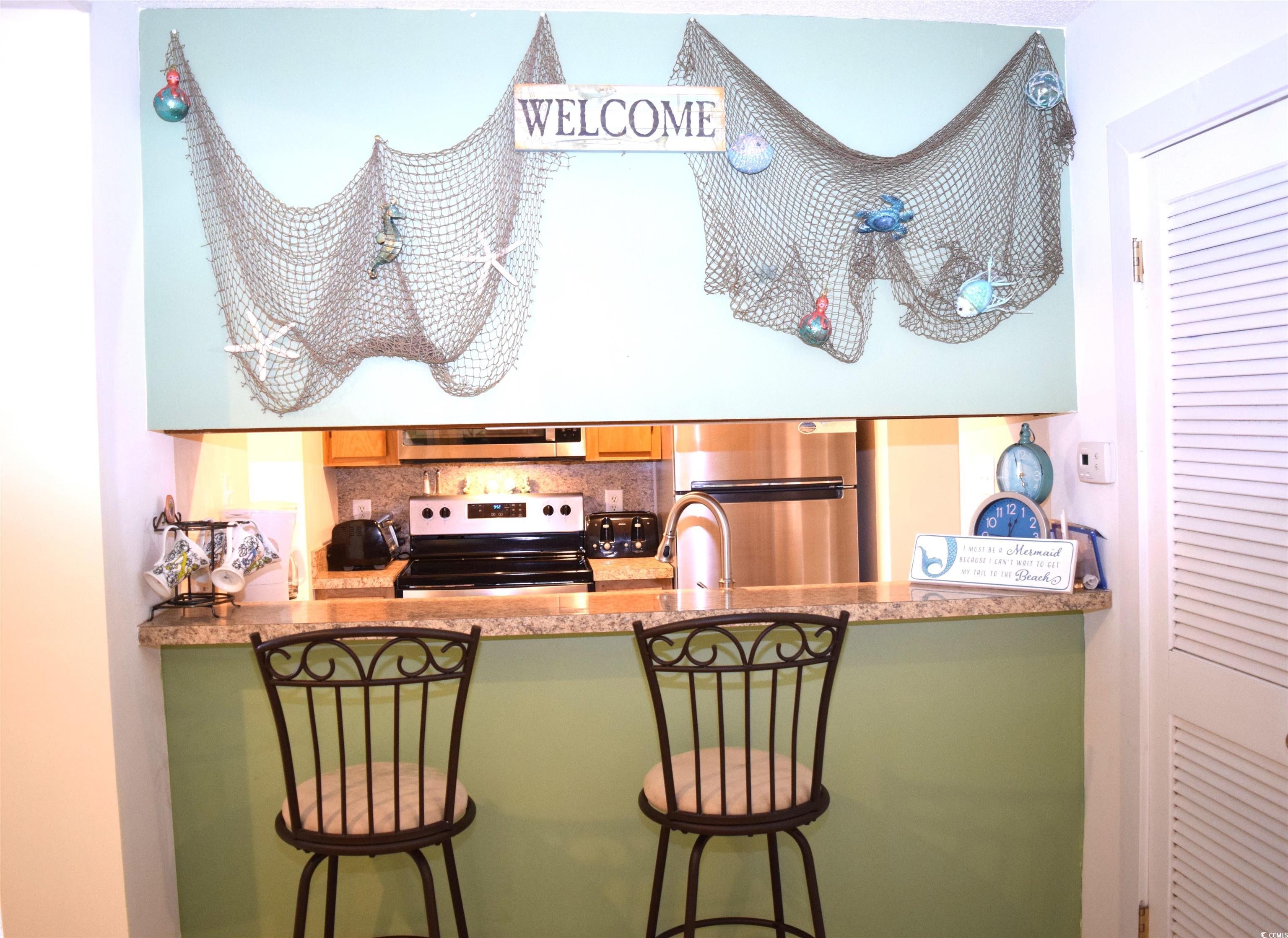 Perfect Beach Getaway - Updated First-Floor Corner Condo at Ocean Bridge. If easy access and coastal charm top your wish list, look no further. This beautifully updated 2-bedroom, 2-bath first-floor corner unit is one of the rare few in the Ocean Bridge community offering just one step to the front doorone stair, no hassle. Located just across the street from the beach in the highly desirable Shore Drive areahome to the iconic Ocean Anniesthis fully furnished condo is a true coastal retreat. Enjoy stunning pool views and thoughtful updates throughout, including luxury vinyl plank flooring in the wet areas and upgraded bathroom vanities. The primary suite features a custom-tiled walk-in shower, while the guest bathroom offers a new fiberglass tub/shower combo. Both bedrooms come furnished with queen beds and boast generous closet space. Pocket doors create a sense of privacy, giving each bedroom the feel of a private suiteperfect for hosting guests or sharing with family. You will enjoy the flexibility to sleep up to 7 people thanks to the family room pull out Lazy Boy and Ashley couches. The efficient kitchen includes recently updated stainless steel and black appliances, making meal prep easy whether you're entertaining or enjoying a quiet night in. To top it off your covered balcony overlooking the pool is perfect for relaxing after a fun day at the beach. Ocean Bridge is ideally situated near the Apache Pier, top-rated restaurants, shopping, and entertainment. Whether you're searching for a full-time home, vacation escape, or smart rental investment, this low-maintenance condo offers the ultimate in convenience, comfort, and beachside living.