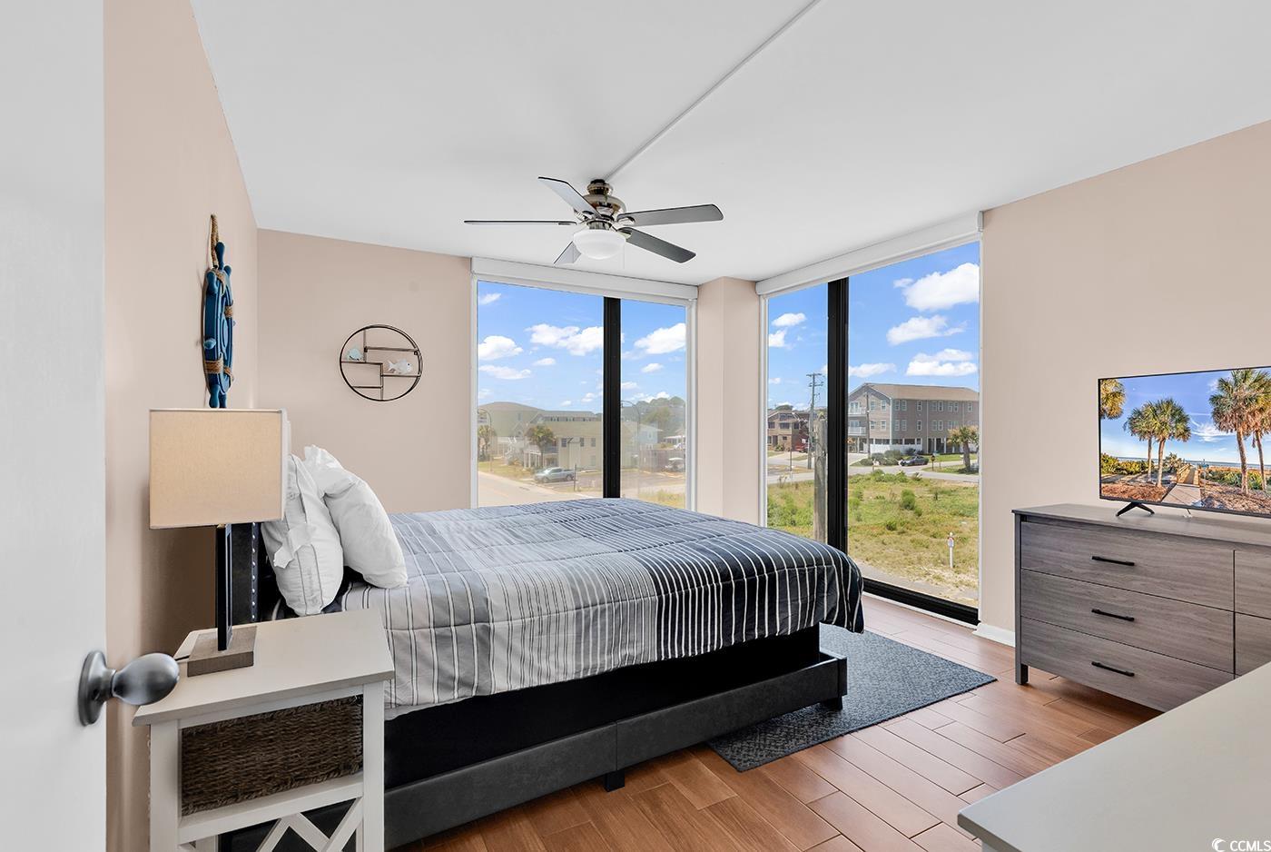 Welcome to your dream coastal getaway at Sea Castle in North Myrtle Beach! This spectacular 3-bedroom, 2-bath ocean view condo located in the highly sought-after Crescent Beach section just steps from the sand and surf. This turnkey, fully furnished corner unit is filled with natural light and modern touches throughout. Enjoy an open-concept layout perfect for entertaining, featuring a spacious living room with oversized corner windows, direct balcony access, and stunning ocean views. The kitchen blends function and style with white cabinetry, stainless steel appliances, tile floors, and a convenient breakfast bar. Both bathrooms have been tastefully remodeled, and the master suite boasts a walk-in tiled shower and modern vanity. It features: hurricane-rated windows and balcony doors, LVP & tile flooring, custom decorative concrete balcony, and popcorn ceilings removed. Roller shades offer added privacy throughout. Relax or dine on your oversized private balcony as you soak in the sights and sounds of the Atlantic. Sea Castles resort-style amenities include an oceanfront pool, hot tub, kiddie pool, sun deck, picnic & grilling area, elevator, and four levels of covered parking. HOA dues cover water/sewer, cable, internet, pest control, building insurance, and more. Ideally located just minutes from Main Streets vibrant restaurants and entertainment, as well as world-class golf, shopping, and everything North Myrtle Beach has to offer! This is the perfect primary home, vacation retreat, or rental investment. Dont miss your chance to own a slice of paradise. Schedule your private tour today!