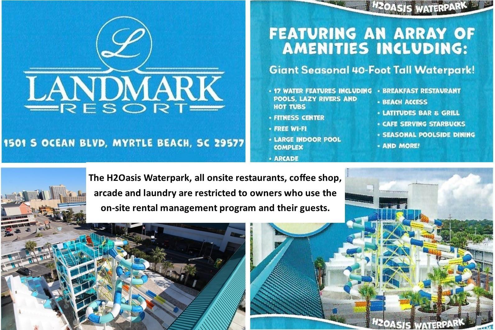 This oceanfront, studio condominium is located in the Landmark Resort, an oceanfront resort with 17 indoor and outdoor pools, including an on-site waterpark. This is an income generating property with an on-site rental management company. This unit has new laminate flooring & new AC unit. New mattresses & new furniture. Sleeping accommodations for four; double bed and pull-out sleeper sofa. The Landmark Resort has a variety of onsite dining options. The Gazebo Restaurant is open for breakfast year-round. Latitudes Grill opens daily for lunch and dinner. During the summer months guests can enjoy the poolside bar, snack shop and grill. The onsite Havana Java Bar proudly servs Starbucks Coffee. Make a splash at Landmark Resort with spectacular amenities including newly renovated indoor and outdoor pools, lazy rivers, whirlpools, kiddie pools & H2Oasis waterpark. On-site Laundry, Exercise Facility, Video Arcade Parking Garage & Mini-Golf course. The Landmark Resort is a Family Friendly oceanfront resort in the middle of Myrtle Beach, close to the airport and all the attractions the Coastal Carolinas has to offer. www.landmarkresort.com