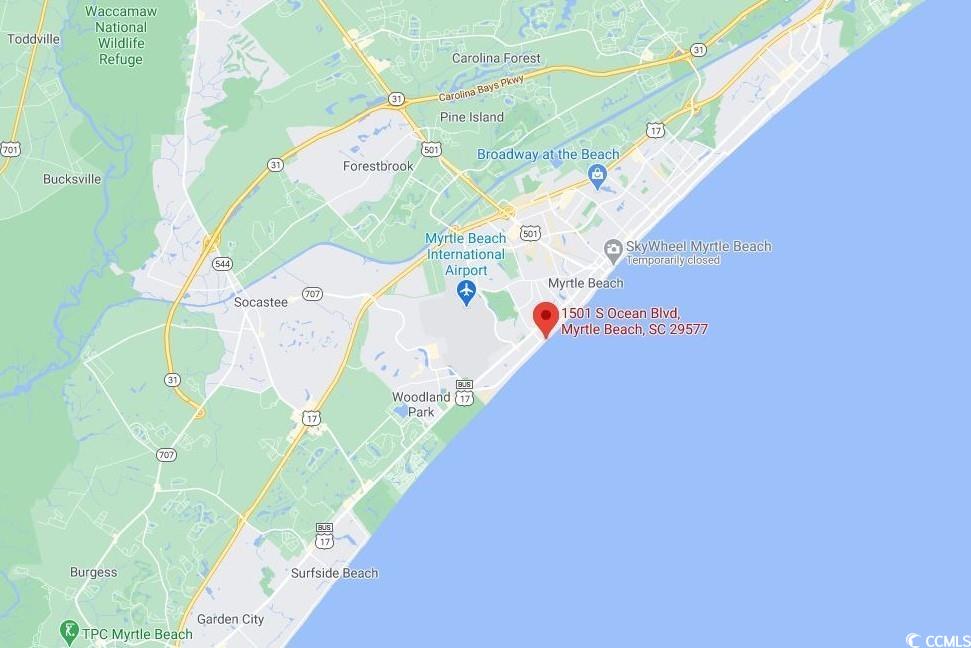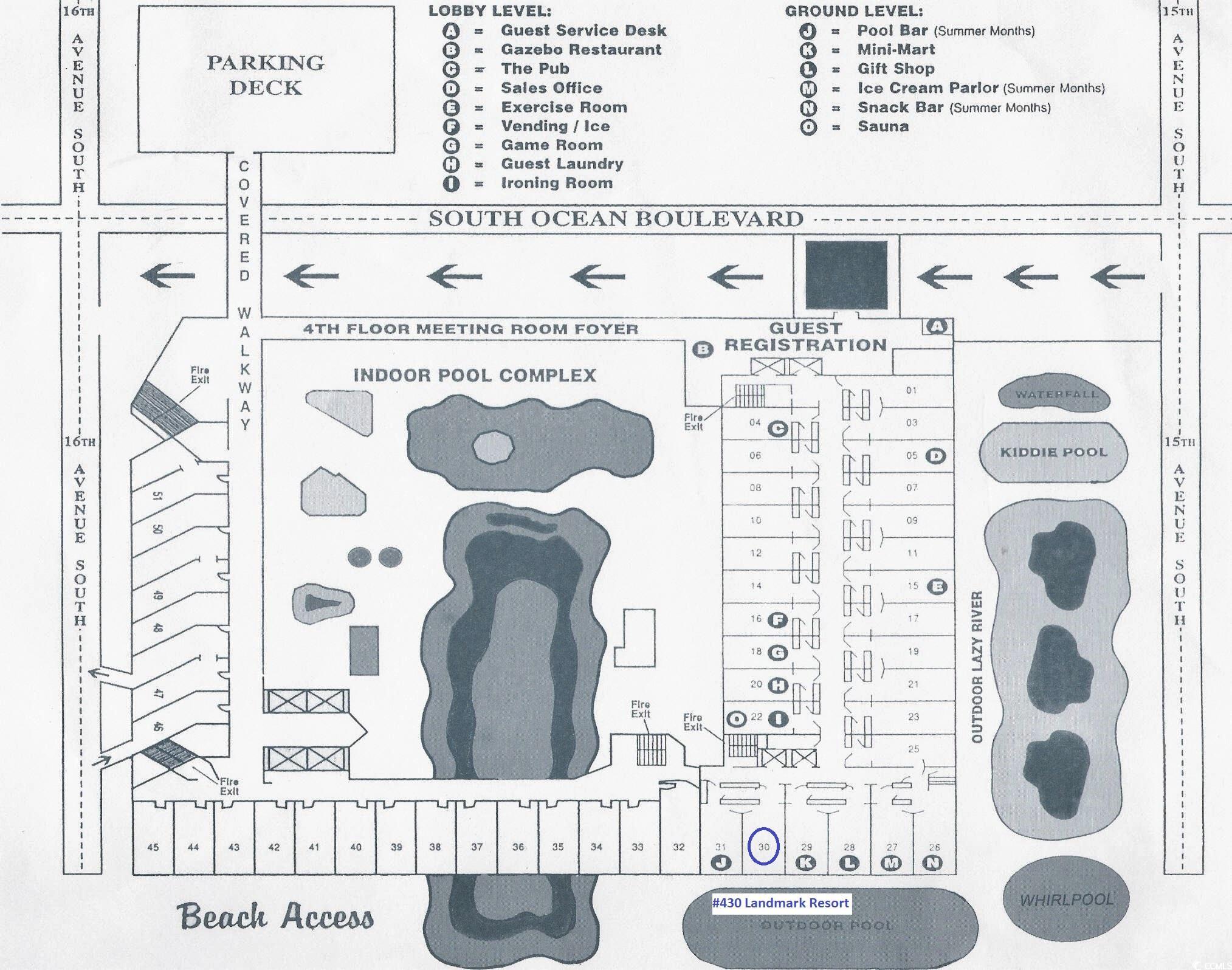 Landmark Resort is an oceanfront building located at 1501 South Ocean Blvd MBSC 29577. GPS 33.673354, -78.900671Courtesy of Re/max Southern Shores Gc - Cell: 843-450-8760