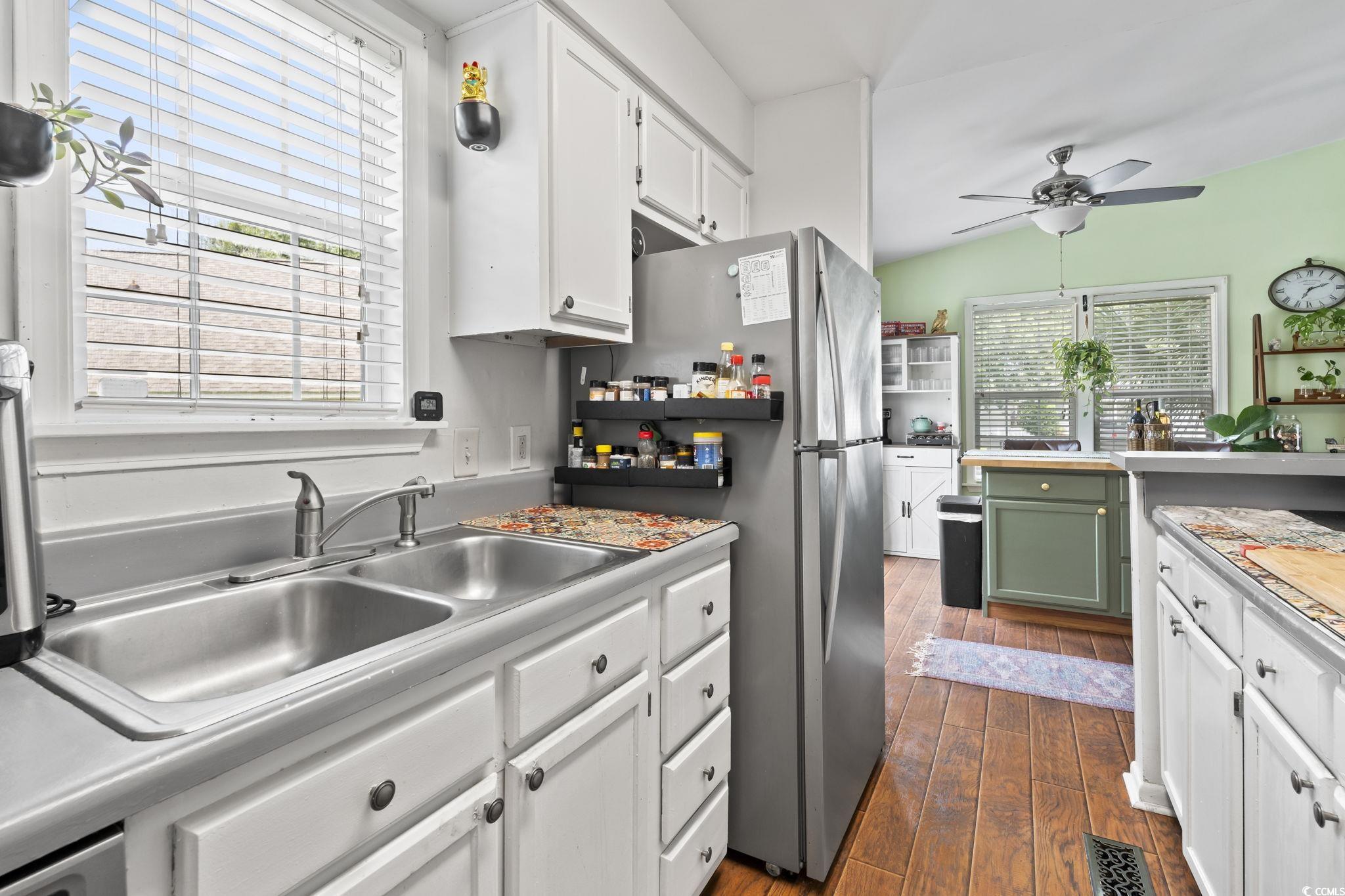 Adorable Coastal Home in Salters Cove - East of Highway 17! This thoughtfully updated single-level home is located in the highly desirable Salters Cove community of Murrells Inlet/Garden City, South Carolina, just a quick golf cart ride to the beach. The bright and spacious living room flows seamlessly into the dining area, creating the perfect space for gatherings. The kitchen offers plenty of cabinetry, modern appliances, and updated fixtures, designed with both function and style in mind. A split-bedroom floor plan ensures comfort and privacy. The primary suite features its own ensuite bath and direct access to the backyard, while two additional bedrooms and a full bath down the hall provide flexible living space for guests, or even a home office. The laundry room is conveniently positioned just off the kitchen and hall. Recent updates include a newer roof, windows, flooring, appliances, fixtures, and lighting. The water heater has been replaced, and the HVAC system was installed this summer, offering peace of mind for years ahead. The fenced backyard is one of the largest in Salters Coveperfect for entertaining, relaxing, or creating your ideal outdoor retreat. Community amenities include a clubhouse, resort-style pool, tennis and pickleball courts, playground, shuffleboard, and a peaceful fishing pond. With area beaches, grocery stores, dining, entertainment, and the iconic Garden City Pier just minutes away, this home offers the best of coastal living in a prime location. Measurements are not guaranteed. Buyer is responsible for verifying.