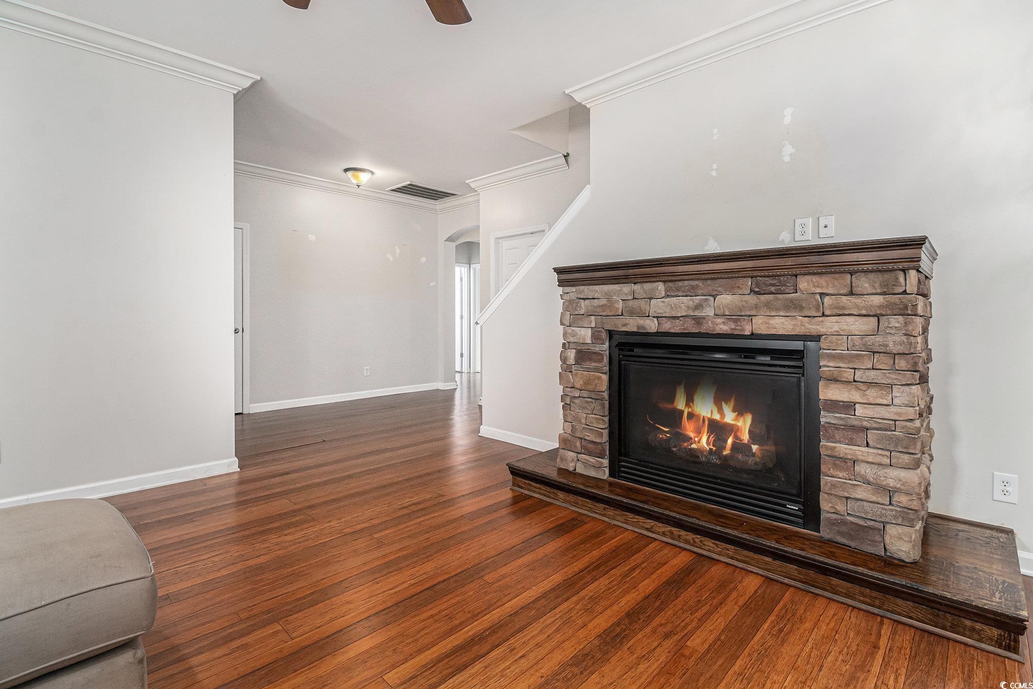 Set on a desirable corner lot, this spacious 4-bedroom, 3-bath home is in the centrally-located Clear Pond community. A dramatic foyer welcomes you with bamboo flooring, custom wainscoting, and a striking wood-accented ceiling. The split floor plan offers privacy and functionality, while the inviting living area features a custom stone gas fireplace for added warmth and charm. The well-appointed kitchen includes a gas range with built-in griddle, a center island, and generous cabinet space. Outdoors, the fenced-in yard provides a private retreat for relaxing or entertaining. Whether you're looking for a primary residence, vacation getaway, or investment opportunity, this home offers the perfect blend of space, style, and convenience. Located in the sought-after Clear Pond community, where residents enjoy amenities like a clubhouse, pools, fitness center, walking trails, and playgrounds. Conveniently close to top-rated schools, restaurants, golf courses, healthcare, and just a short drive to the beach.