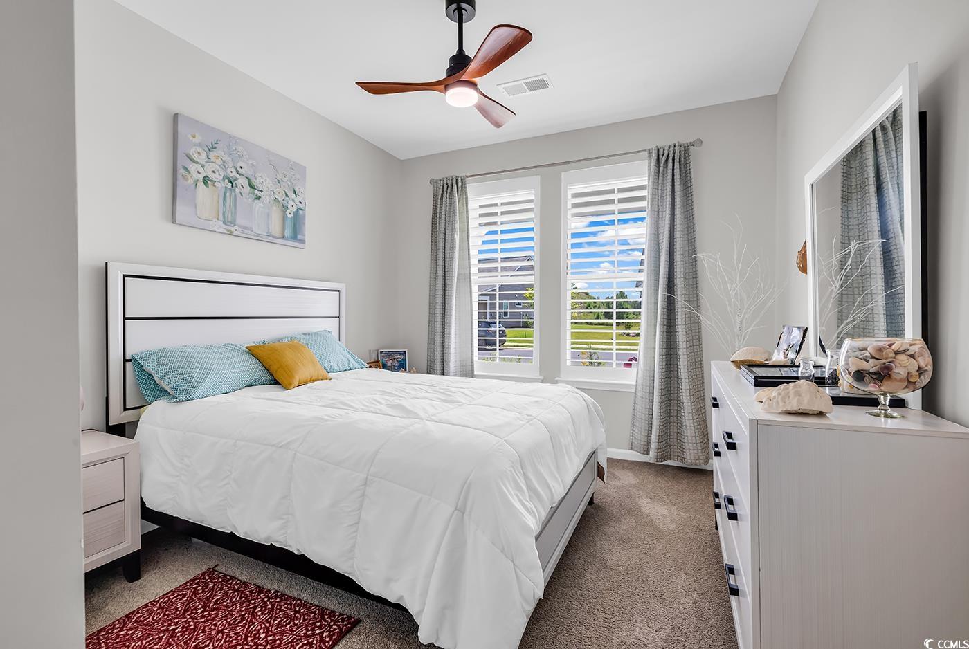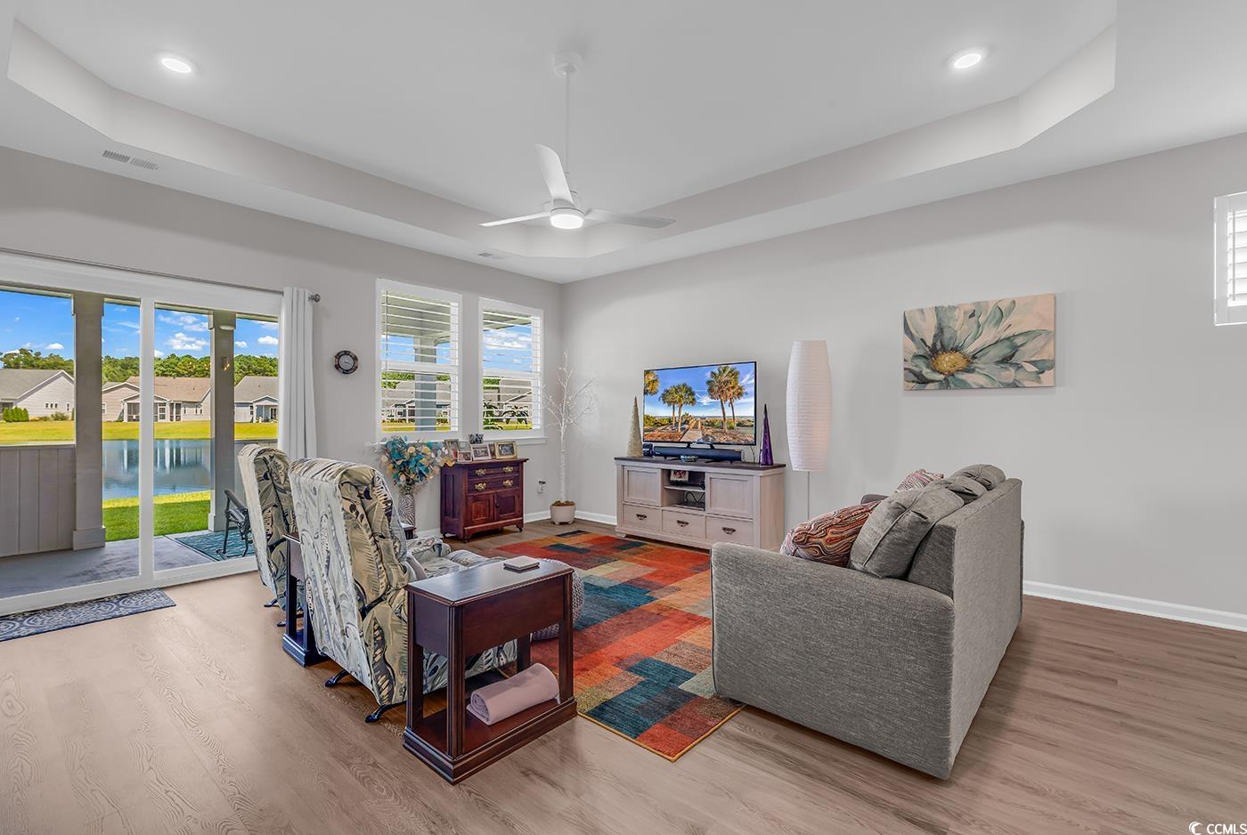 Nestled in the heart of Heritage Park, this stunning ranch-style home boasts a spacious 1,792 square feet of carefully designed living space. With three inviting bedrooms and two elegantly appointed bathrooms, this property offers both comfort and sophistication. The exquisite quartz countertops in the kitchen provide a sleek and modern touch, complemented by high-end appliances like a luxurious refrigerator. Admire the grandeur of tray ceilings enhanced by tasteful ceiling fans, creating an airy atmosphere throughout. Plantation shutters add a refined element to each room, while the master closet organizer ensures everything stays perfectly in place. Step outside to your tranquil rear patio overlooking a serene pond, ideal for sipping morning coffee or evening cocktails. The community pool and pickleball courts are just a stone's throw away, while a quick drive will lead you to sun-kissed beaches and a plethora of dining options and attractions. Additional conveniences, including a custom garage storage system, a whole home water filter, and bathroom fan timers, make this residence a delightful retreat. Experience the charm and convenience of this remarkable home in Longs.