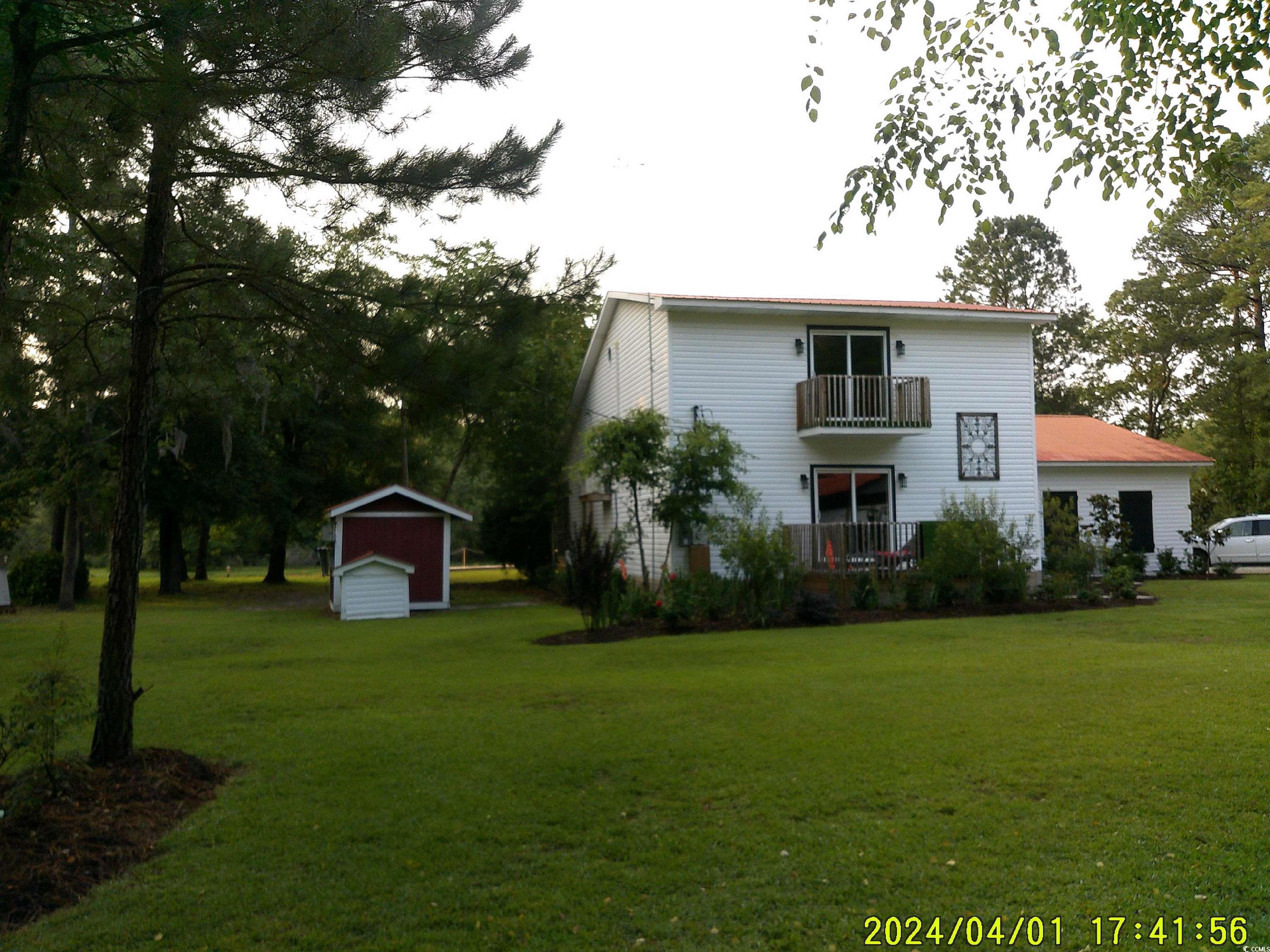 Riverfront home in Horry County. Peaceful and private setting. Open floor plan with high ceilings and wide moldings, tile floor on the main level, and unobstructed views. Almost an acre (.86) with a large carport, garage, and a barn with 220v electricity for all the toys. Screen porch and decks to enjoy outside living.