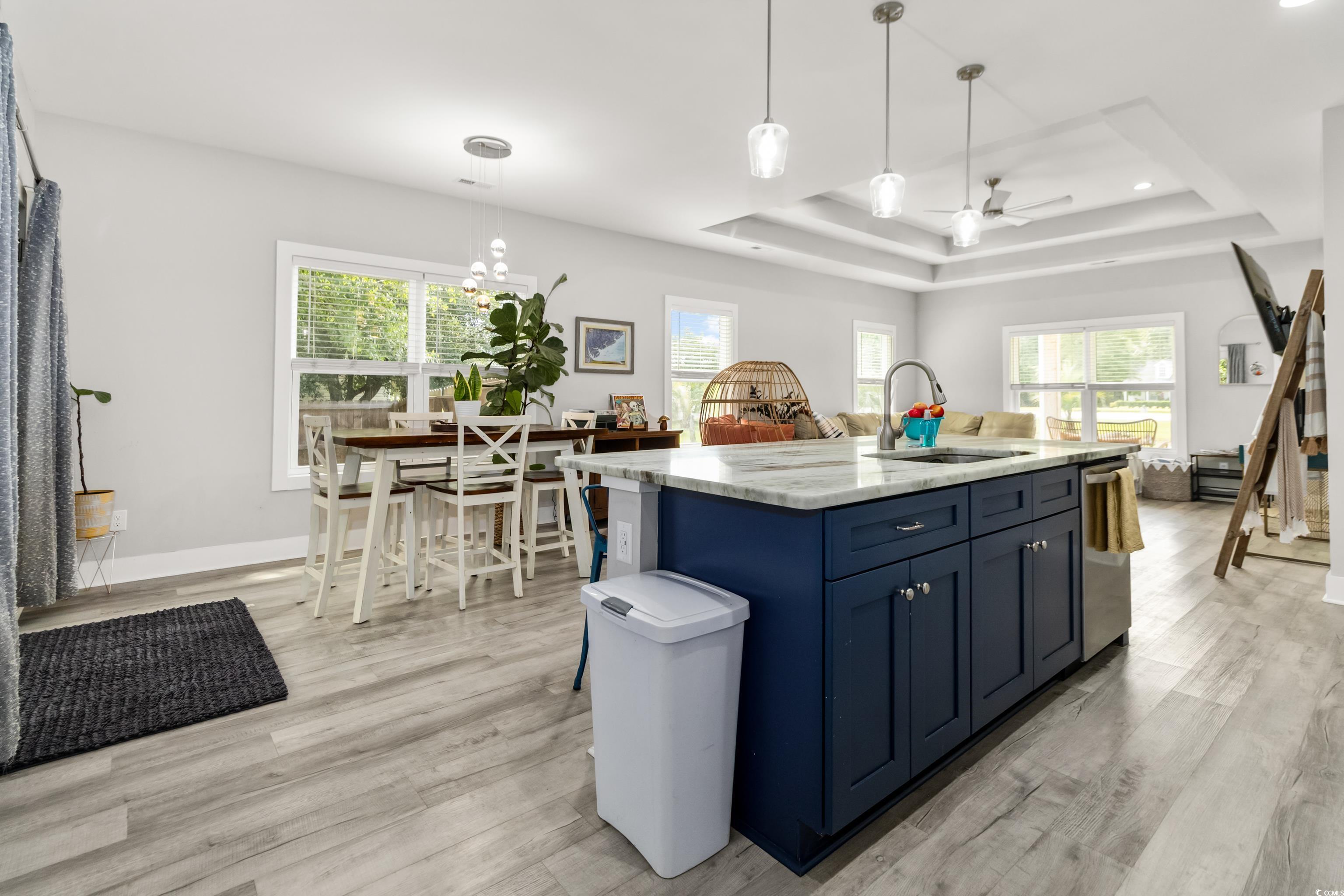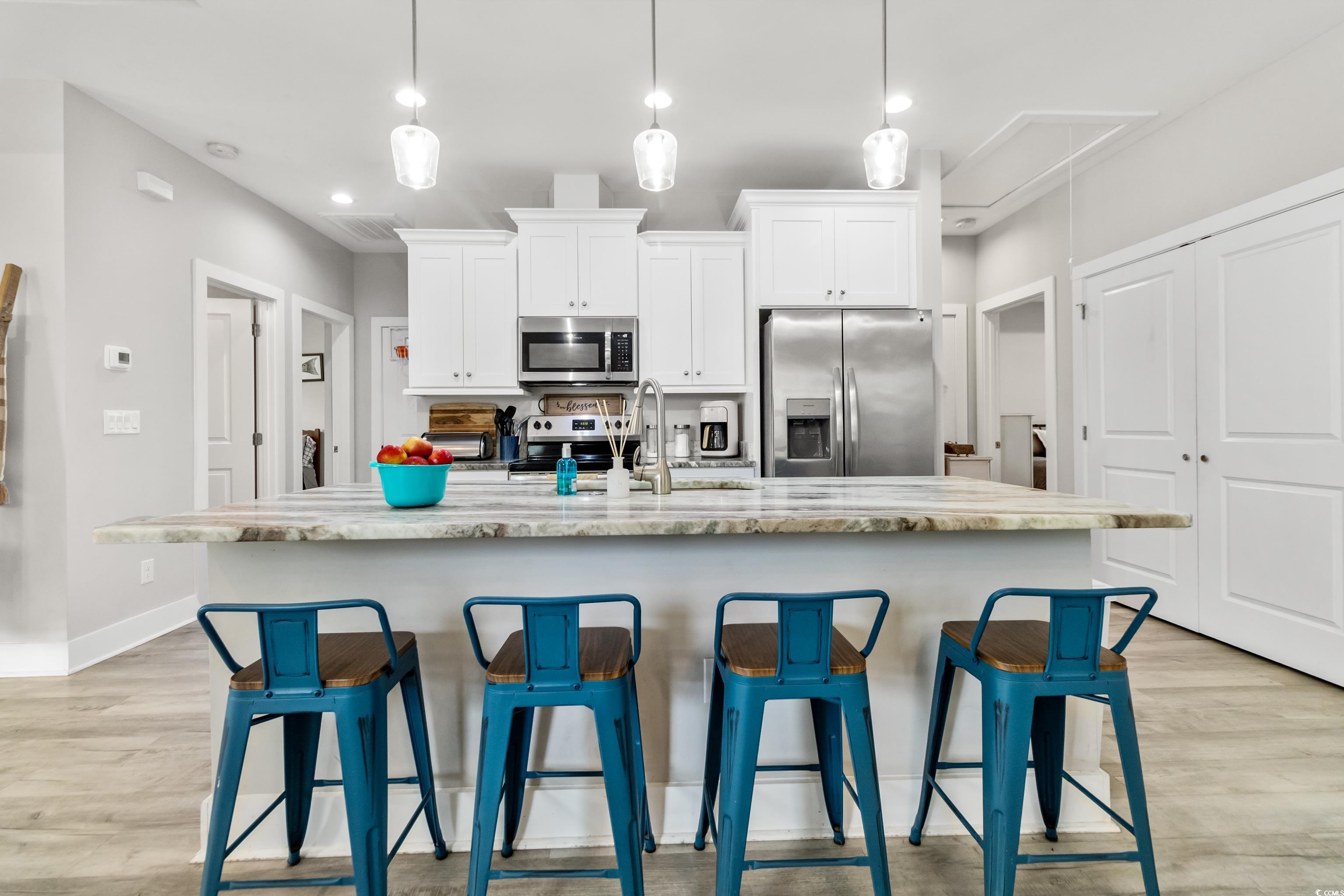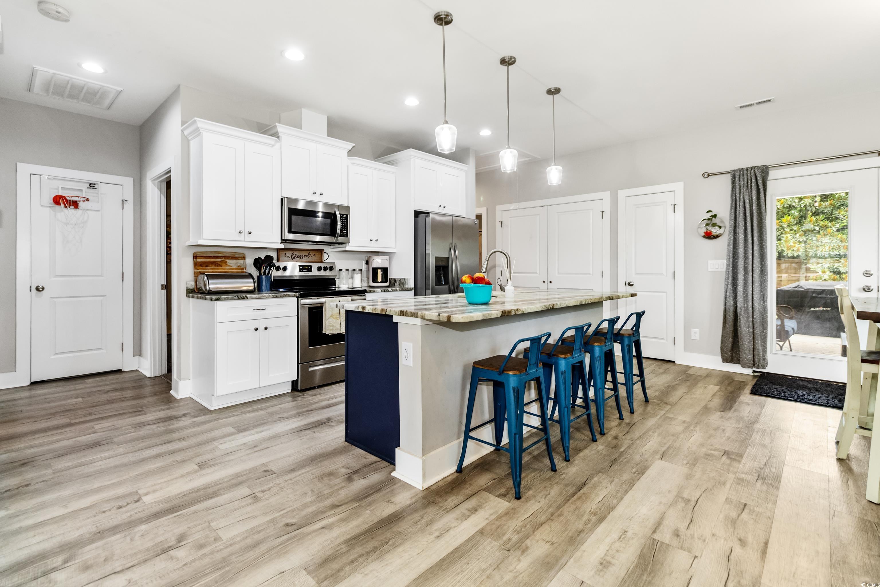 Welcome to this beautiful home located in the vibrant city of Conway, South Carolina! Perfectly situated just minutes from downtown Conway, youll enjoy fantastic dining, shopping, and the scenic Waccamaw River and Riverwalk, making this location ideal for both leisure and convenience. This charming residence features three bedrooms and two bathrooms, all designed with an open floor plan thats perfect for entertaining guests. The spacious family room boasts a double tray ceiling and LVP flooring, seamlessly connected to the kitchen area. The kitchen is a chefs dream, showcasing stunning Savannah Brown granite countertops, stainless steel appliances, and pendant lighting over the island ideal for casual dining and gatherings. The primary bedroom offers a tranquil retreat with a vaulted ceiling, plush carpet, ceiling fan, and a generous walk-in closet. The primary bath is equipped with a double vanity topped with Savannah Brown granite, and a shower with a seat, providing a spa-like feel. Enjoy outdoor living on the fenced backyard, perfect for entertaining or relaxing on the covered porch. The property is served by public water and sewer, making maintenance easy. This home is approximately 30 minutes from the beaches, making it an excellent investment opportunity for Airbnb, VRBO, or a relaxing retirement close to the coast. Seller rents this as a airbnb and is rented through November 2025. Whether youre seeking a family-friendly residence, a vacation rental, or a peaceful place to settle in, this Conway home offers the perfect blend of comfort, location, and potential.