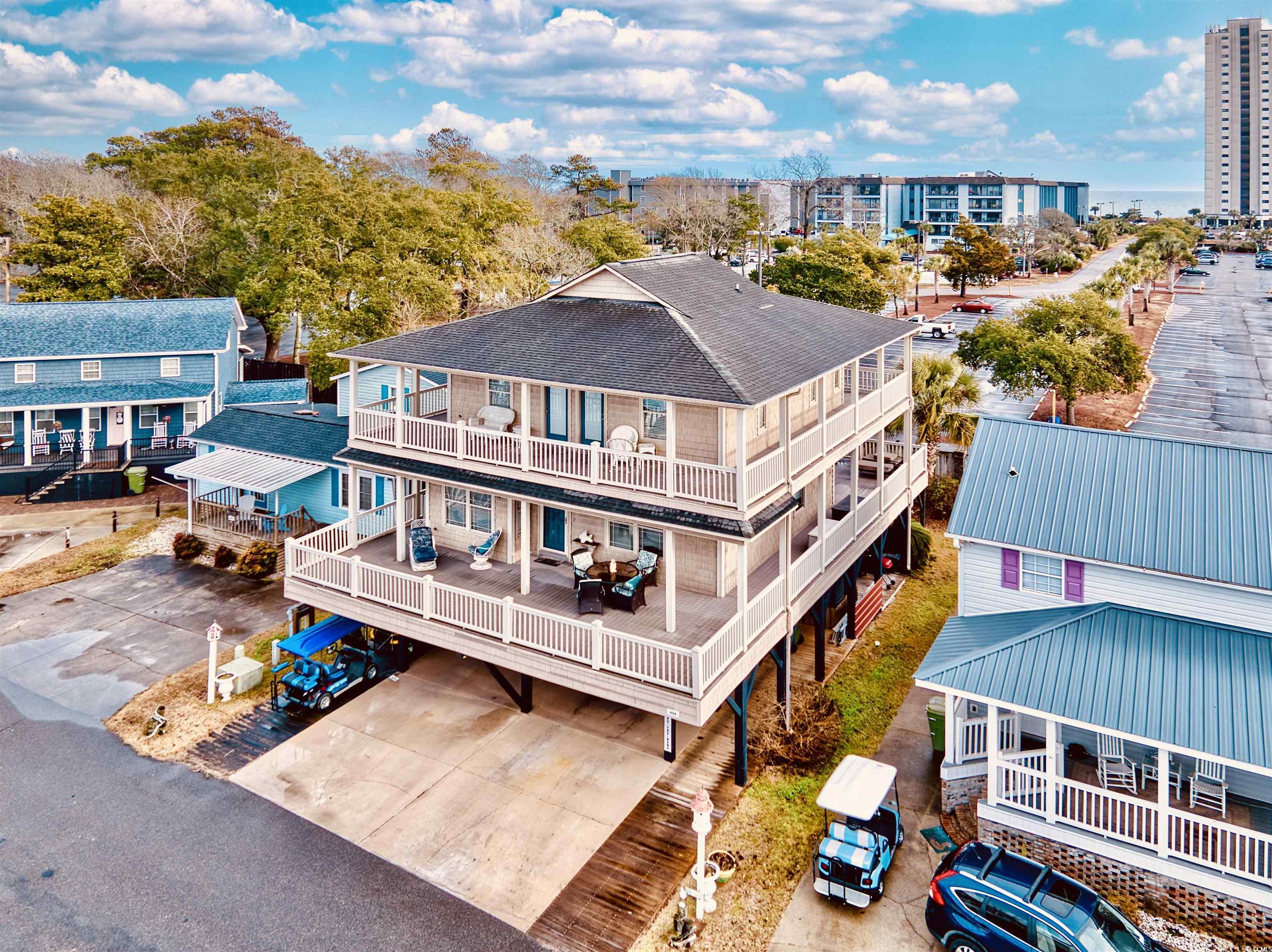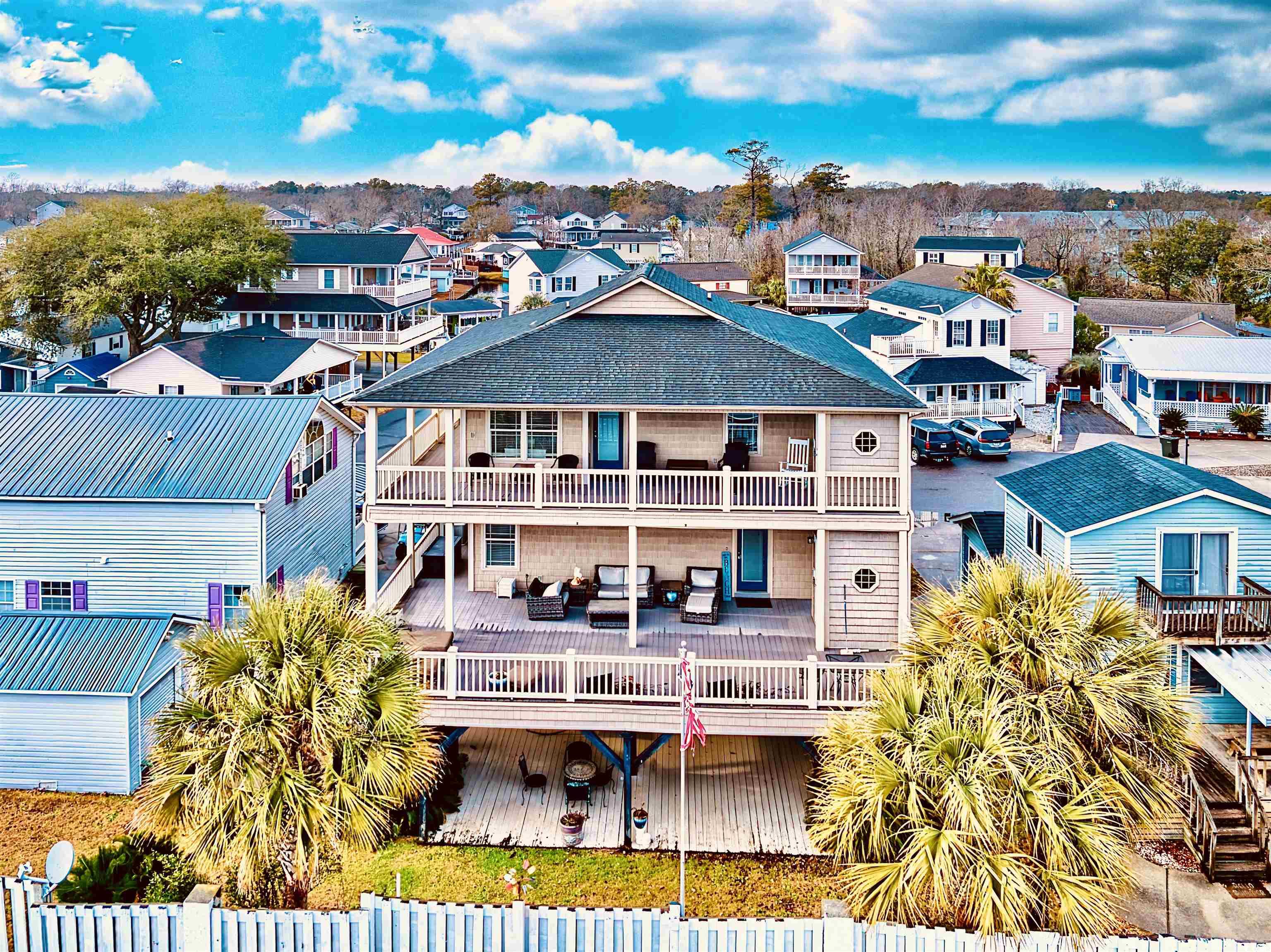 CUSTOM BUILT OCEAN VIEW KEY WEST BEACH HOUSE WITH WRAPAROUND PORCH AND ELEVATOR. THIS VERY UNIQUE HOME BOASTS OF 5 SPACIOUS BEDROOMS, THREE FULL BATHROOMS AND ONE HALF BATH, COMPOSITE DECKING AND HEAVY DUTY VINYL SHAKE SIDING ON OVERSIZED LOT IN OCEAN LAKES. LOCATED ON PEACEFUL, SEMI-PRIVATE CUL-DE-SAC WITH VERY LOW TRAFFIC, THIS HOME HAS IT ALL INCLUDING, GRANITE COUNTERTOPS, STAINLESS STEEL APPLIANCES, LVP FLOORING WITH LARGE PRIMARY BEDROOM AND ENSUITE ON THE MAIN LEVEL AND 4 SPACIOUS BEDROOMS ON TOP LEVEL. BEAUTIFUL HOME INSIDE AND OUT WITH WONDERFUL VIEWS OF THE BLUE ATLANTIC! BEING SOLD FULLY FURNISHED... GRANDFATHER CLOCK NOT INCLUDED. NOW SHOWING! Measurements are not guaranteed and are the responsibility of buyers and/or their agent. There is no HOA in Ocean Lakes, each home is located on leased land with yearly lease, which is payed in two semiannual payments due in January and July. Amenities abound in Ocean Lakes' gated community and include almost a mile of white sand beach, 24 hour security, 7 fishing lakes, free trash pick-up, free cable TV, indoor/outdoor swimming pools, large water park/slides, lazy river, kid's splash zone, new dog park, new beachside coffee house and ice cream bar, playgrounds, full size basketball courts, miniature golf, fire pit, corn hole, shuffle board, horseshoes, ping-pong, Sandy's Down-under skatepark, recreation building, arcade, general store, golf cart rentals, Sandys Meet & Eat restaurant and more!