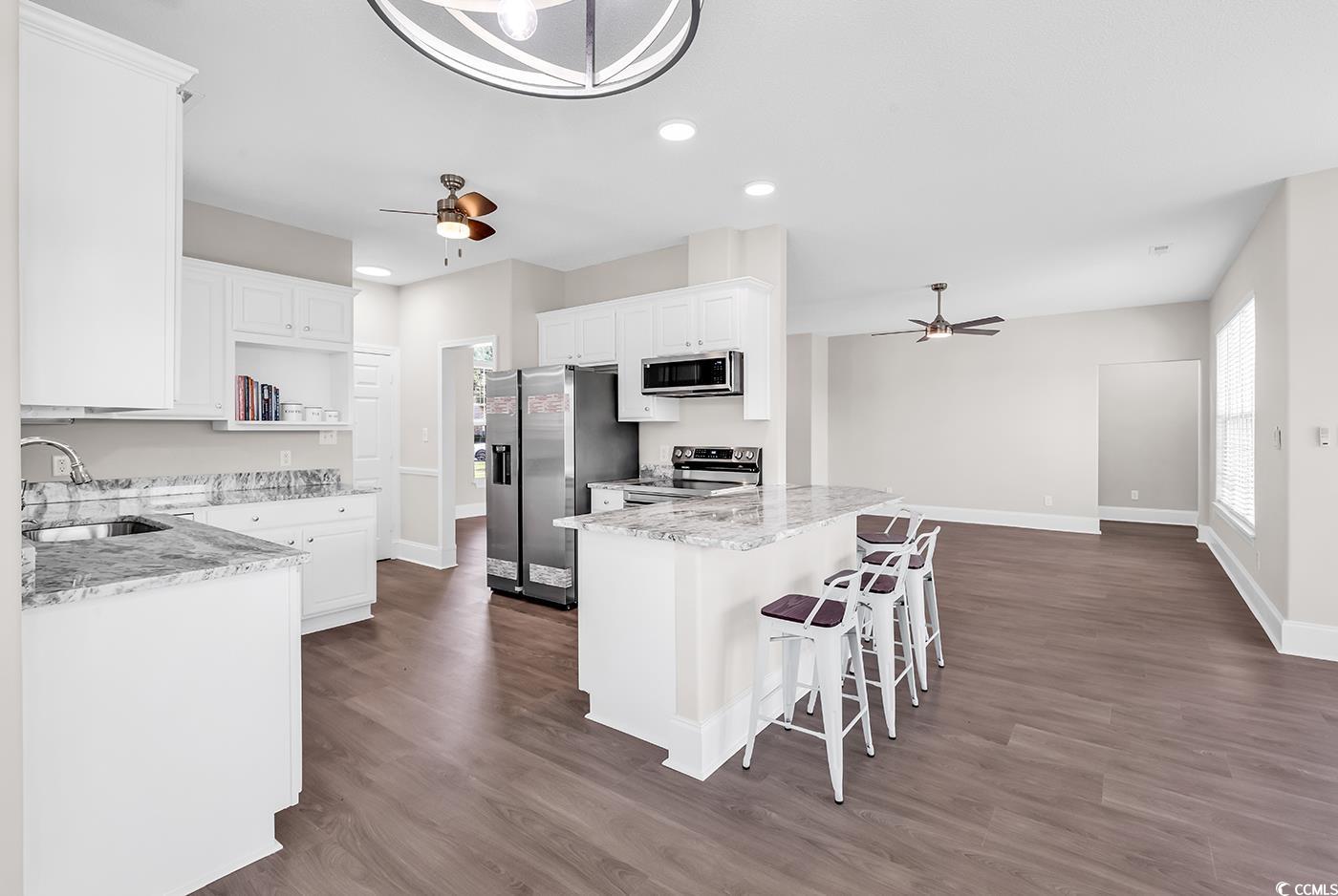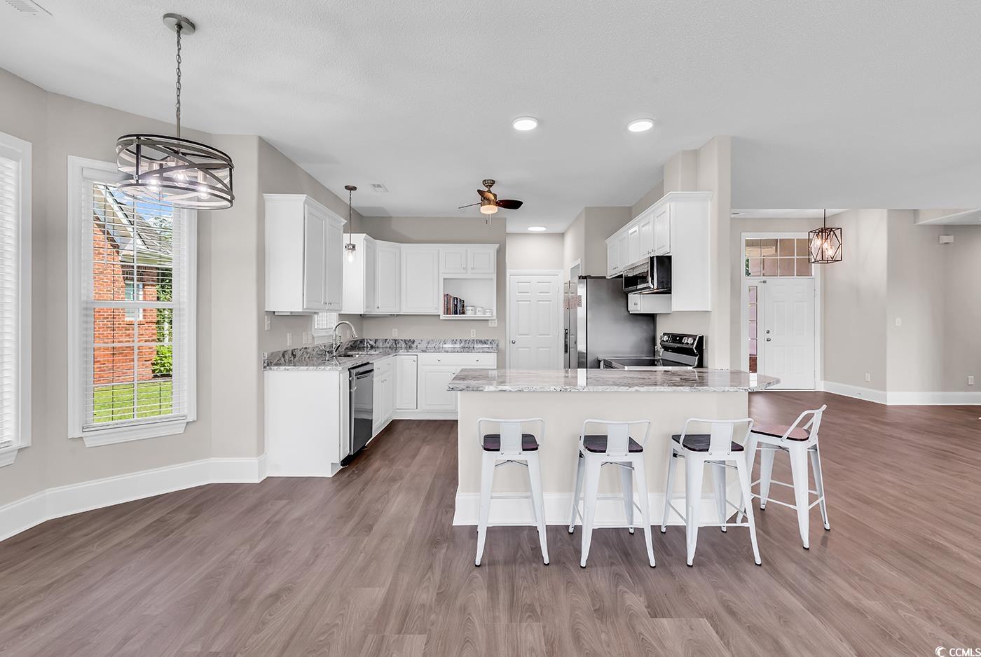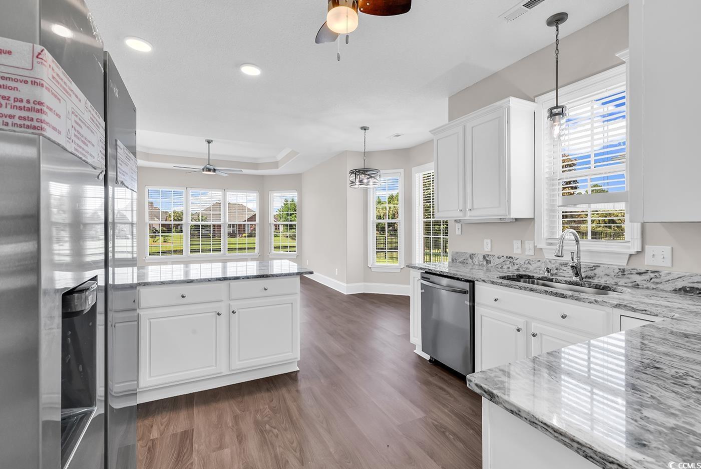 ALL NEW, 4 Bedroom, 2 baths, water view single level, 2 car garage, corner lot, large yard. This home has been renovated from floor to ceiling, wall to wall and entire outside. New roof, gutters, HVAC, all Appliances are new. Granite countertops, all new flooring, entire home freshly painted, window treatments, LED lights throughout entire home, ceiling fans, entire lawn re-sodded and much, much moore, ask for full list of upgrades. As you walk through the front door, the home welcomes you in with bright open feeling with beautiful flooring leading through the home and the view of the lake. The large living Room opens into the kitchen with granite countertops, a breakfast bar all with views of the lake. The kitchen has plenty of counterspace, abundance of cabinets and kitchen opens to the formal dining room with wonderful views of the yard and lake. The private main bedroom has plenty of room for large furniture, a sitting area and views of the backyard and lake. Off the Main Bedroom is your private main bath with double sink, open space and a large walk-in closet. The other three bedrooms are all comfortably sized rooms with plenty of closet space. The laundry room is off the kitchen and leads into the garage. This home is in better than new condition and is ready for you to move in. All measurements are approximate and not guaranteed; the buyer is responsible for verification. The home is near the heart of Myrtle Beach, close to shopping, dining, golf courses and everything the Grand Strand has to offer. Don't miss the opportunity to see this All New beautiful home. Schedule your showing today or contact the listing agent for any questions.