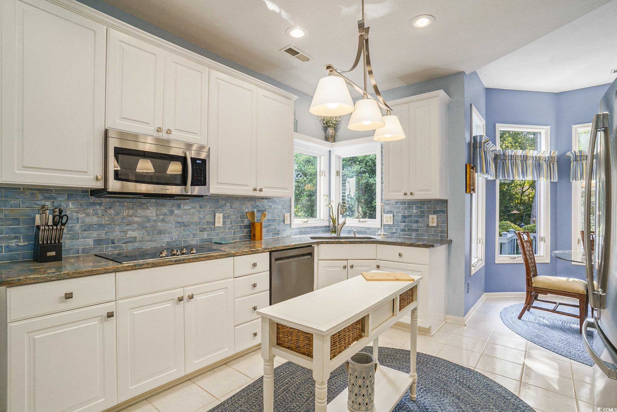 Nicely updated 3 bedroom 2.5 bath Ranch home. The kitchen has updated appliances, sleek countertops, and nice cabinet space. The master bedroom has a separate entrance through the screen porch. Large Carolina room overlooks the rear deck with nicely landscaped and private back yard. Spacious 2 car garage. Updated gas logs. Located in the very desirable Tidewater Plantation, an upscale residential community in the Cherry Grove section of North Myrtle Beach. It is known for its scenic views, top-rated golf course, considered one of the top public courses in South Carolina, and close proximity to the Intracoastal Waterway and the Atlantic Ocean. Amenities include multiple swimming pools, Tennis and pickleball courts, a fitness center and an exclusive ocean club. Private wooded lot on a quiet cul-de-sac. Tidewater is a gated community with 24 hr. security. Furniture conveys with the exception of the granite top on the coffee table in the Carolina room.