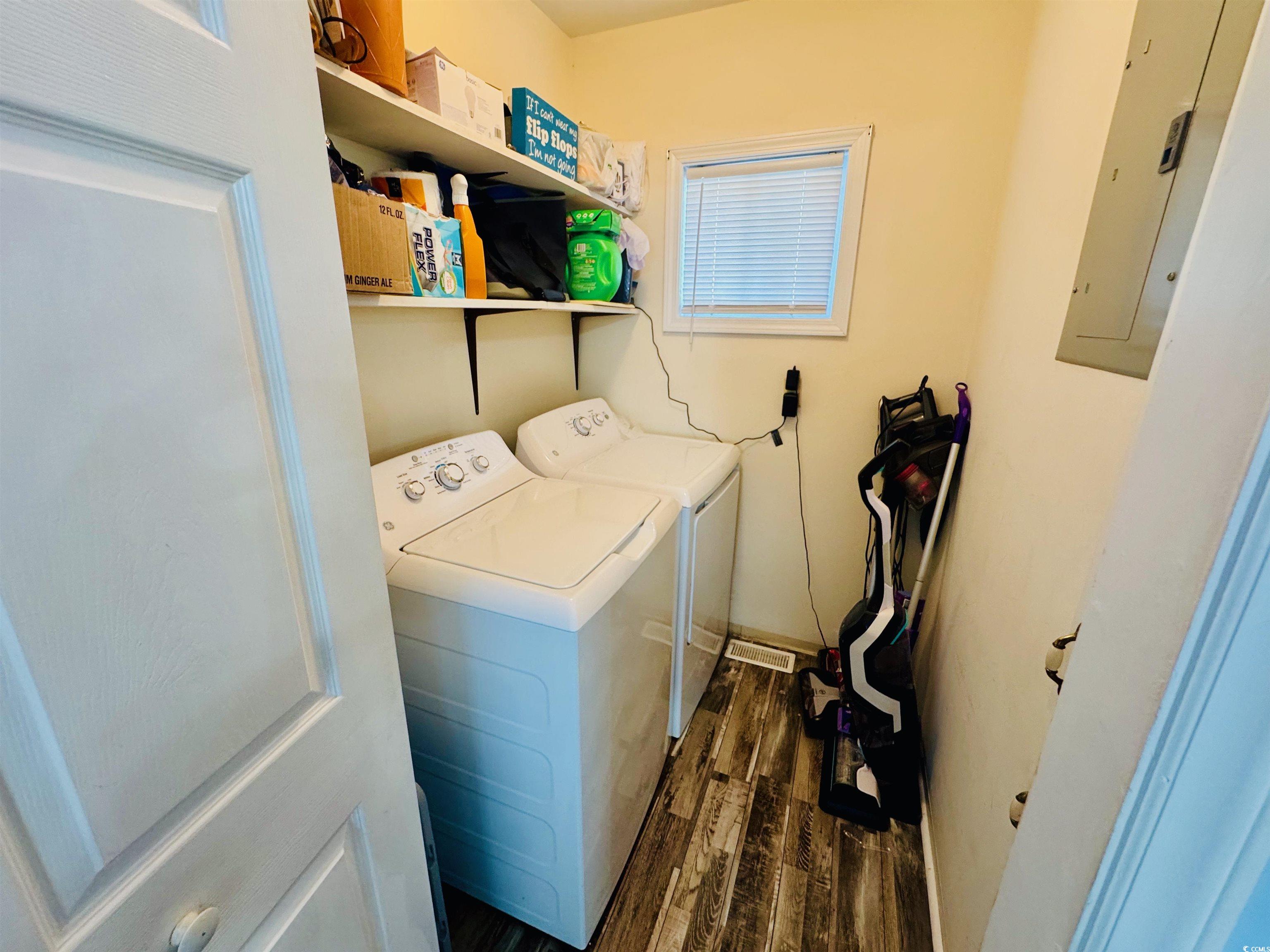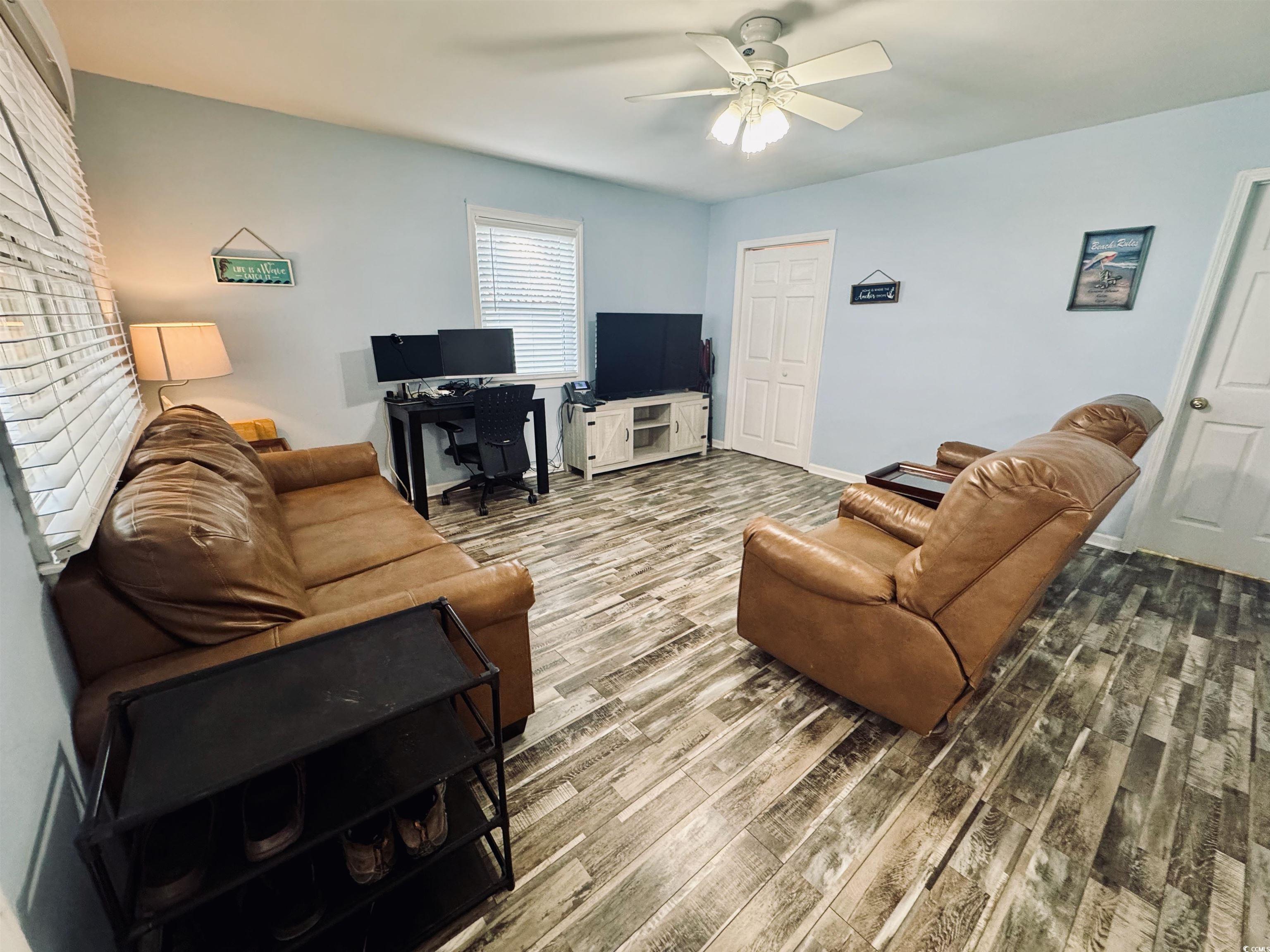 WELL CONSTRUCTED STICKBUILT BEACH HOUSE CENTRALLY LOCATED IN THE HEART OF OCEAN LAKES. Home features an open split floor plan with a large family/living room, spacious kitchen, utility/laundry room and excellent outdoor space with a big covered porch, outdoor shower w/ hot water and a separate water heater and a detached garage to store your golf cart and all your beach gear. Excellent home for full-time beach living or a second family home with great rental potential. New HVAC installed in 2024. Metal roof installed in 2016. Sold fully furnished minus owner's personal items, computers, Panther's bar table and stools, on counter ice machine and golf cart. Now Showing! There is no HOA in Ocean Lakes however, the house is located on leased land, which is payed in two semiannual payments in January and July. Amenities abound in Ocean Lakes' gated community and include one mile of pristine white sand beach, 24 hour security, trash pick-up, indoor/outdoor swimming pools, new large water park/slides, 2 full size basketball courts, dog park, miniature golf, fire pit, shuffle board, corn hole, horseshoes, ping-pong, Sandy's Down-under skatepark, recreation building, arcade, coffee house, general store, golf cart rentals, Sandy's Meet & Eat diner and more!
