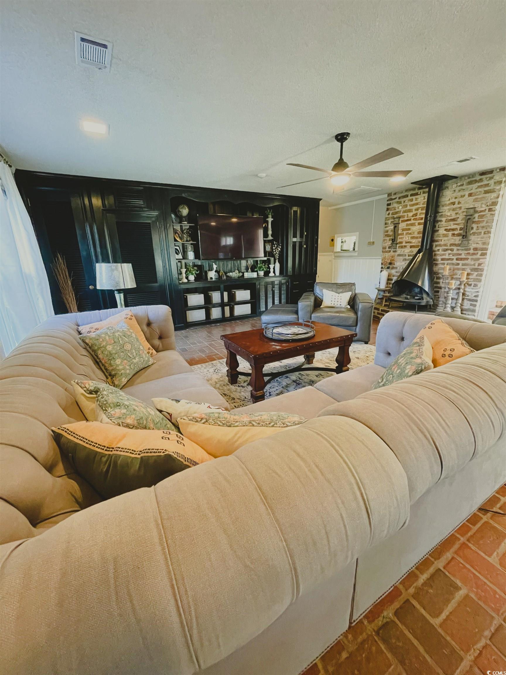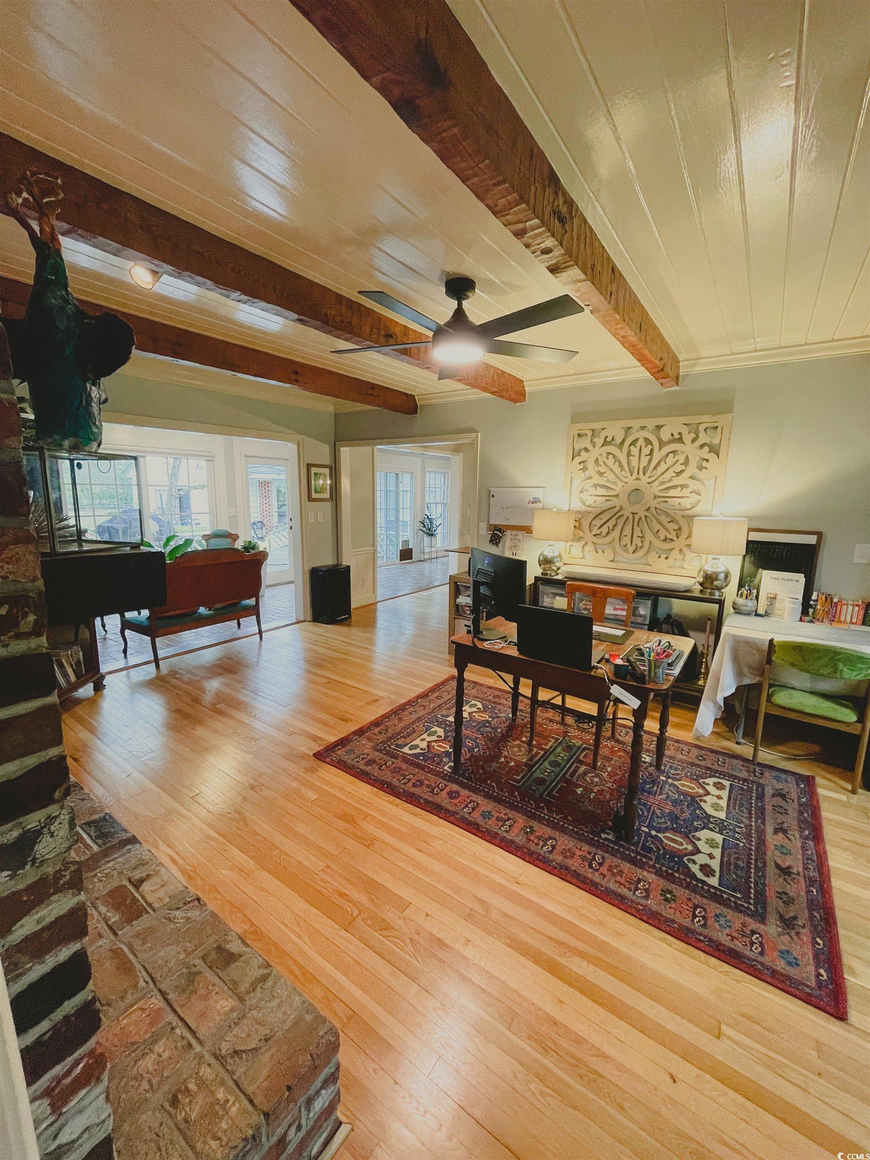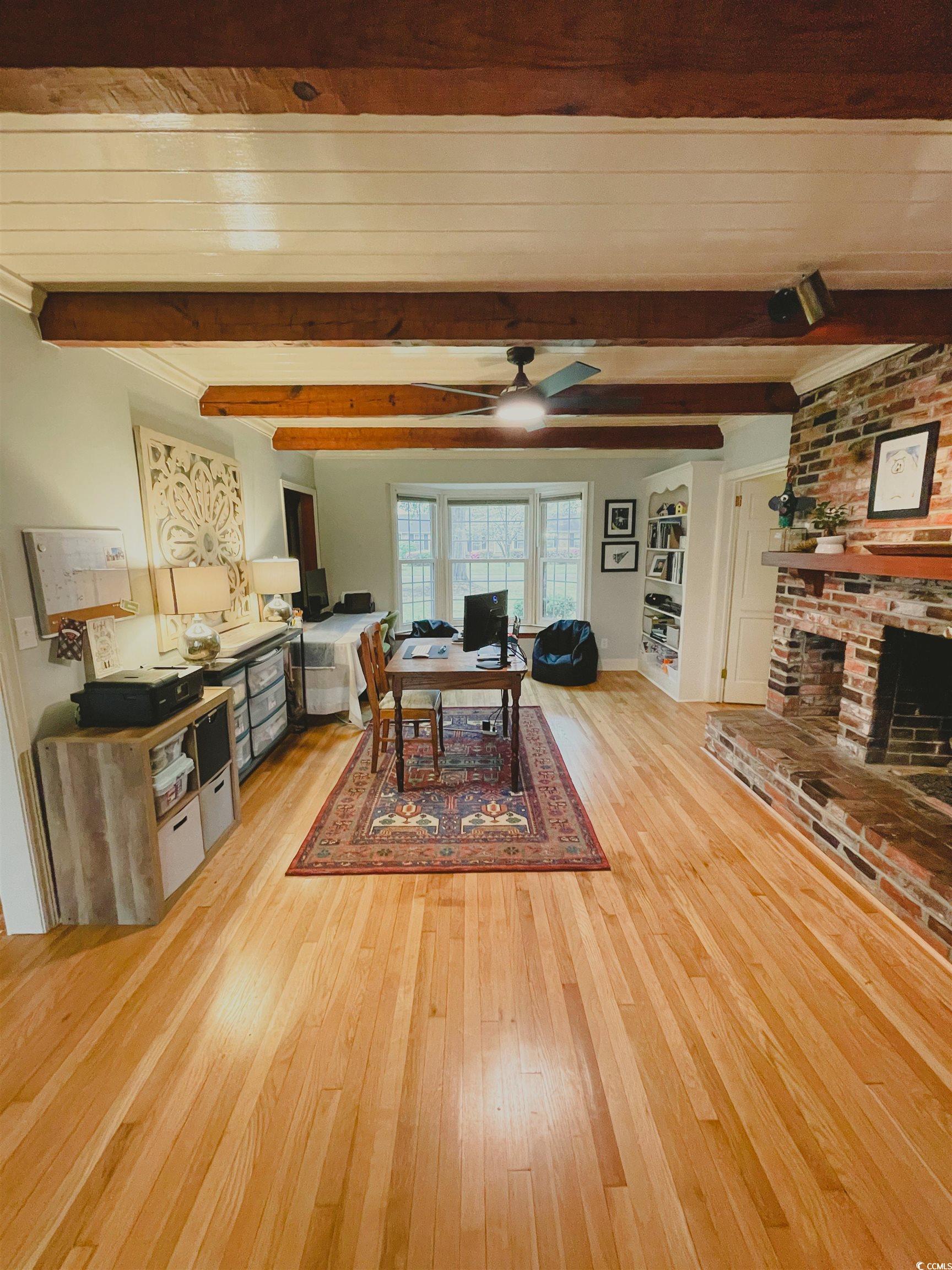 LivingRoom: BeamedCeilings, CeilingFans, Fireplace