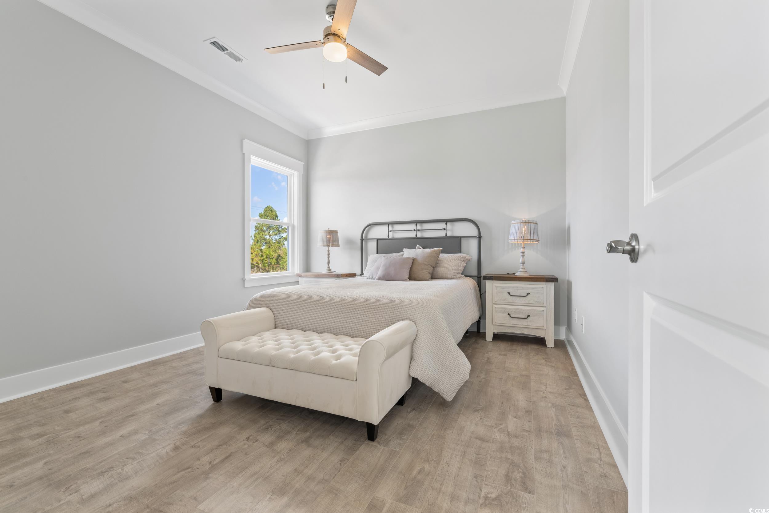 Discover Watertower Estates - North Myrtle Beach Living at Its Finest. Welcome to Watertower Estates, a sought-after community in the heart of North Myrtle Beach, where coastal charm meets modern living. This beautifully designed 5-bedroom, 3.5-bath townhome offers the perfect combination of style, functionality, and investment appeal. True Townhome Ownership - Youll own the land beneath your home, and short-term rentals are permitted, offering flexibility whether you're looking for a full-time residence, vacation getaway, or income property. As a bonus, this is a natural gas community, something rarely found in the area. Step inside and youre greeted by high 9-foot ceilings and elegant luxury vinyl plank flooring. Crown molding upgraded 3"" window trim, and 5"" baseboards add a touch of sophistication throughout the home. The open concept living and dining area flows effortlessly into a stunning kitchen, complete with granite countertops, tile backsplash, stainless steel appliances (including refrigerator), a large breakfast island, and a generous walk-in pantry. The main floor also features a half bath, a spacious laundry room, and access to a finished 1-car garagecomplete with painted walls and hung drywall for a polished look. Upstairs, retreat to a luxurious owners suite featuring a sitting area, double vanity, private water closet, and a tiled walk-in shower. Start your day with coffee on the private balcony overlooking the tranquil pond. Two additional bedrooms share a Jack-and-Jill bathroomperfect for guests or family members. Residents enjoy low HOA fees that include access to the community pool, pickle ball courts, golf simulator, clubhouse, and scenic lakes. Just minutes from local shopping, top-rated restaurants, golf, and the beachand only a short drive to Barefoot Landingthis location truly has it all. Whether you're seeking a forever home or a smart investment, this townhome delivers on every level. Schedule your showing today and experience life in one of North Myrtle Beachs most desirable neighborhoods! PHOTOS ARE OF OUR MODEL, NOT REPRESENTATIVE OF HOMES CURRENTLY UNDER CONSTRUCTION!! THERE ARE MANY PLANS AND FINISHES TO CHOOSE FROM.