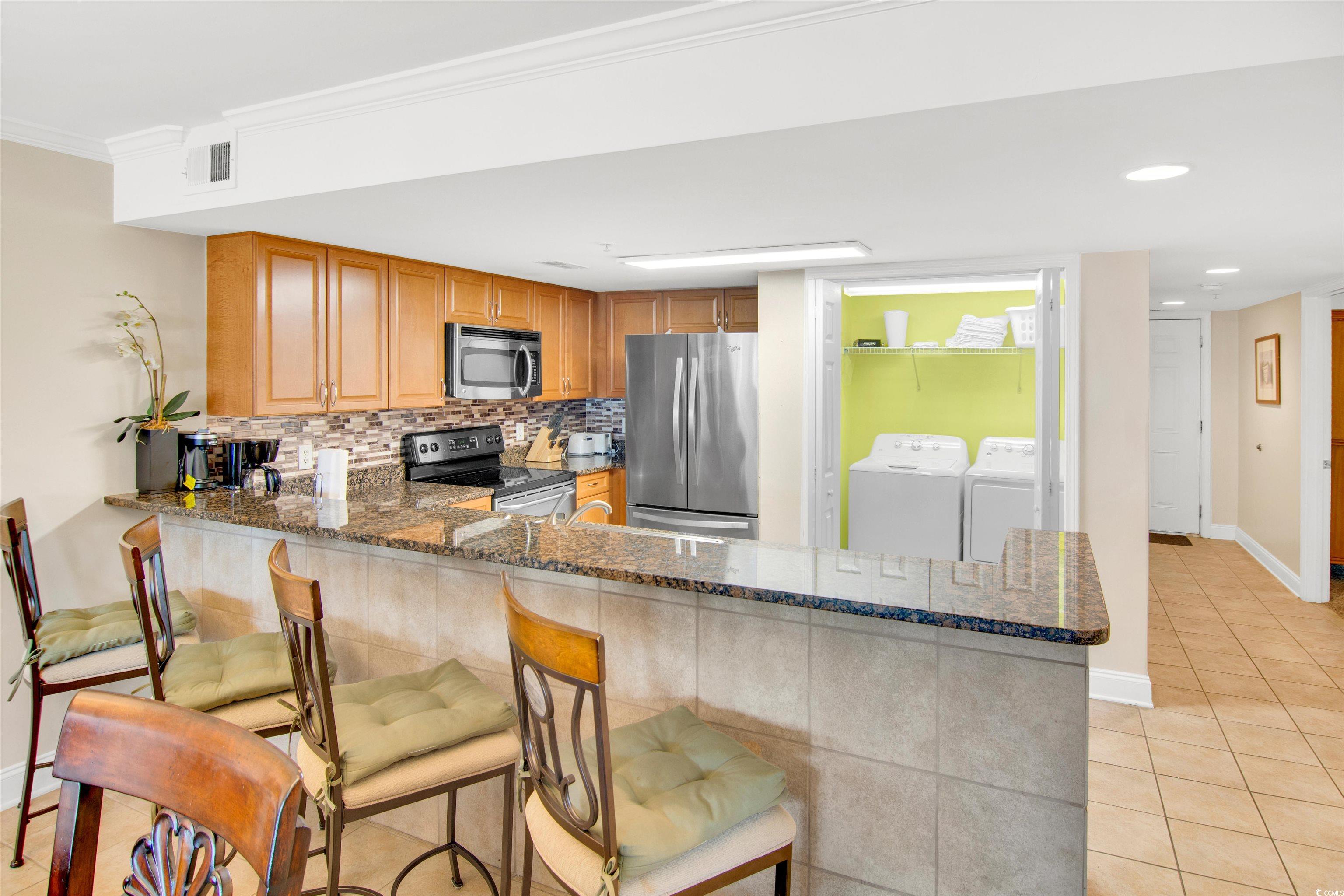 I am pleased to share an extra benefit of this condo! Seller covering HOA fees through March 2026, with an acceptable contract by December 31st. 2025. When you tell your friends you got this great deal in the Windy Hill section with an Ocean view, they will want one too! This is an exceptional opportunity to acquire a distinguished property in North Myrtle Beach. This second-floor condo offers breathtaking views of marshlands, wetlands, and the ocean from its balcony, perfect for sunrises and sunsets. Its prime location, directly across from North Beach Resort, establishes it as one of the most desirable addresses in North Myrtle Beach, making it ideal as a primary residence, a second home, or a lucrative vacation rental. Ocean Marsh Villas is a quiet marsh-front property featuring only 36 units and two elevators, nestled amidst beautiful live oaks, and just a short walk from the beach. The meticulously maintained grounds and surprising amenities, including a marsh-front pool, hot tub, kiddie pool, picnic tables, and a grill, enhance the property's appeal. The marsh-front environment also provides opportunities for crabbing, fishing for flounder, and observing local wildlife. The interior of this unit has been thoughtfully updated and is truly turn-key. With three bedrooms with shelved closets and three full baths, the open floor plan creates a seamless flow, ideal for both entertaining and quiet enjoyment. The fully equipped kitchen will indulge the chef in everyone, exhibiting modern granite countertops, sleek stainless steel appliances, and ample cabinet space to keep your supplies stocked during your stay. Striking updates throughout the unit include a master bath walk-in shower with a barn door, upgraded tile flooring, updated lighting, a new washer and dryer, and a trundle bed giving extra room for guests. Golf carts and pets are permitted for owners, a rare find in the current market, and almost everything in this stunning unit conveys, allowing for an immediate enjoyment of the coastal lifestyle. This property in the Windy Hill section offers unparalleled accessibility to the oceanfront on the East and North Myrtle Beach's attractions. You can easily walk to dinner at Joe's Bar and Grill, Cracker Barrel, or 21 Main, and savor some of the finest steaks and seafood the coastline has to offer. Additionally, you'll be close to shows like The South's Grandest Christmas Show at The Alabama Theater and shops at Barefoot Landing, such as Tara Grinna and Ron Johns' surf shop. Please schedule a showing at your earliest convenience to fully appreciate this incredible property, its expansive views, and its unbeatable access to shopping and dining, and of course, the beautiful ocean!