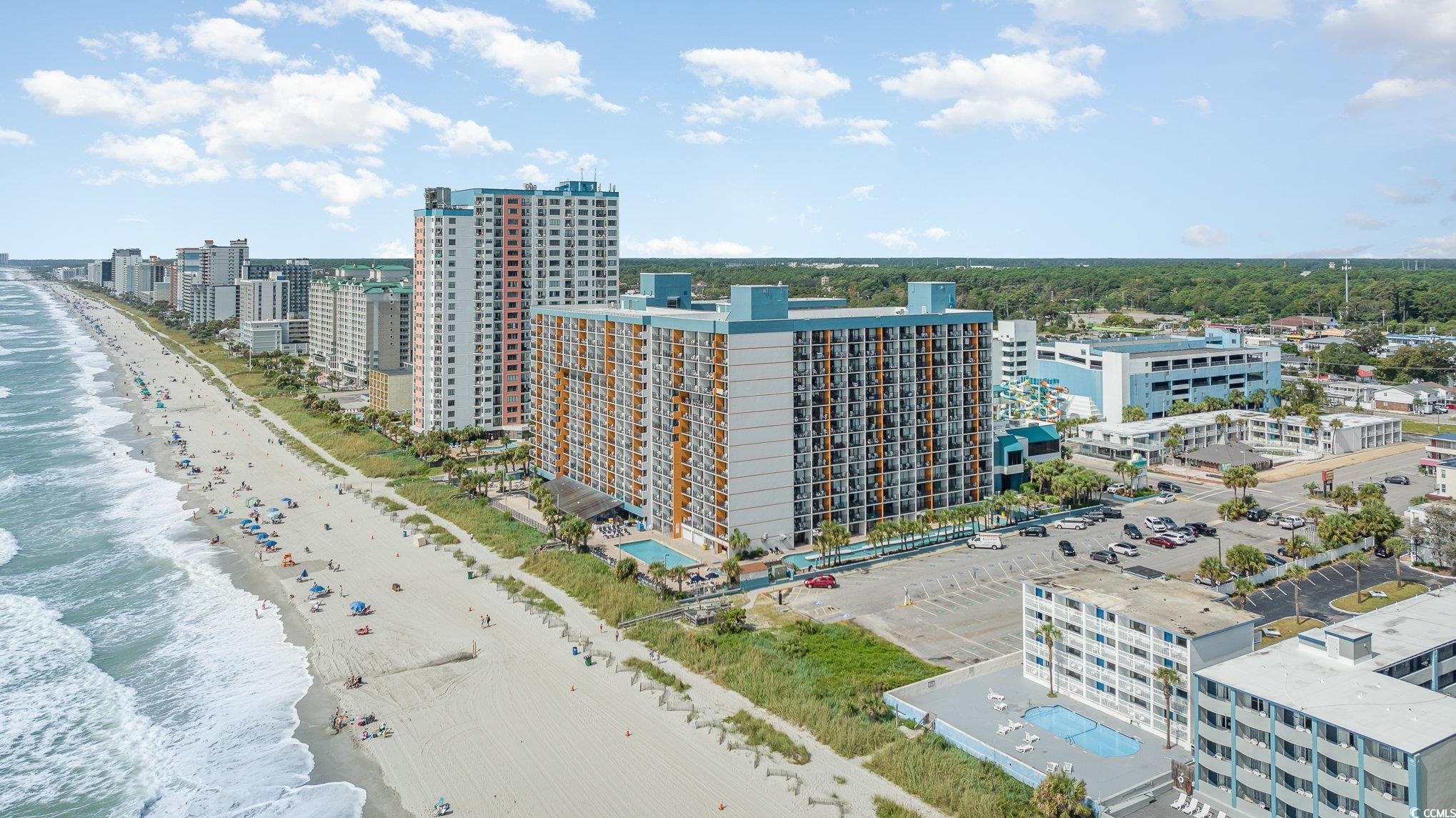 Welcome to this exquisite efficiency unit at the renowned Landmark Resort in Myrtle Beach! This stunning property offers a turnkey experience for new owners, coming fully furnished and ready for immediate enjoyment or rental. TInside the unit you will find a well-appointed kitchenette with elegant granite countertops, a stylish tile backsplash, a microwave, and a refrigerator?ideal for all your meal prep needs. Living and dining area features two queen-sized beds, a flat-screen TV, and a dining table, creating a warm atmosphere perfect for relaxation and bonding. Bathroom boasts granite countertop with walk in tile shower for added comfort and elegance. Step out onto your private balcony, perfect for sipping coffee in the morning or unwinding in the evening. The Landmark Resort boasts an array of amenities catering to every interest, including a water park, outdoor and indoor pools, a lazy river, hot tubs, a restaurant, snack bars, a fitness center, arcade, onsite laundry, and gift shops.This property features secure parking in a garage with a convenient enclosed walkover to the hotel, ensuring seamless access regardless of the weather. Additional parking is available on the adjacent lot for residents and guests. Strategically located near Myrtle Beach's premier dining, shopping, golfing, and entertainment options, you'll find everything you desire right at your fingertips. With exceptional amenities and a prime location, this oceanfront unit represents a fantastic opportunity for a vacation retreat or investment property. Don?t miss your chance to make this beautiful unit your own. Schedule your showing today!