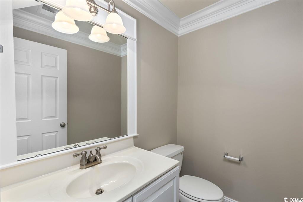 Beautifully updated and well maintained condo in the sought after Farm in Carolina Forest! This 3 bedroom end unit is move-in ready with stainless steel appliances, hard surface laminate plank flooring and tile on first level, wooden staircase as well as crown molding and wainscoting throughout the entire home. The main living area includes a spacious family room, office/flex space, half bath, and large eat-in kitchen with breakfast bar. Your separate laundry room complete with washer and dryer leads into your private 2 car garage. Upstairs you will enjoy your large master suite with walk-in closet and bathroom with double vanity and soaking tub. Two additional bedrooms provide plenty of room for your family or guests. The Farm is a popular community within walking distance to Ocean Bay Elementary and Ocean Bay Middle schools. Amenities include two pools, clubhouse with fitness center, playground, and basketball courts. Easy access to Carolina Forest Blvd, International Dr, highways 31 and 501. Conveniently located near multiple grocery stores, shopping, dining, hospitals, golf courses, Costco, entertainment, and more. Located about 6 miles only to the beach! This is such a convenient location To top it all off, the beach is less than a 10 minute drive away! Wifi and basic cable TV and trash service included in HOA fee.