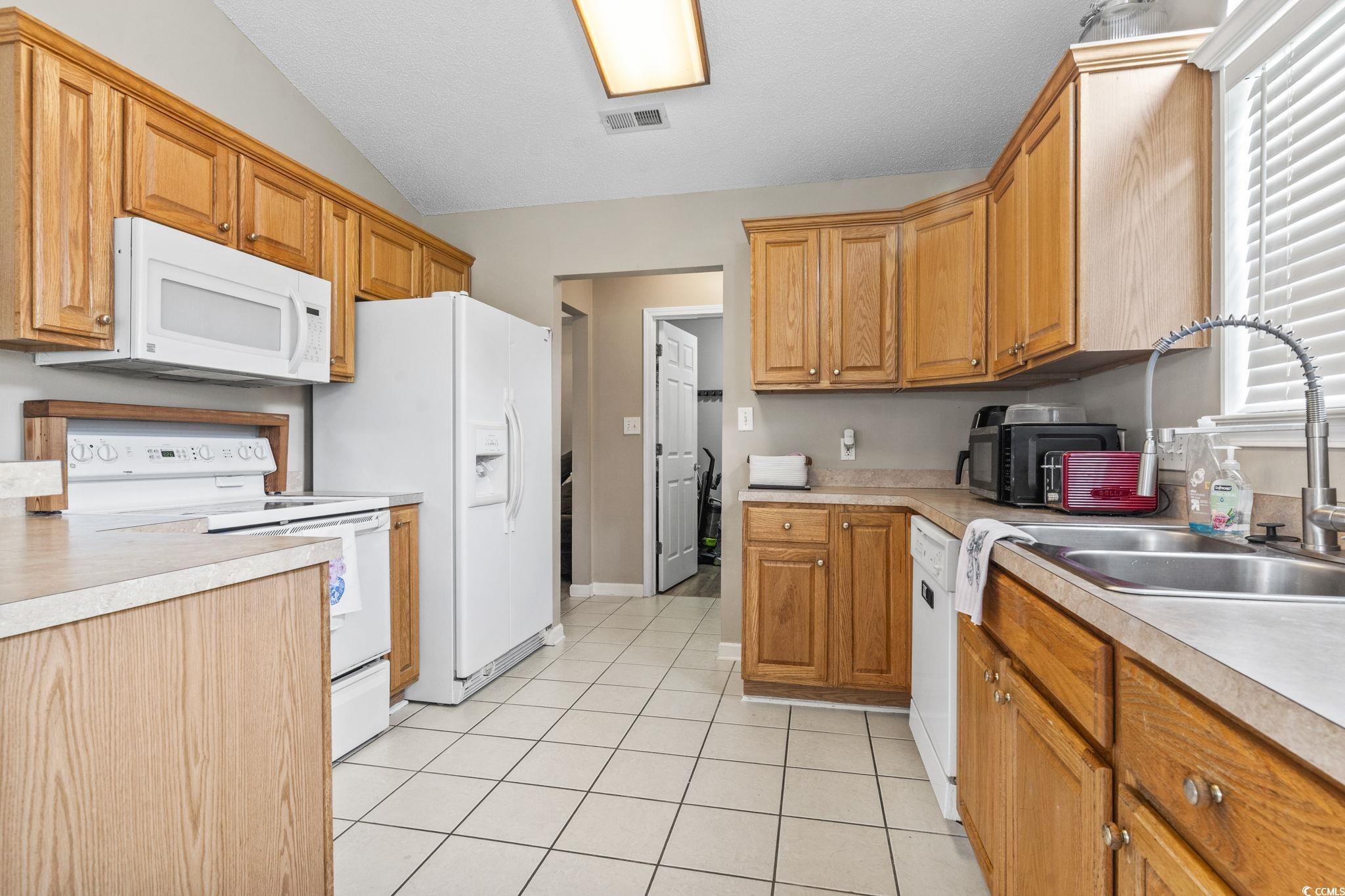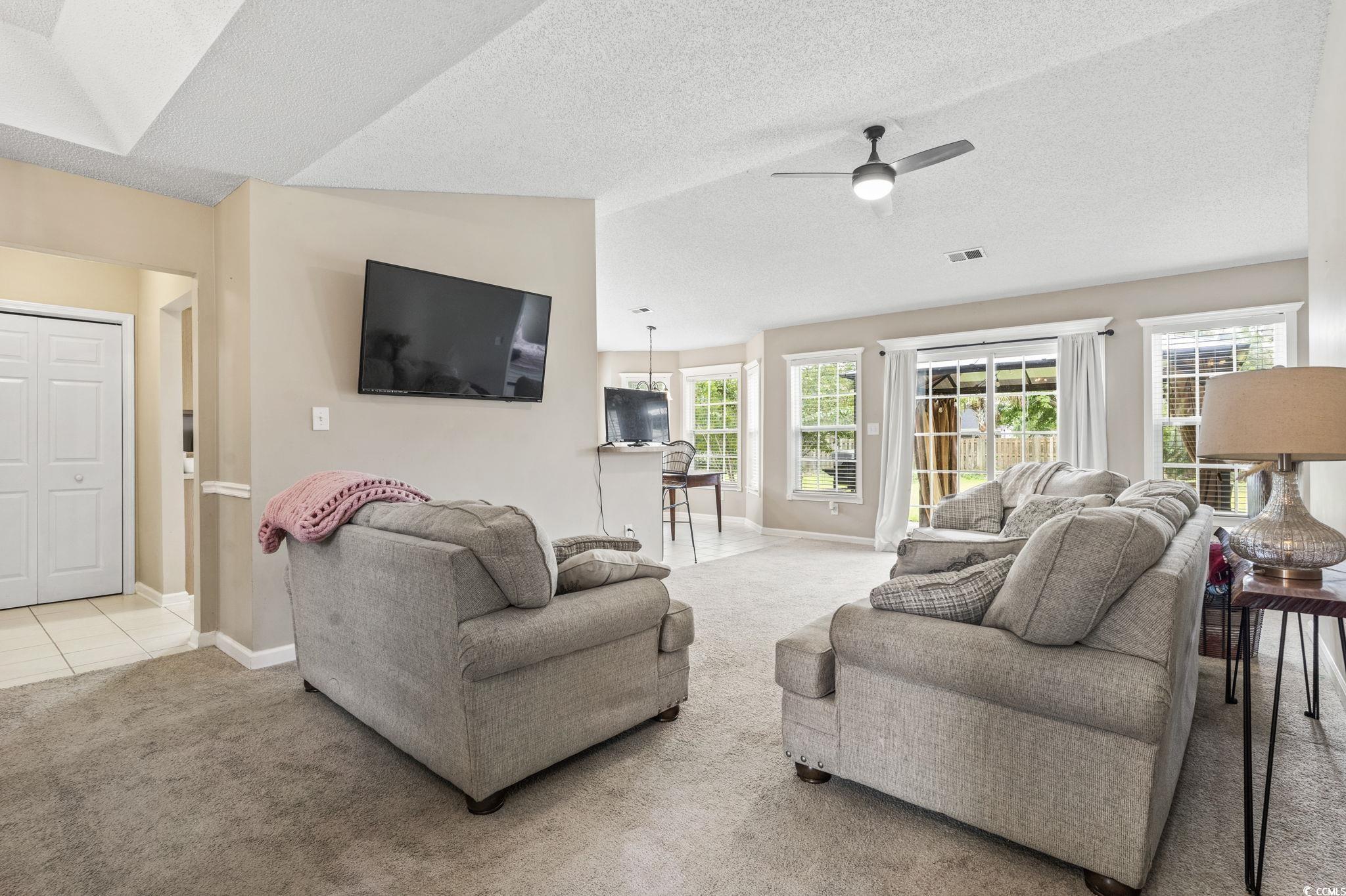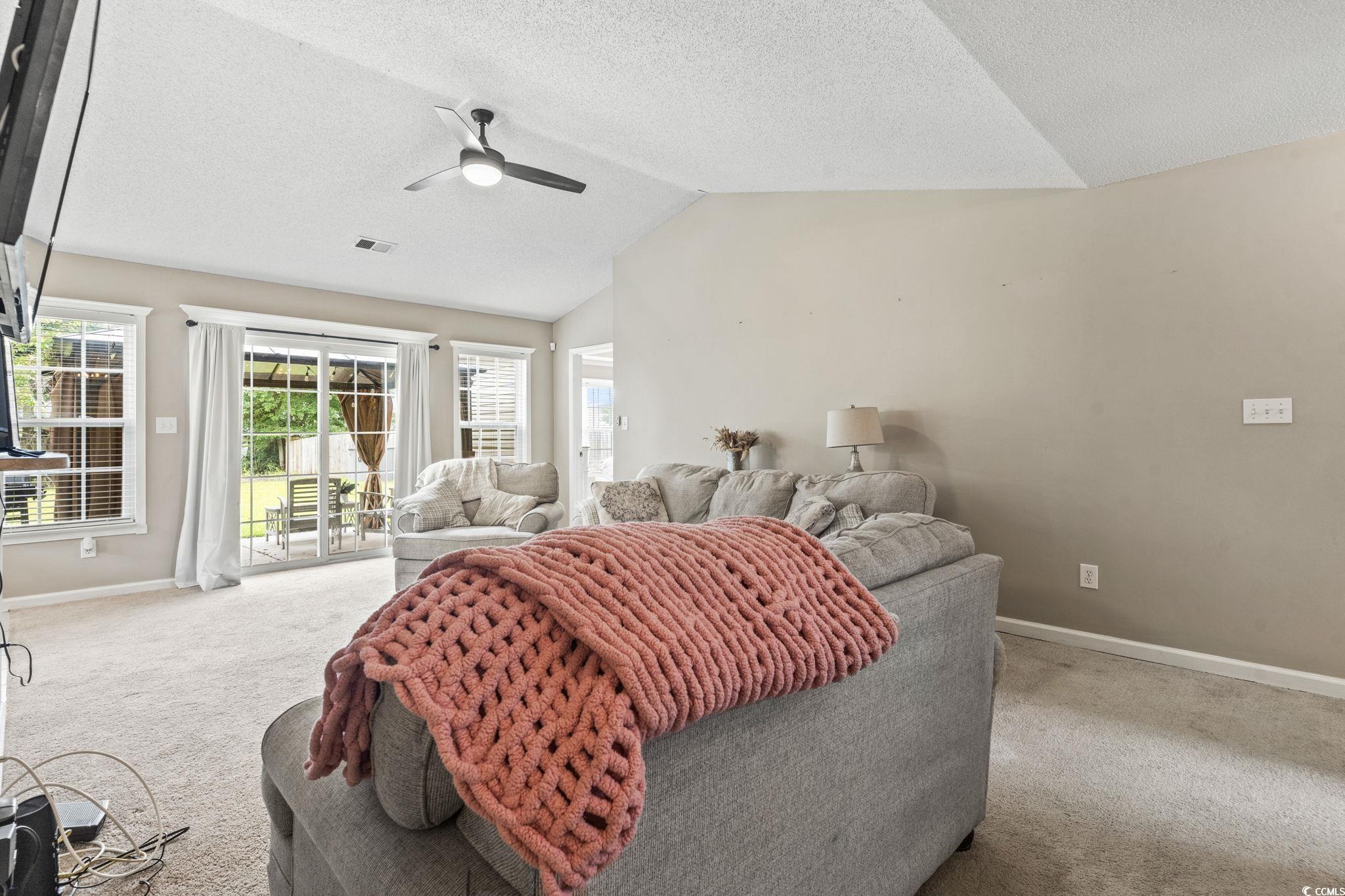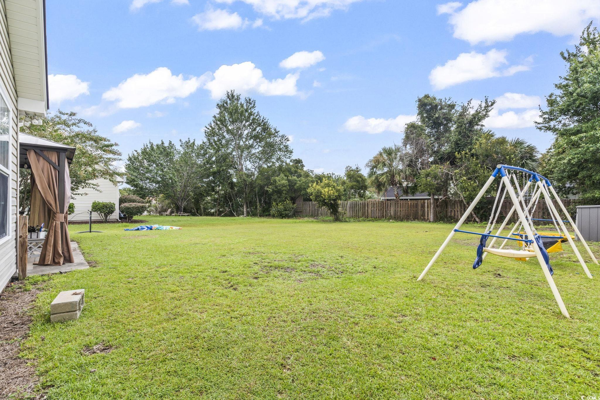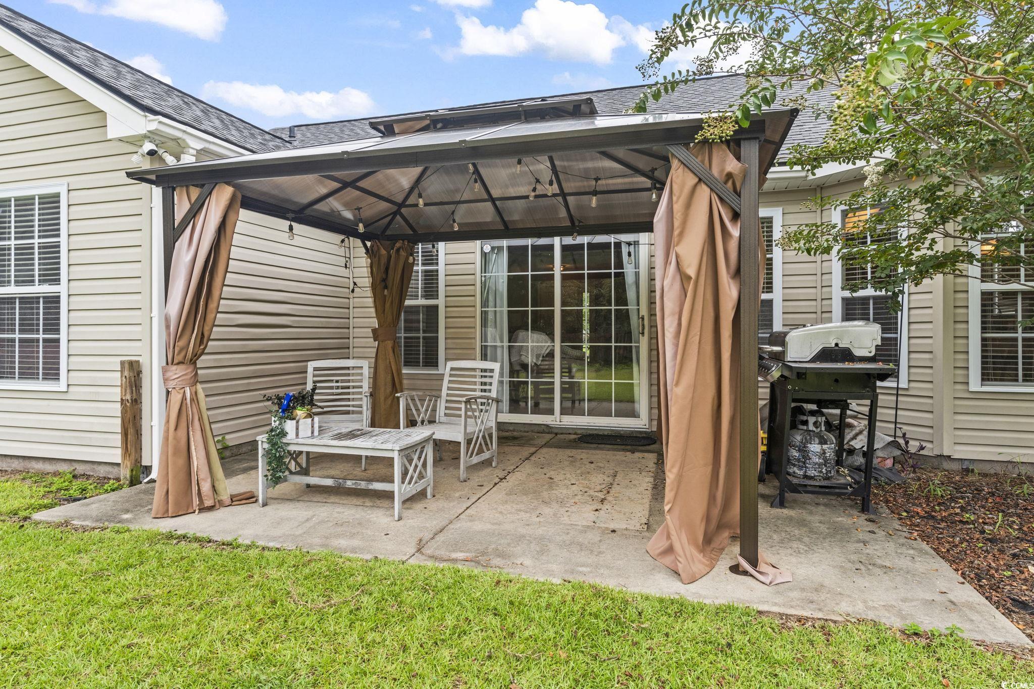 2707 Canvasback Trail is a lovely three-bedroom, two-bathroom home on a quiet cul-de-sac in the Hunters Ridge community. The open, split-bedroom floorplan, along with the vaulted ceiling, creates a feeling of spaciousness. The main living area flows naturally from the living room through the dining area to the kitchen, which features abundant cabinet storage and includes a breakfast nook for casual dining. The owner's suite is a peaceful retreat with a double tray ceiling, an ensuite bathroom that includes a soaking tub and walk-in shower, plus a double vanity for added convenience. The large backyard includes a recently added gazebo with concrete flooring - perfect for entertaining or quiet relaxation. The new HVAC system was installed July 2025. Roof was replaced in 2023. This beautiful home offers convenient access to all the Grand Strand has to offer - just minutes to the Myrtle Beach International Airport, fine dining, entertainment, shopping, medical facilities and within 15 minutes to the beach. This home combines practical living spaces with an open layout in a desirable neighborhood setting.