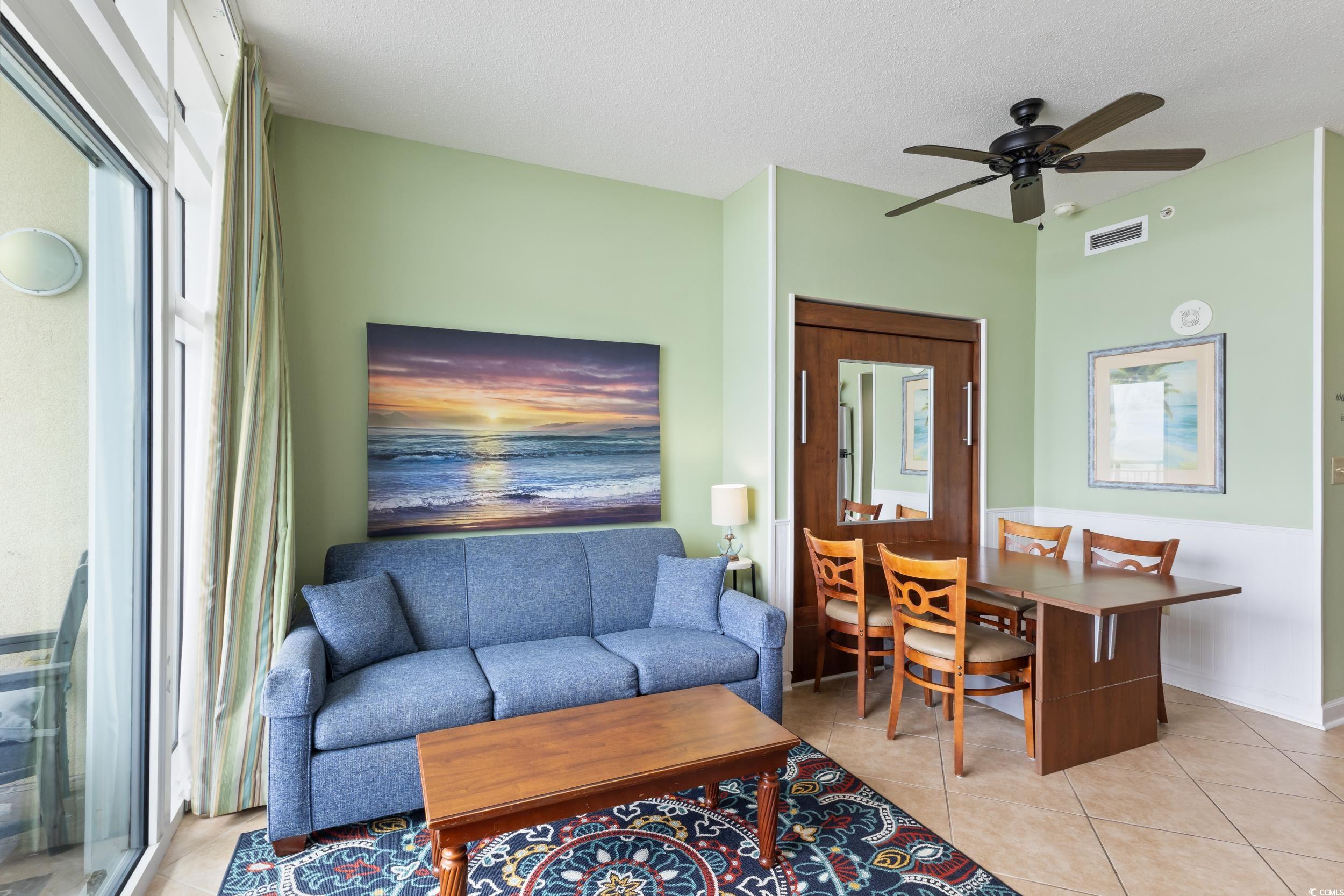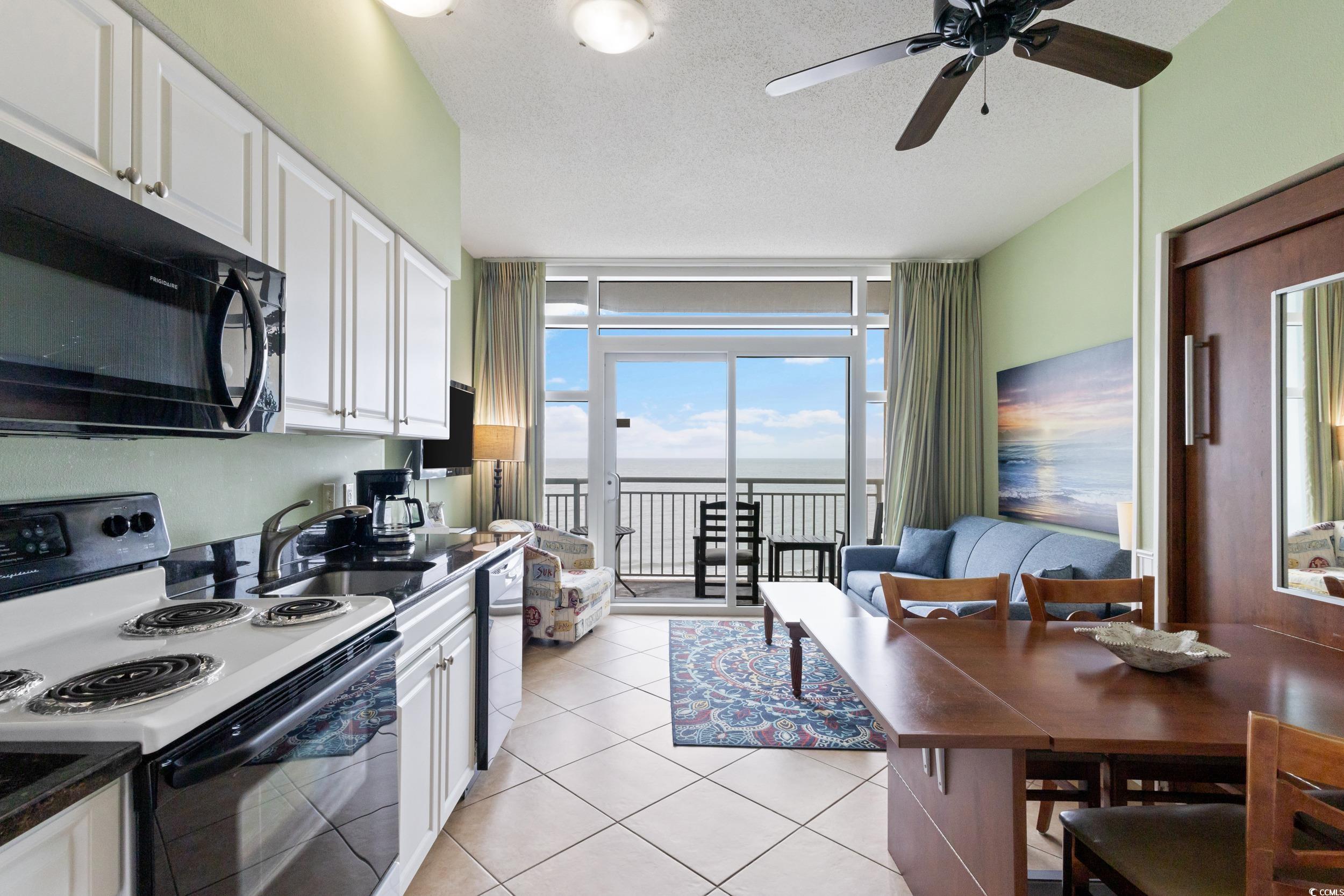 Experience oceanfront living in this beautifully maintained and fully furnished true one-bedroom, one-full bath condo at Holiday Sands in Myrtle Beach. This direct oceanfront unit features a well-equipped kitchen with full-size appliances, granite countertops, and in-unit washer/dryer. Enjoy panoramic views of the Atlantic from your private balcony and relax in a bright, coastal-inspired living space with tile flooring and carpeting throughout and a convenient Murphy bed and pull out sofa bed for extra guests. The unit's updates include: HVAC, refrigerator, built-in microwave, dishwasher, washer/dryer, drapes, patio furniture and fresh paint. Holiday Sands amenities include: indoor/outdoor pools, kiddie pool, a lazy river, hot tub, fitness center, and secure garage parking. Ideally located on Ocean Blvd near dining, shopping, Market Common district, Myrtle Beach State Park, numerous golf courses and the Myrtle Beach airport. Strong rental income potential for short-term or long-term stays. A perfect beach getaway and investment opportunity!