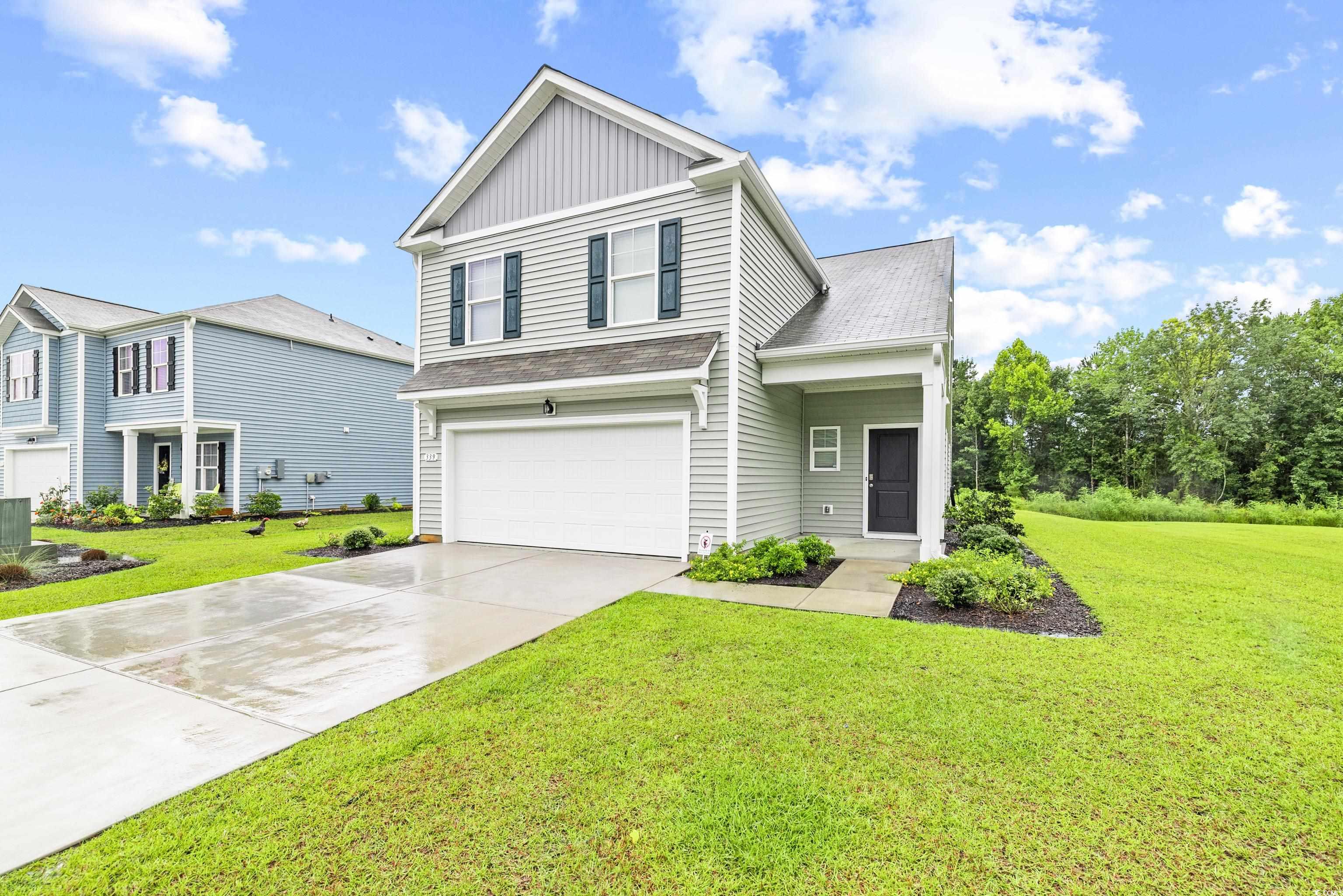 Welcome to 339 Woodcross Court in the charming Woodland Farms subdivision of Conway, South Carolina! This stunning five-bedroom, 3-bath home offers spacious living with modern updates and a prime location. Situated on a peaceful end lot near the cul-de-sac, this beautifully maintained residence has been freshly repainted in a neutral, inviting color palette, ready for your personal touch. Inside, you'll find an open floor plan perfect for family living and entertaining. The gourmet kitchen features a gorgeous granite countertop, stainless steel appliances, shaker-style white cabinets, and LVP flooring that flows seamlessly into the living and dining areas. The living room opens to a lovely back patio, which boasts an electric awningperfect for outdoor relaxation and entertaining regardless of the weather. The primary suite is conveniently located on the first floor, complete with a luxurious primary bath featuring dual double vanities, upgraded hardware, a walk-in closet, and a large shower accented with stylish LVP flooring. Upstairs, you'll find four additional bedrooms and 2 full baths. This is perfect for a growing family, multigenerational living, or retirees seeking space for visitors. Additional updates include new bathroom cabinet hardware, shelving in the closets and pantry, and ceiling fans in the family room, primary bedroom, and upstairs bedroom, ensuring comfort and convenience. This home is part of a community with a low HOA fee. Located in the award-winning school district of Aynor SC. it provides easy access to Highway 22 for quick drives to the beachesjust about 30 minutes awayand to the historic downtown Conway with its charming restaurants and shopping. Whether you're looking for ample space for a large or growing family or a cozy retreat with room to entertain, 339 Wood Cross Court is an exceptional opportunity in a desirable community. Schedule your tour today! Some photos in this listing have been virtually staged. All information to be verified by the buyer.