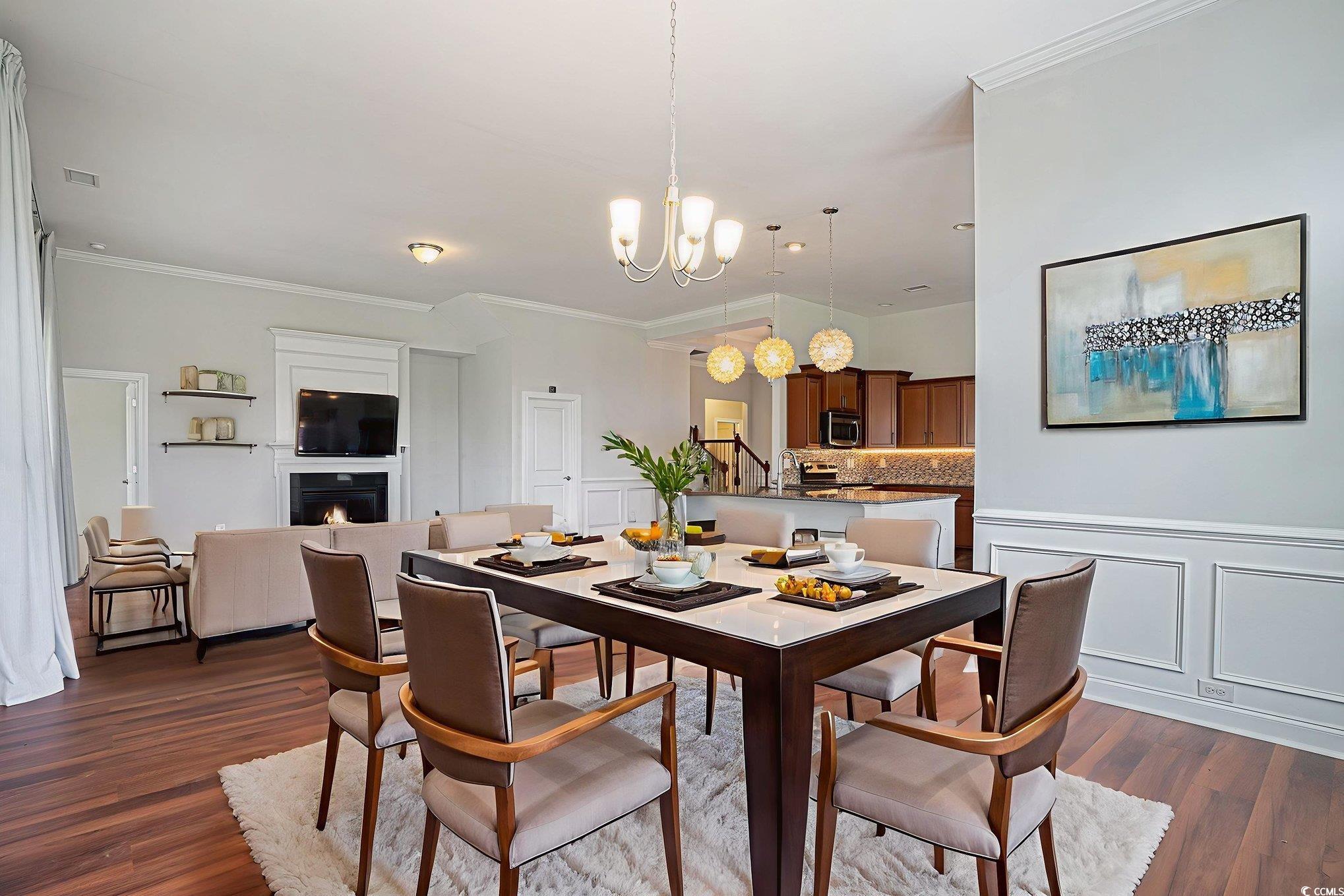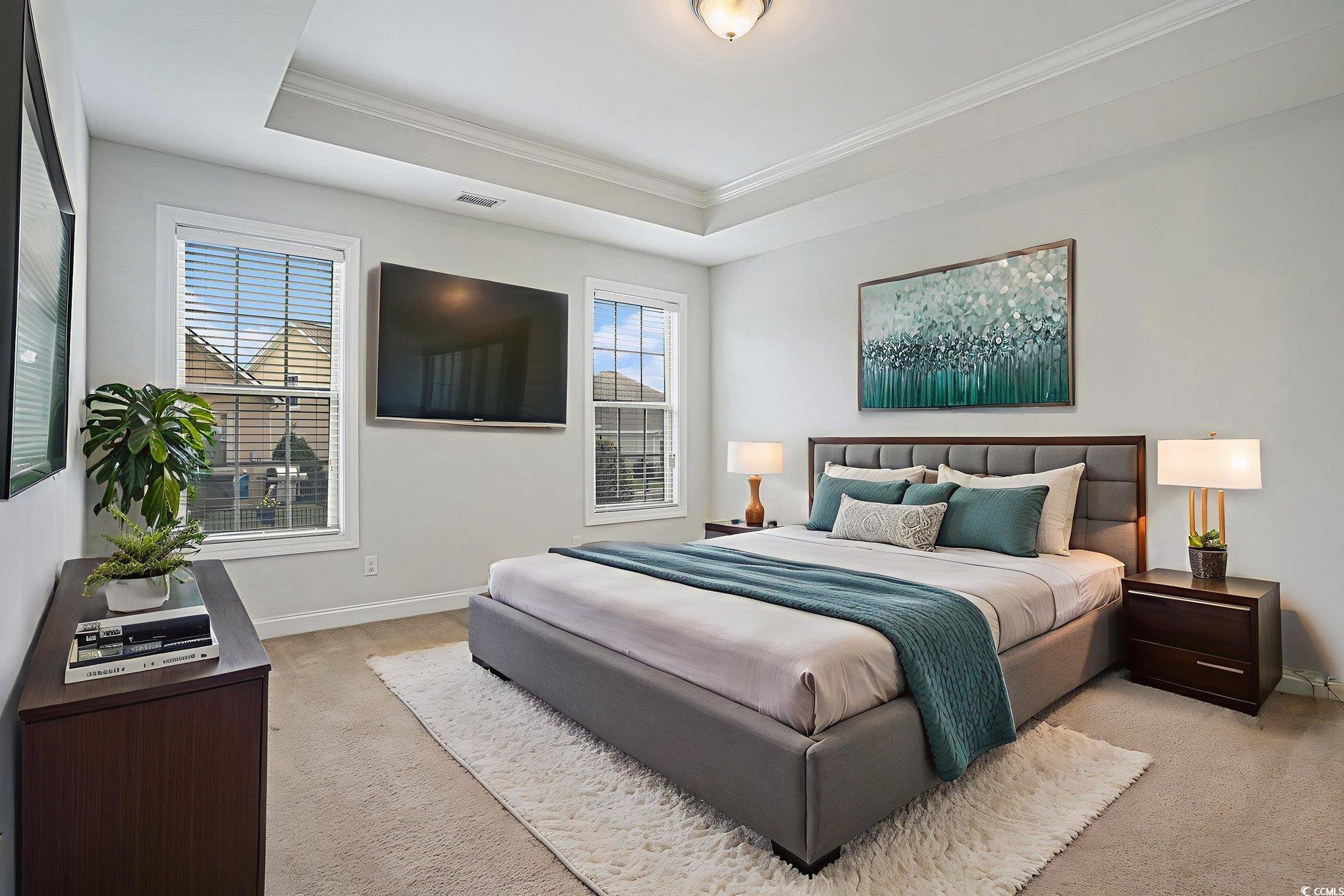 Motivated sellers. This impeccably designed 4-bedroom, 3.5-bath Mediterranean-style home with a first-floor primary bedroom is located in the prestigious Tuscan Sands community at Barefoot Resort. The home features a grand main living area living area with elevated ceilings, abundant natural light, high-end LVP flooring and and a beautiful fireplace. The kitchen offers an oversized island, granite countertops, stainless steel appliances, and ample cabinet space, with both a breakfast nook and formal dining area enhanced by wainscoting. The large master suite includes tray ceilings, a spacious en-suite bath with double vanity, tile shower, and a walk-in closet. A striking wood staircase leads to the additional bedrooms. A tiled, screened-in porch provides a relaxing outdoor retreat. Located in the Tuscan Sands community at Barefoot Resort, surrounded by the Greg Norman Golf Course and near the Intracoastal Waterway. Residents can enjoy a variety of membership options and access to top-tier resort amenities. Perfect as a primary home, vacation getaway, or investment property.