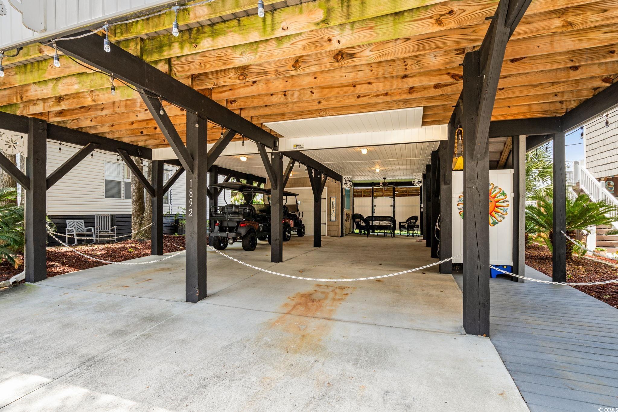 Imagine yourself living the quintessential beach lifestyle in this magnificent 2-story, 5-bedroom, 3.5-bathroom raised beach house located within the highly sought-after, award-winning Ocean Lakes Family Campground. This fully furnished home with a golf cart included offers the perfect blend of coastal charm and modern luxury, making it an ideal primary residence, second home, or a fantastic investment property with excellent rental potential. Step inside and discover a spacious and open floor plan, meticulously designed for both relaxing and entertaining. Enjoy the convenience of a fully equipped kitchen featuring sleek solid surface countertops, stainless steel appliances, and ample cabinet space. The living area offers plenty of space for family movie nights or hosting gatherings. Retreat to one of the five generously sized bedrooms, each thoughtfully furnished and decorated with a coastal flair. The master suite, located on the first floor, provides a private oasis with a king-size bed, an ensuite bathroom, and ample storage space. The remaining bedrooms offer comfortable accommodations for family and guests, including queen beds, full-size beds, and even bunk beds in some rooms. Extend your living space outdoors with this home's impressive exterior features. Relax on the deck, or unwind in the shade of the large covered porch. The space underneath the house creates a wonderful space for outdoor entertaining, complete with a TV lounge area. An outdoor shower with hot and cold water is perfect for rinsing off after a day at the beach. The included golf cart allows for easy and enjoyable transportation around the campground. As part of the award-winning Ocean Lakes Family Campground, you'll have access to an incredible array of amenities and activities, including: Nearly a mile of pristine beachfront with convenient access points. Sandy Harbor Water Park featuring a lazy river, slides, and a splash zone for kids. Indoor and outdoor pools for year-round enjoyment. Sandy Harbor Family Fun Center with a game center, mini-golf course, and cafe. Camptown Center with a store, laundry facilities, and dining options. Recreation Center offering a variety of activities and events. Outdoor recreation like basketball, volleyball, shuffleboard, and playgrounds. 24-hour security for peace of mind. Trash pickup, cable TV, and wireless internet included in the annual lease payments. This stunning beach house at Ocean Lakes provides a unique opportunity to own a piece of paradise. Whether you're looking for a permanent residence, a vacation getaway, or a profitable rental property, this home offers it all. Don't miss the chance to experience the unparalleled lifestyle and amenities of this exceptional community. Schedule your showing today!
