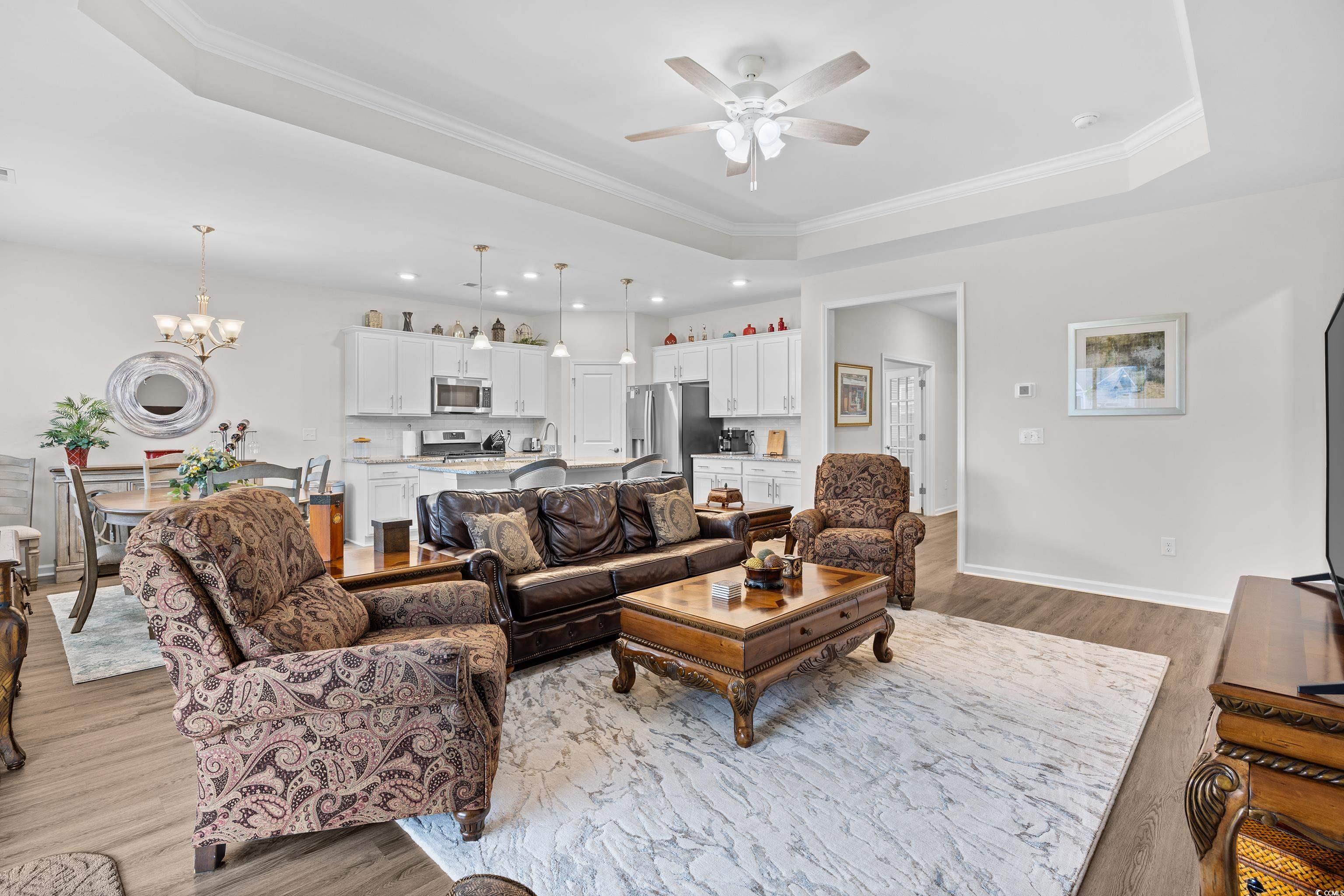 Welcome to your dream home in Longs! This beautifully maintained 3-bedroom, 2-bath residence offers the perfect blend of comfort and style. Located in a quiet neighborhood just minutes from North Myrtle Beach, this home features an open-concept floor plan with tray ceilings, abundant natural light, and a spacious living area ideal for entertaining. The kitchen boasts modern cabinetry, ample counter space, and a breakfast bar for casual dining. The primary suite offers a walk-in closet and a private bath with a double vanity and a walk-in shower. Step outside to a backyard with a covered patioperfect for relaxing or hosting gatherings. With its convenient location near shopping, dining, golf, and sandy beaches, this home is move-in ready and waiting for you!