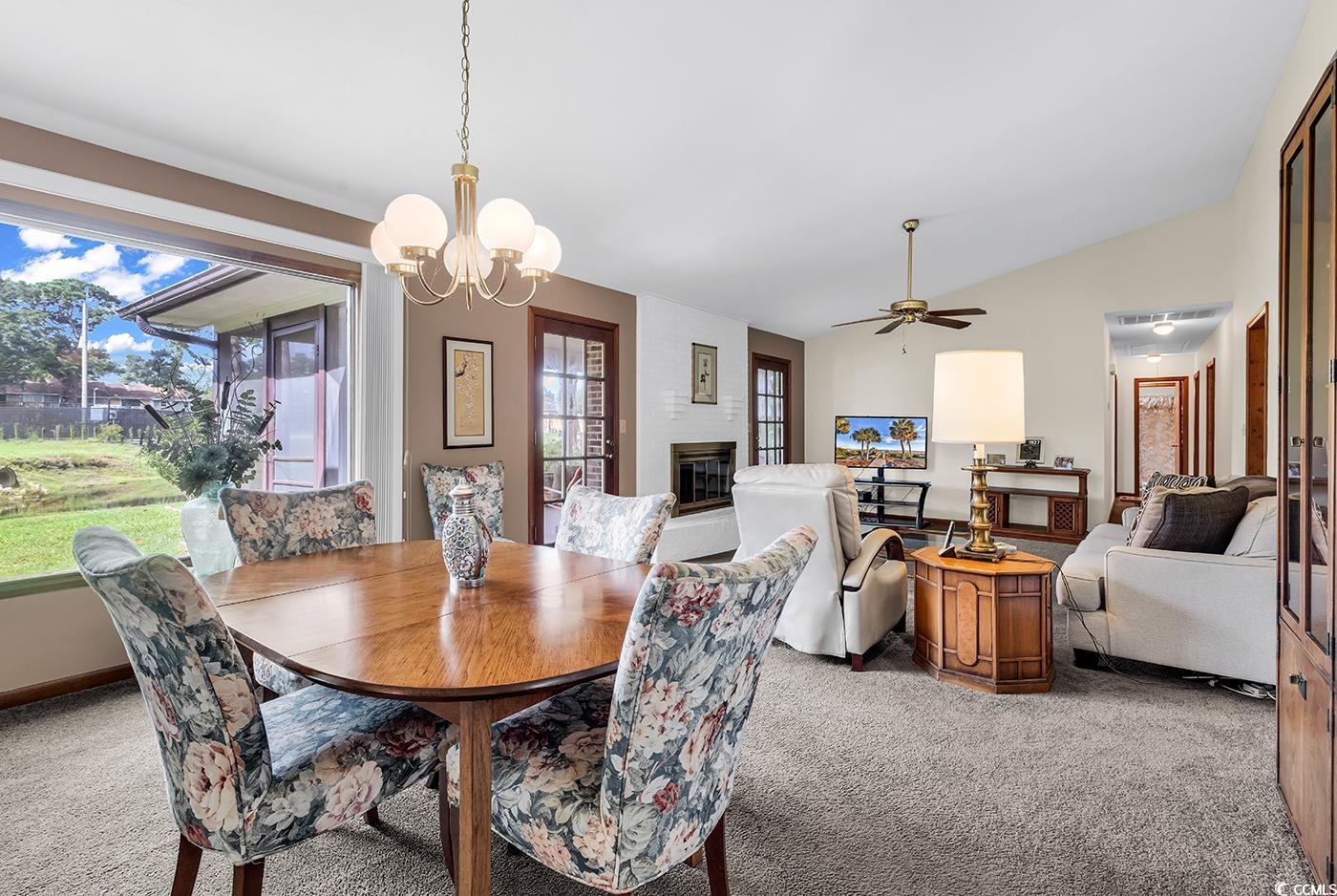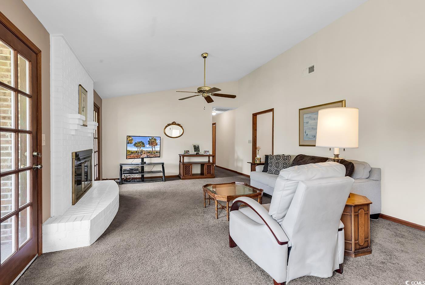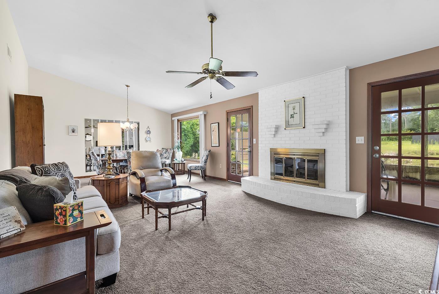 Charming 3-bedroom, 2-bath home in Deerfield Plantation with No HOA and just a golf cart ride to the Beach! The open living and dining areas feature vaulted ceilings and a cozy fireplace, creating a warm, inviting atmosphere. The kitchen offers a sunny breakfast nook, perfect for casual meals. Relax on the screened-in porch while taking in the peaceful pond views. A perfect blend of comfort, location, and coastal lifestyle! Just a short golf cart ride to Surfside Beach, close to shopping, dining, and golf. Park your boat, RV, or golf cart with no HOA restrictions!