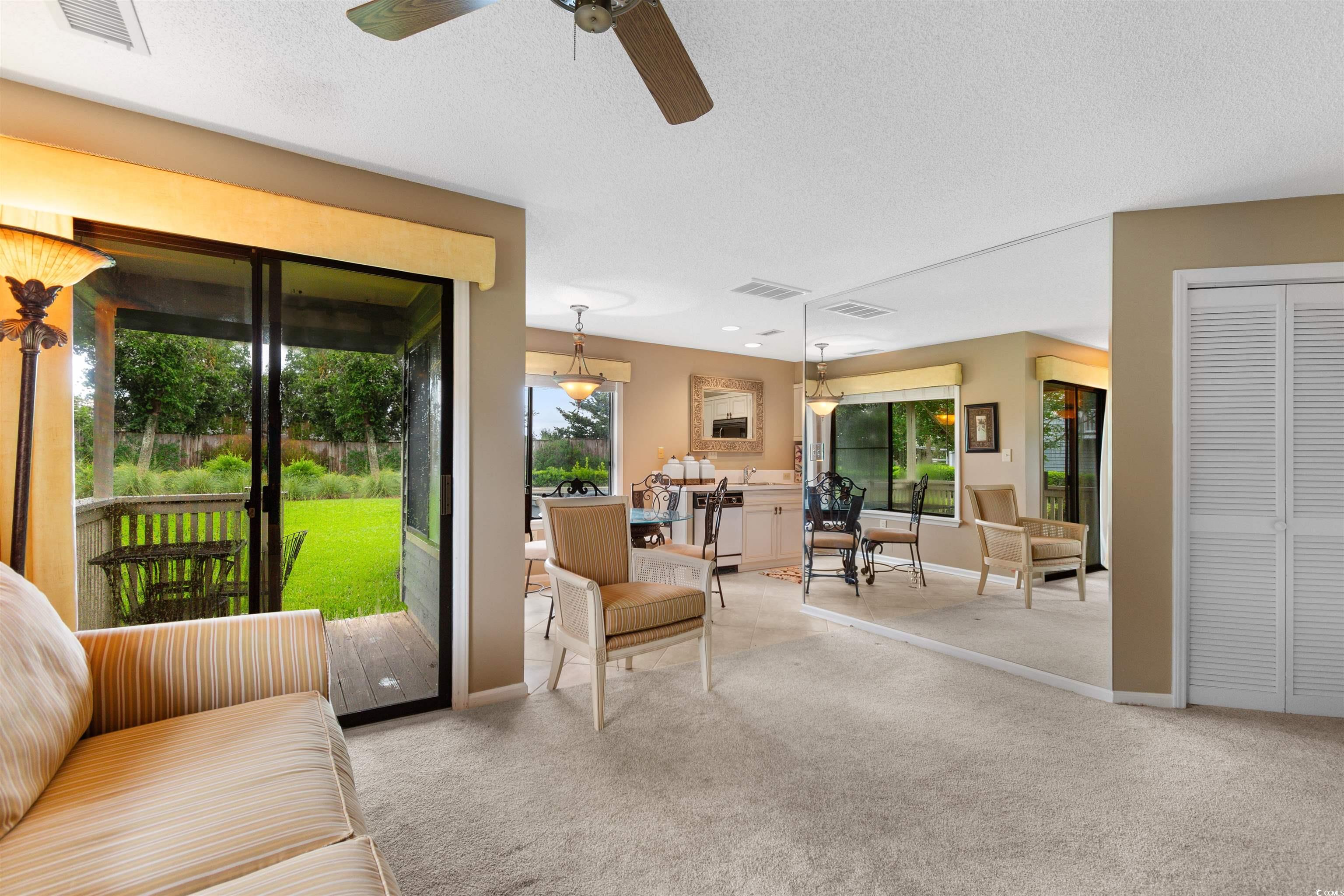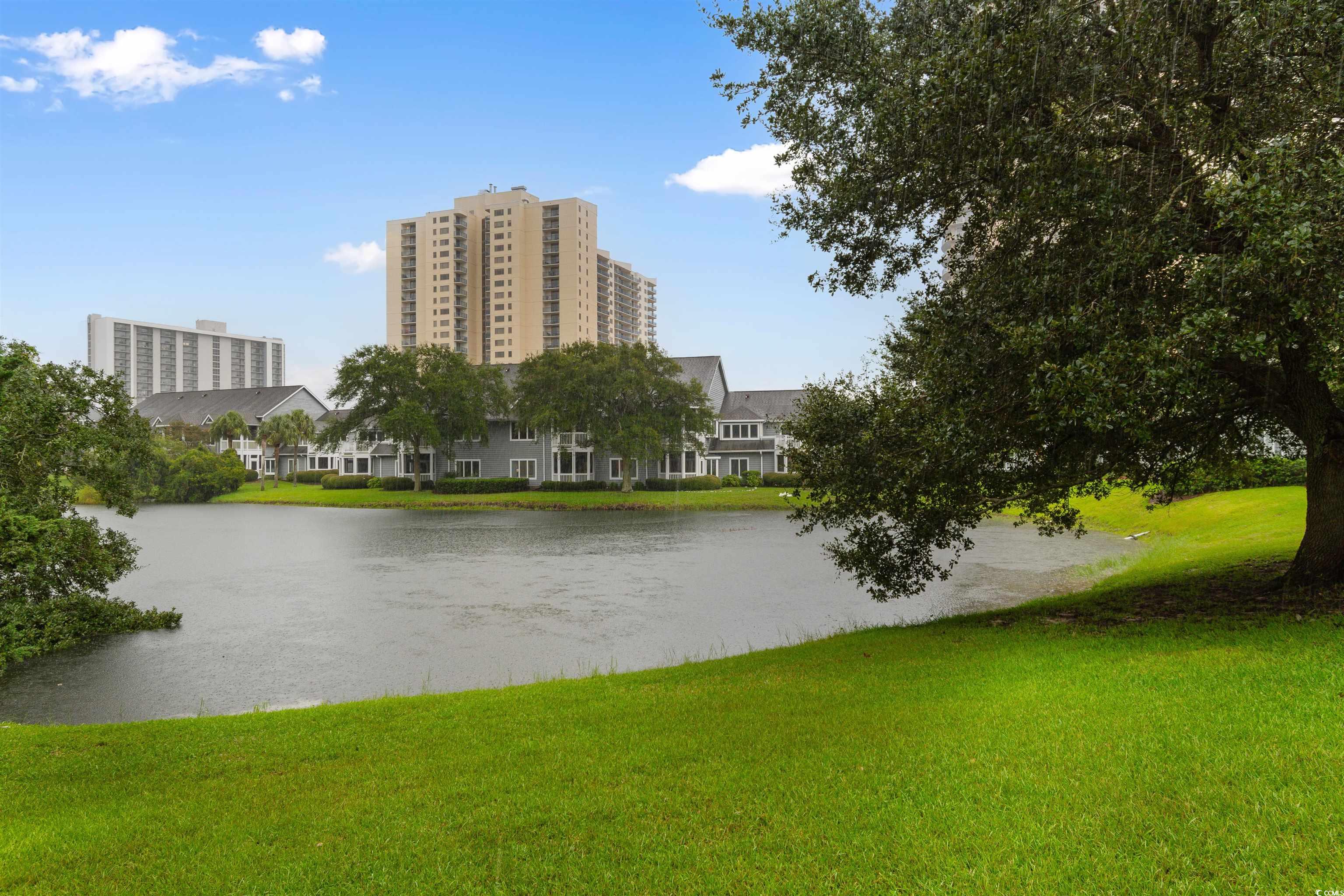 Perfectly scaled for relaxation, this charming coastal retreat invites you to live the dream! Thoughtfully designed, this one bedroom, one bath condo offers ground-floor entry in a building shared with only four other residences. Each owner enjoys a private carport and an oversized outdoor storage closet. Tucked away at the end of a cul-de-sac, your back porch steps down to a large backyard with a beautiful lake view, perfect for yard games or letting a pet outside. Southern magnolias and crepe myrtles are highlighted in your lush landscaping, and youre just a short stroll to nearby foot paths leading to the beach and pool. Offered fully furnished, this home has never been a rental. Kingston Plantation is a 145 acre, gated community that preserves the natural beauty of the coastline while offering resort style amenities; multiple pools, restaurants, walking and jogging paths, freshwater lakes, an optional fitness center with pickleball courts, tennis courts, an indoor pool, full workout area and group classes. Theres also an on-site spa, and for those renting through the on-site program or own a non-rental, a large waterpark. All of this is set along a half-mile stretch of soft, sandy beaches and the sparkling waters of the Atlantic Ocean, a place youll never want to leave!