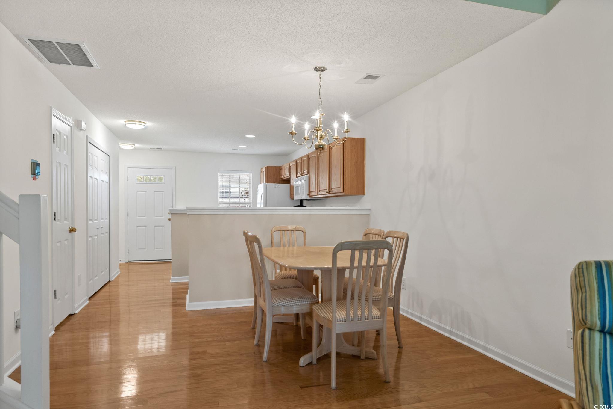 Charming Coastal 3-Bedroom Townhome with Gleaming Wood Floors and Pond Views! Welcome to this stunning, furnished, updated 3-bedroom, 2.5-bathroom true townhome located in the heart of one of the most sought-after coastal communities. A rare gem just minutes from pristine beaches, shopping centers, and medical facilities, this beautifully maintained home offers the perfect blend of comfort, convenience, and coastal living. Features include: Three Spacious Bedrooms: Each room is designed with comfort in mind, offering plenty of space, natural light, and closet storage. Whether you're hosting guests or enjoying a peaceful retreat, these rooms provide the ideal setting for relaxation and privacy. 2.5 Luxurious Bathrooms: Updated with modern fixtures and finishes, the bathrooms are thoughtfully designed to offer both style and functionality. The master suite boasts an en-suite bath for added privacy, vaulted ceiling, ceiling fan, and shower while the other two bathrooms are equally well-appointed. Gleaming Hardwood Floors: The moment you step inside, youll be welcomed by beautiful, high-quality wood flooring throughout the main living areas. The gleaming floors create a warm and inviting atmosphere that seamlessly flows from room to room. Bright Carolina Room with Pond Views: A true highlight of the home, the Carolina room is perfect for year-round enjoyment. With expansive high impact windows overlooking a peaceful pond, this space offers a tranquil retreat where you can relax and take in natures beauty. Whether you're sipping your morning coffee or enjoying an evening cocktail, the views are peaceful, serene and relaxing. Well-Equipped Kitchen: The kitchen is a chefs dream with ample counter space, and storage options. Whether you're preparing a quick snack or cooking a gourmet meal, this space makes it easy and enjoyable. Open Concept Living & Dining Areas: The open floor plan flows seamlessly, making it ideal for entertaining guests or spending quality time with family. The large living area is perfect for cozy gatherings, while the dining area offers plenty of space for a family-sized table. Private Outdoor Space: Step outside into your own private backyard retreat. The outdoor space is perfect for barbecues, gardening, or simply relaxing in the fresh coastal air. 1-Car Garage: A convenient attached garage offers ample space for parking and additional storage. Say goodbye to street parking and enjoy the convenience of having your own garage. Close to Beaches, Shopping, and Medical Facilities: This location is truly unbeatable. Just a short drive to the beach, you can enjoy the sun, surf, and sand whenever you like. Additionally, with shopping centers and medical facilities close by, youll never have to travel far for essentials. Many Recent Updates: This home has been meticulously maintained with many updates throughout, making it move-in ready. From fresh paint to Carrier Seer Heat Pump in 2018, hurricane shutters, new roof & diverters in 2017, KitchenAide D/W in 2021, new expanded & enclosed porch (Carolina Room) in 2017. The Coastal Lifestyle Youve Been Dreaming of and living here means youre just a stones throw from the best of coastal living. Whether youre a beach lover, a nature enthusiast, or someone who simply enjoys a relaxed, comfortable lifestyle, this townhome has it all. Imagine spending your days lounging at the beach, shopping at nearby boutiques, or enjoying the serene pond views from the comfort of your own home. Dont miss the opportunity to own this immaculate townhome in a highly desirable coastal community. Whether you're looking for a vacation home, a retirement retreat, or a year-round residence, this property offers everything you need and more. With it's beautiful updates, fantastic location and exceptional features, this townhome is ready for it's new owner.
