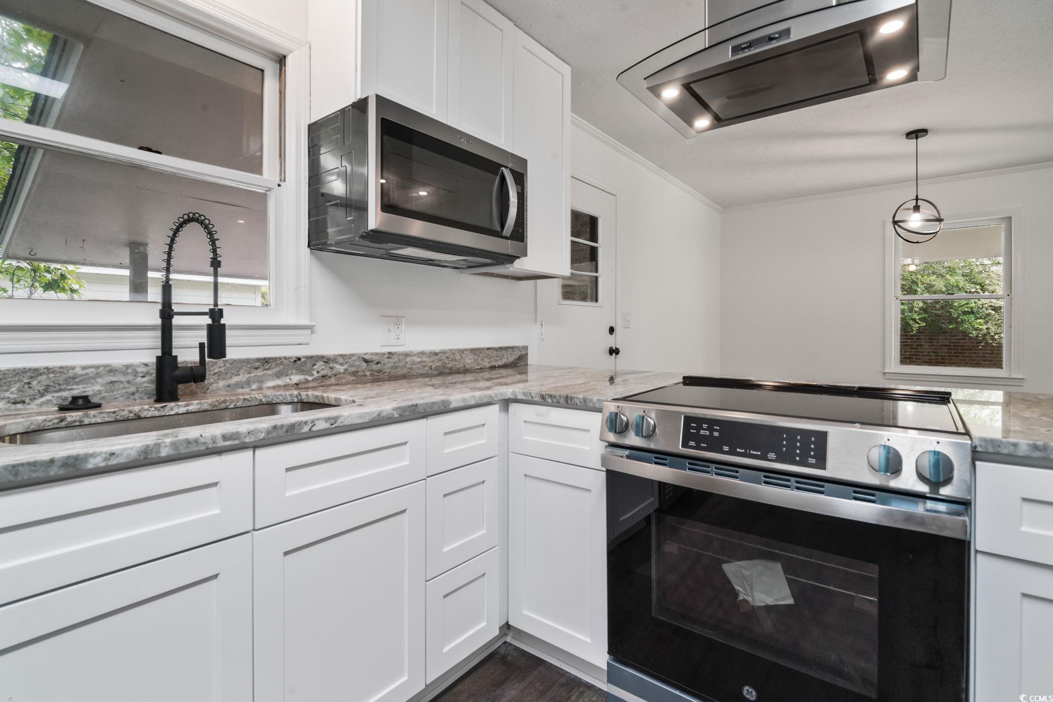 Fully Renovated Brick Ranch - No HOA, Minutes from Coastal Carolina University! Exquisitely renovated 3-bedroom, 2-bath brick ranch with no HOAevery detail has been thoughtfully updated for modern living. Step inside to find brand-new luxury vinyl plank flooring flowing throughout, complemented by an open, light-filled layout. The kitchen showcases all-new custom cabinetry, sleek granite countertops, and premium stainless steel appliances, creating a true chefs space. Designer lighting elevates every room, while the master suite boasts a beautifully tiled walk-in shower for a spa-like retreat. Additional updates include new electrical outlets and finishes throughout, ensuring both style and peace of mind. Ideally located just minutes from Coastal Carolina University, this move-in-ready home combines timeless brick construction with contemporary upgradesperfect for a primary residence or investment opportunity.