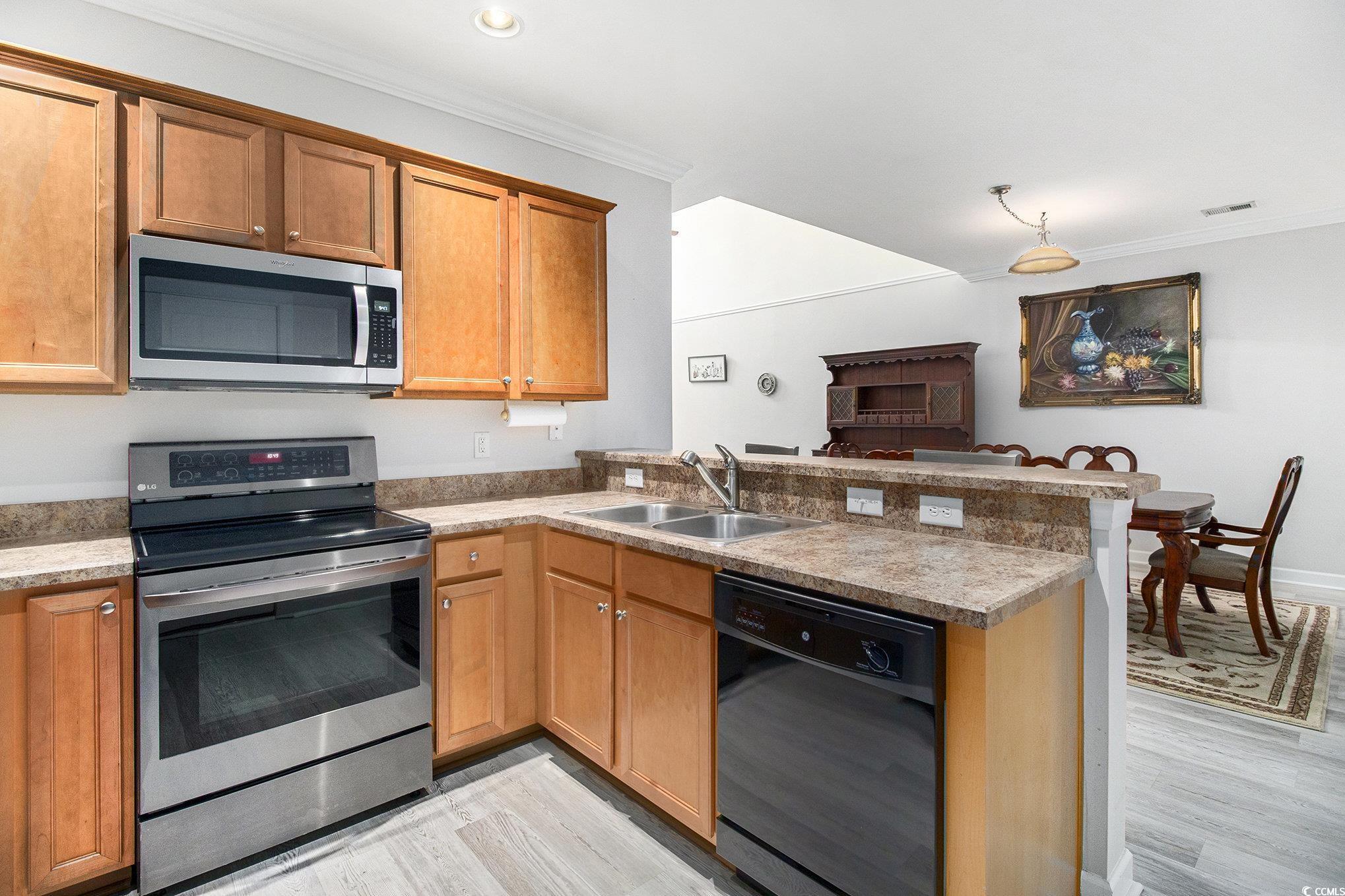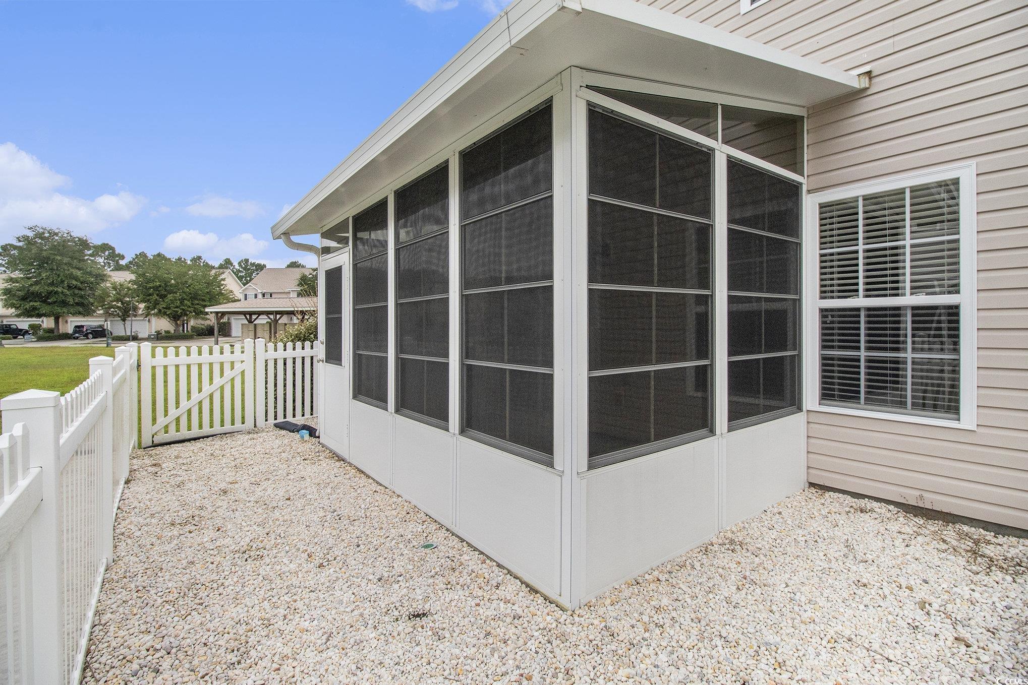 Situated in the sought-after Fairways at Wild Wing, this end-unit townhome offers 3 bedrooms, 2.5 bathrooms, and a 2-car garage, all bordering a spacious green common area. The inviting open floor plan highlights two-story ceilings in the living space, smooth ceilings, crown molding, and plenty of natural light streaming through oversized windows. The main floor hosts the kitchen, living room, dining space, 1/2 bath and the primary suite with a generous walk-in closet while upstairs youll find two additional bedrooms, a full bath, laundry, and a versatile loft. A rare feature of this home is the screened porch with an EZ Breeze system, ideal for relaxing year-round. Recent upgrades include a brand-new HVAC installed in August 2025 with a transferable warranty for the new owners peace of mind. Please ask the listing agent for more details as the warranty period is longer if the new buyer closes within 3 months of HVAC installation! Just minutes from Coastal Carolina University, Horry Georgetown Technical College, Conway Medical Center, plus endless shopping, dining, and entertainment, this townhome combines comfort, low-maintenance living, and a prime location.
